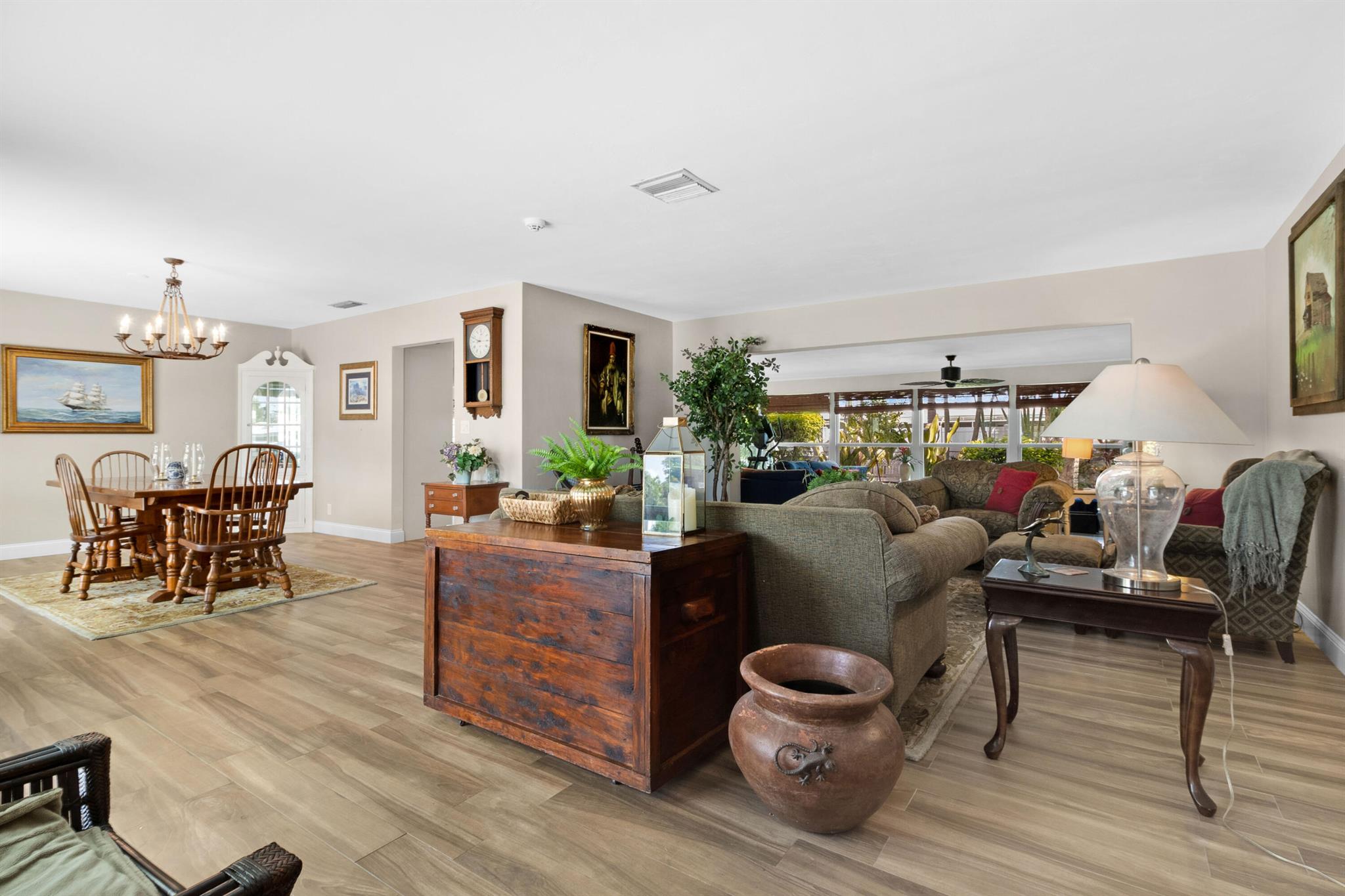 PVC LINED PIPES, IMPACT WINDOWS, METAL ROOF -- ROOM FOR A POOL! - OVER 2300sqft Under Air! It begins LOCATION, curb appeal, beautiful landscaping and newly sealed circle driveway. And, the oversized, covered front patio is where you will want to have coffee each morning - maybe invite friends and neighbors - plenty of room on this 20x15 tiled entry area. Then, WELCOME HOME - is what your heart will say when you enter the foyer and see the spaciousness and beautiful design of this warm, 3 bedroom home. OPEN CONCEPT. The L-shaped Family Room offers many design choices & leads into the Florida Room which has a WALL OF WINDOWS to the beautiful backyard. The XL KITCHEN has tons of cupboards, the new 4 door refrigerator and UNIQUELY LOCATED in the center w/3 entry points open to the Florida