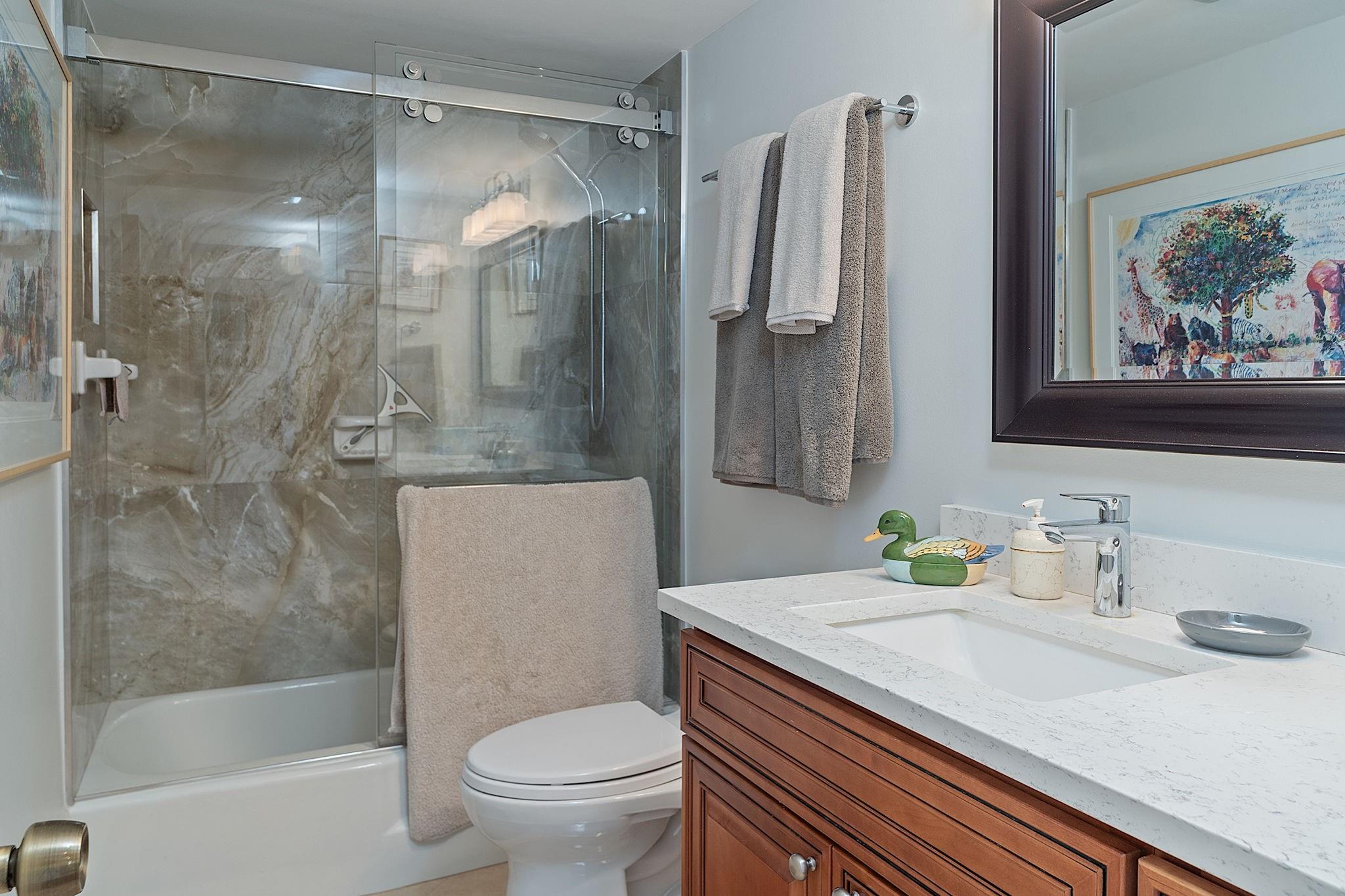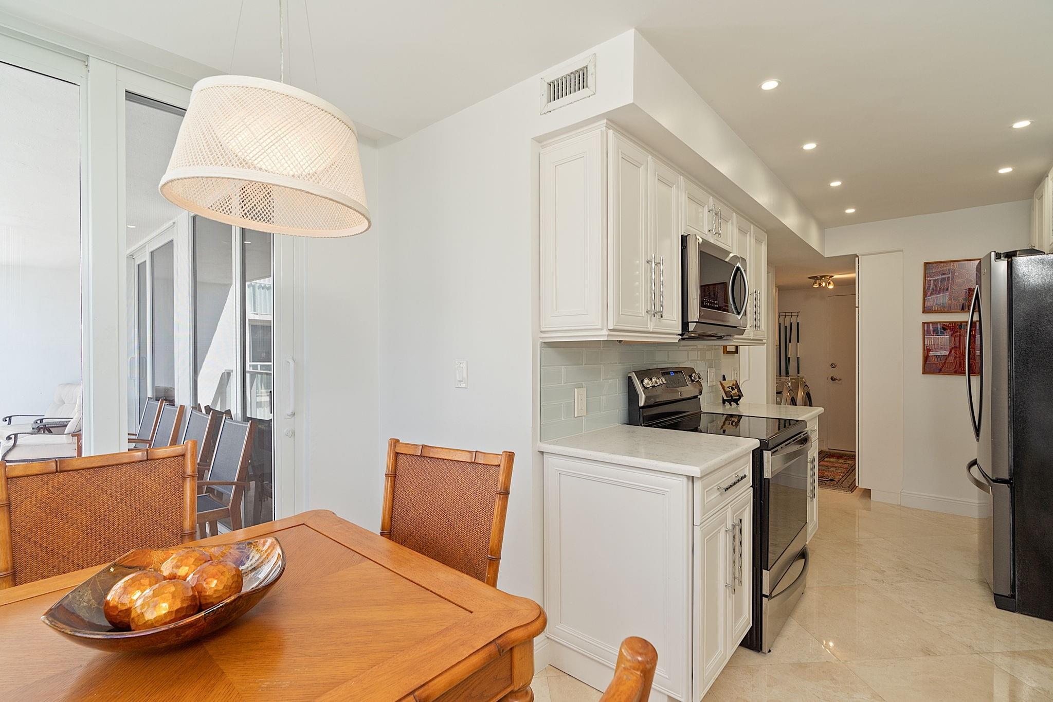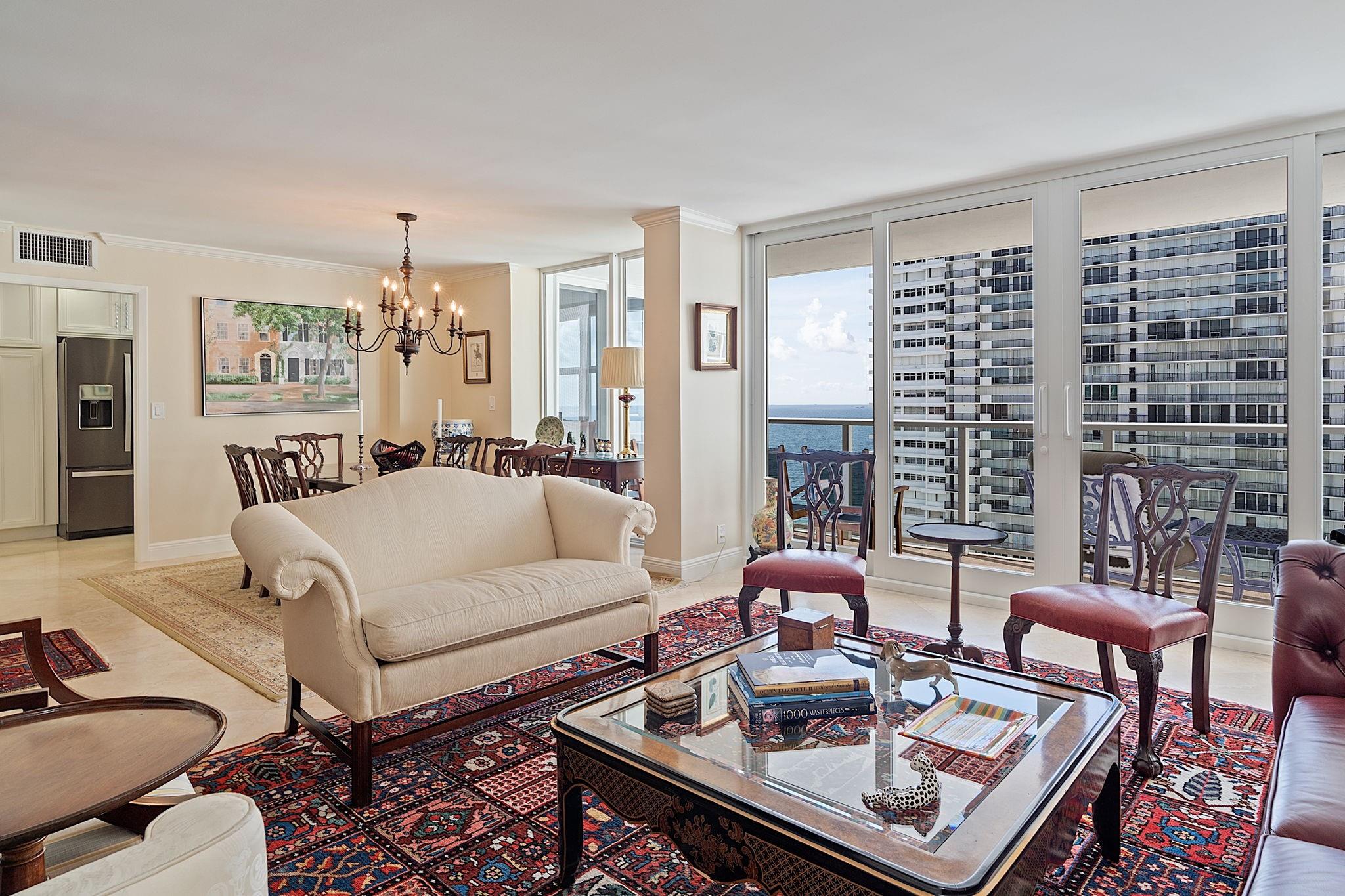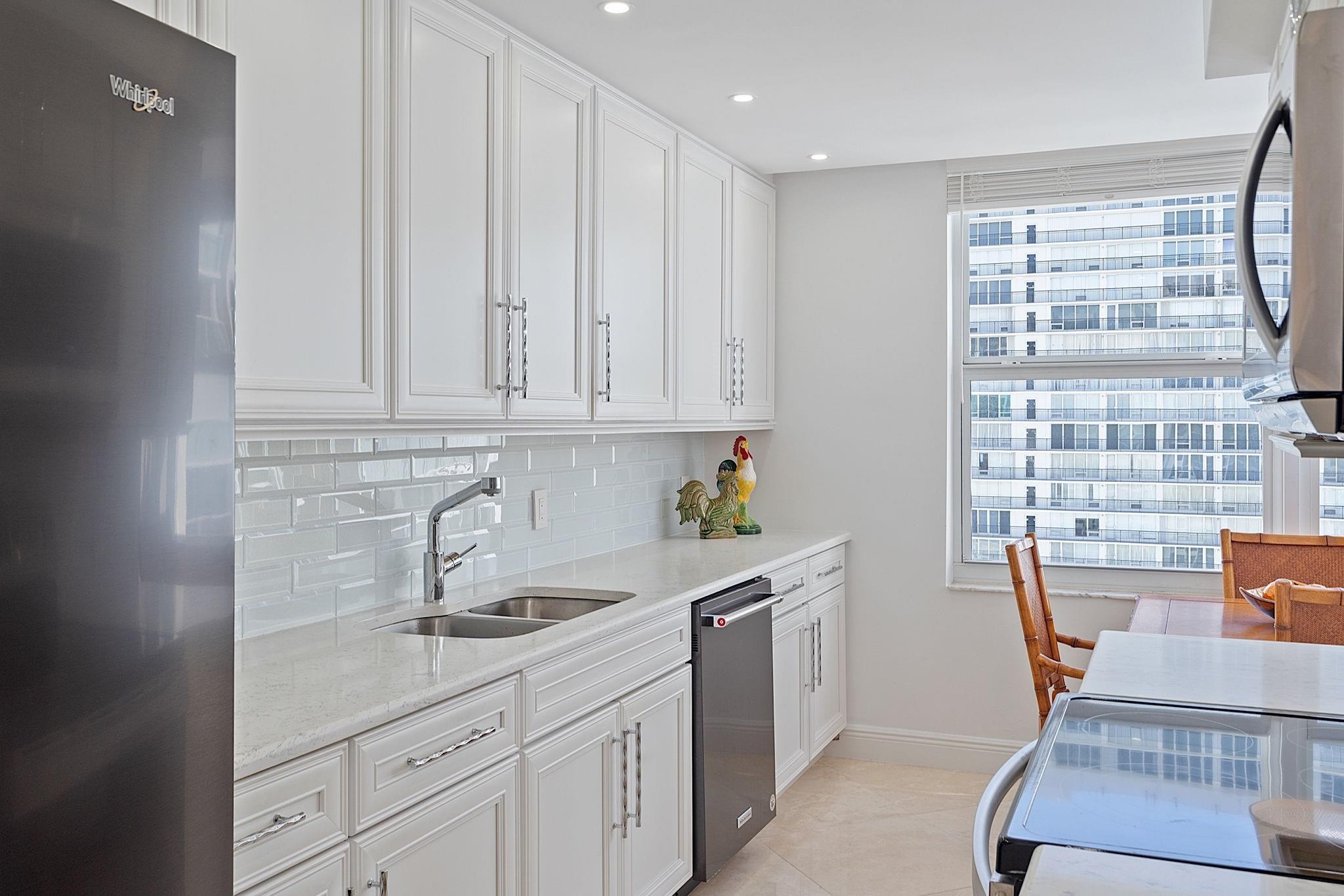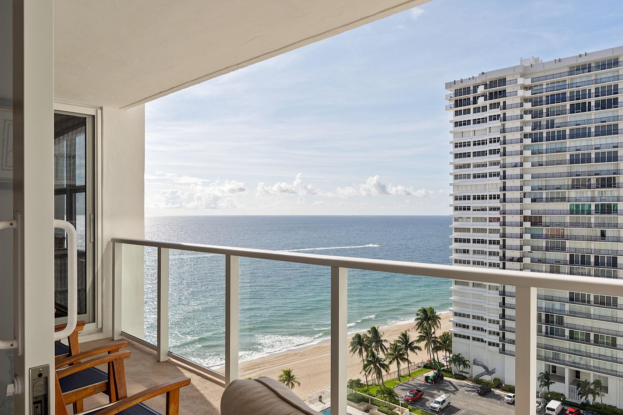 Experience coastal luxury in this turnkey condo on the pristine shores of Fort Lauderdale. This meticulously remodeled two-bed, two-bath residence offers breathtaking views of the Atlantic Ocean, enhancing your lifestyle. Step inside to a sophisticated kitchen featuring premium quartz countertops, a subway glass backsplash, stainless steel appliances, and a charming breakfast nook with captivating ocean vistas. The upgraded bathrooms include frameless glass shower doors and top-tier plumbing fixtures. With impact windows and doors, plus remote-controlled blinds in bedrooms, comfort and security are assured. Plaza East provides exceptional amenities: 24-hour security, a state-of-the-art fitness center with ocean views, and a resort-style pool with a BBQ area for entertaining.