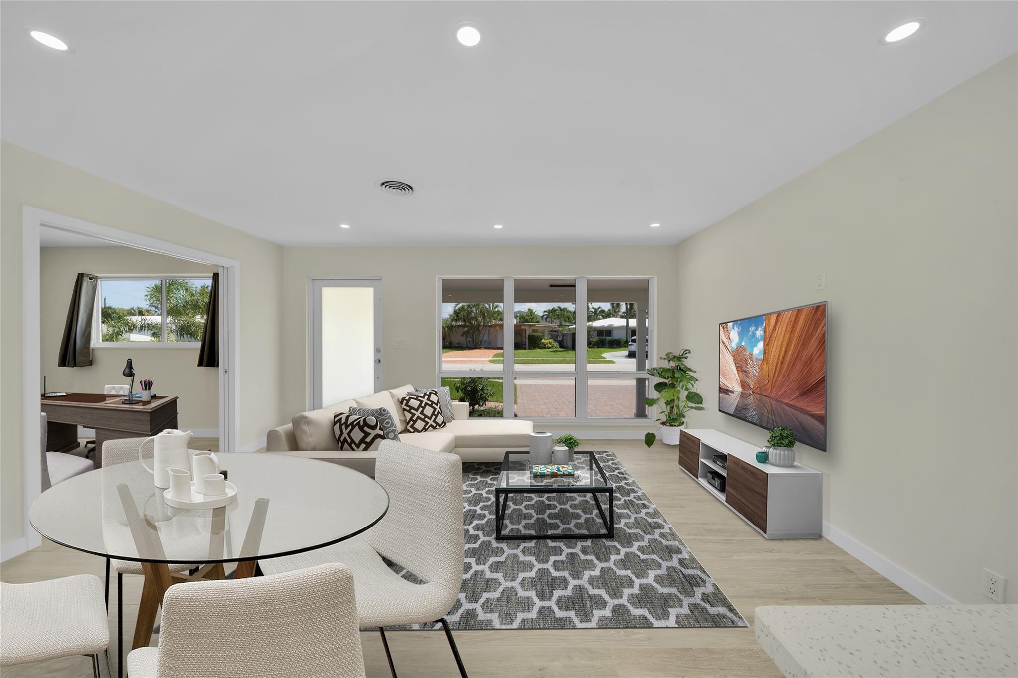 Newly renovated home in the heart of Imperial Point. Best part - Updates done with permits! Renovations include NEW Italian porcelain floors throughout, NEW plumbing and sewer pipes, NEW Electrical wiring and Panel. NEW instant-on hot water heater. NEW Impact doors and windows, NEW bathrooms with quartz countertops, with a cabana bath to pool, NEW Kitchen with Quartz countertops, NEW Sprinkler system, attractive landscaping, NEW lighting inside and out. NEW Air Conditioner. High tech "Smart" features include WiFi Sprinklers, Thermostat, Induction cooktop and oven, ring doorbell and cameras. Upgraded 15X30 ft Pool, Paver driveway, Large yard for entertaining. Package all this and more with LOCATION. Top Schools, Restaurants and entertainment. No HOA or restrictions. A Move in ready Gem!
