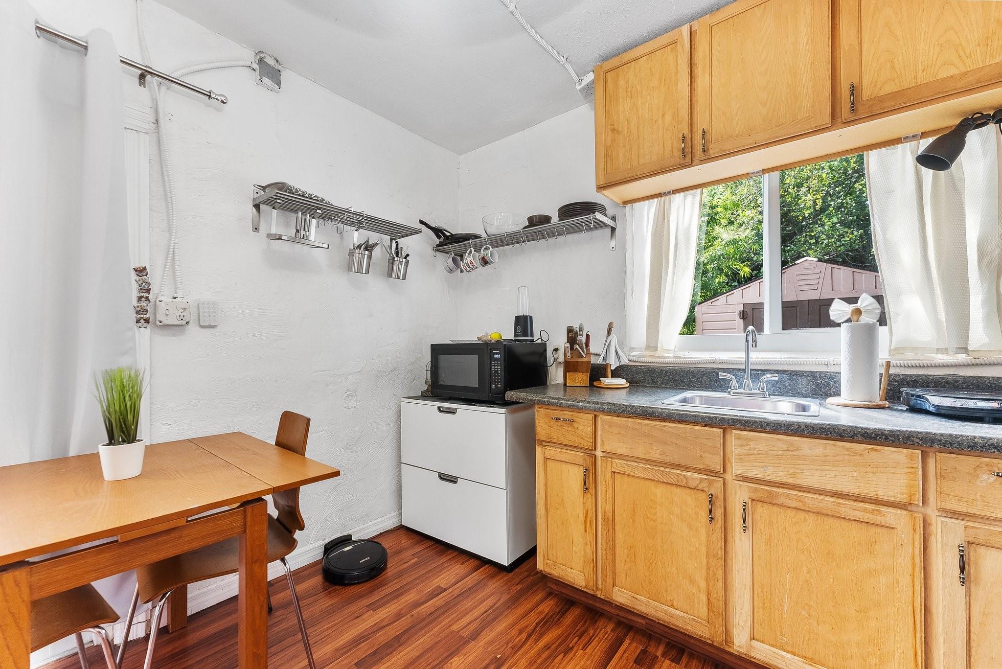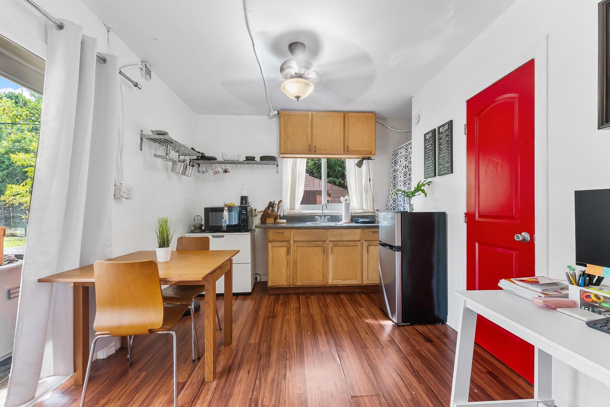 Welcome to this exceptional property located in the sought-after Shady Banks neighborhood, with one street in and one street out, AKA as the Hidden Gem, featuring two separate dwellings for flexible living arrangements or investment potential. The main residence boasts a 3/1 with open-concept living and dining spaces, all protected by impact windows for peace of mind. The back house offers a unique setup with two studio apartments, each with private entrances, oversized attic for storage, separate laundry, and perfect for guests or rental income. A spacious backyard features a double-gate entrance, large patio, and ample space for RV or boat storage. Enjoy the convenience of two parks in Shady Banks and the short drive to Fort Lauderdale’s vibrant downtown, airport and beautiful beaches.
