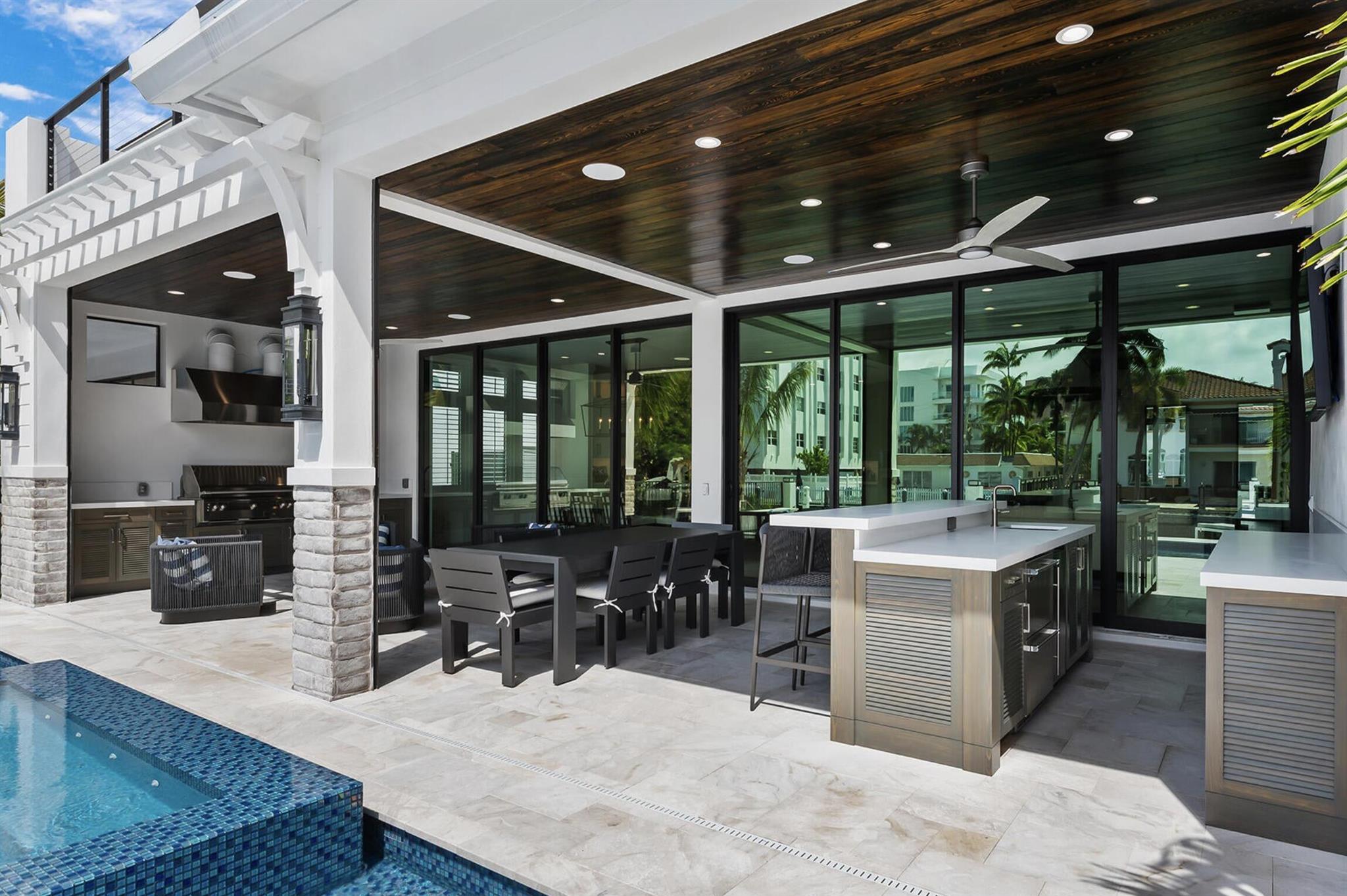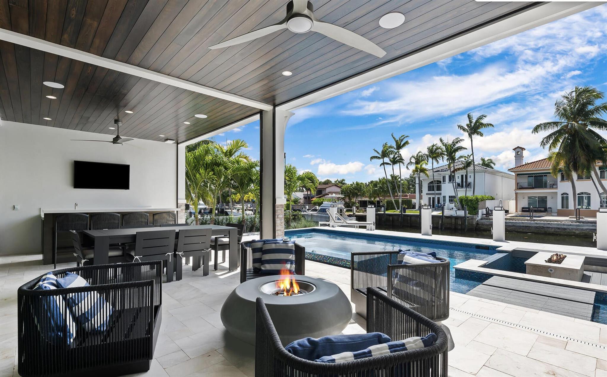 New co-ownership opportunity: Own one-eighth of this turnkey home, professionally managed by Pacaso. Walking distance of the beach, this completely renovated Las Olas Isles home has its own dock, canal-side pool and spa, and luxury touches throughout. The open plan living space has a cozy fireplace, Lutron lighting and sliding glass doors to the pool and full outdoor kitchen and bar with refrigerator drawers and ice maker. Inside, the gourmet kitchen features a striking island with breakfast bar and appliances by Wolf and Miele. The primary bedroom includes a balcony, an enormous closet and an en suite bathroom with a soaking tub, dual-sink vanity and tiled shower with two rain heads. The home, which has a theater room, comes fully furnished and professionally decorated.