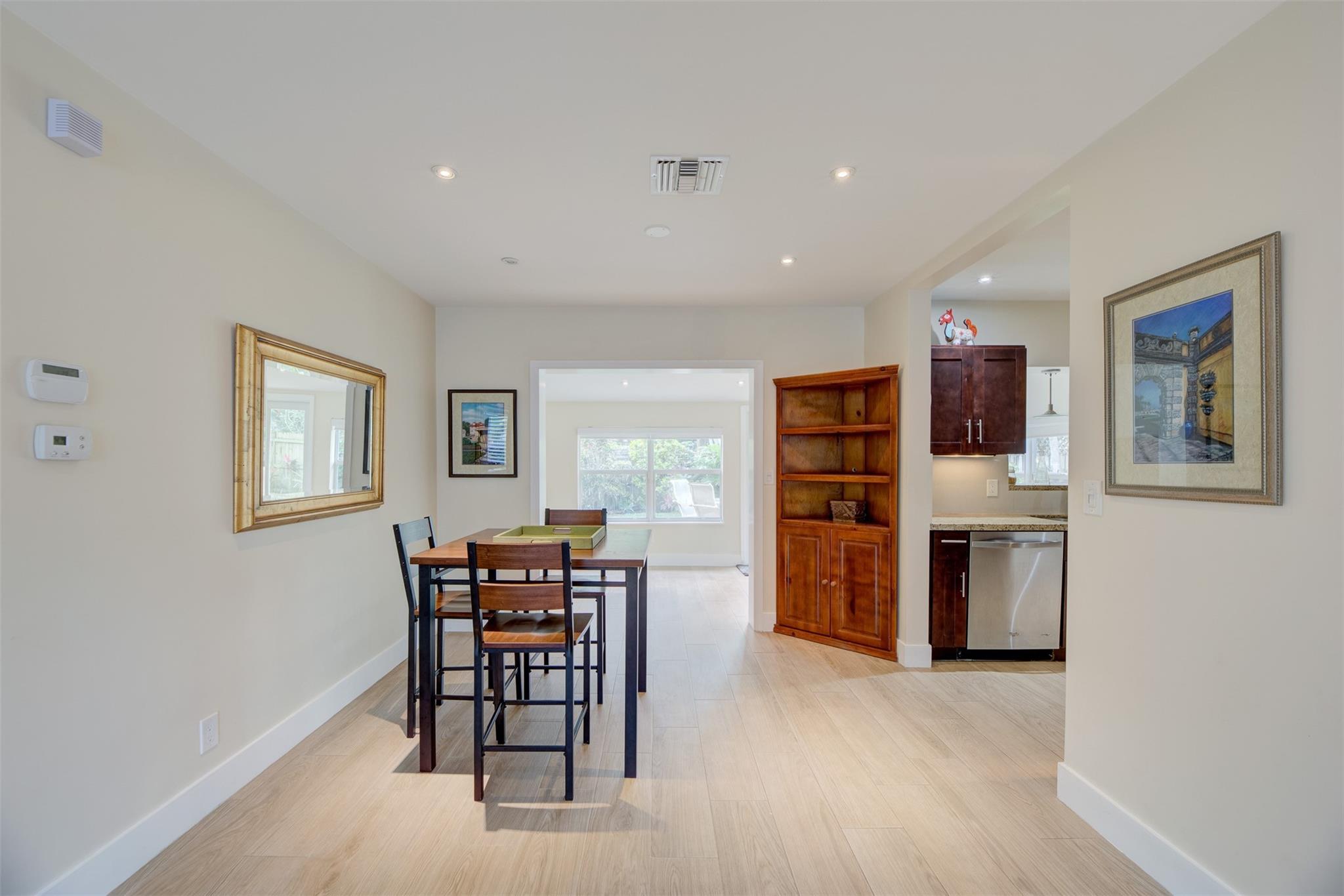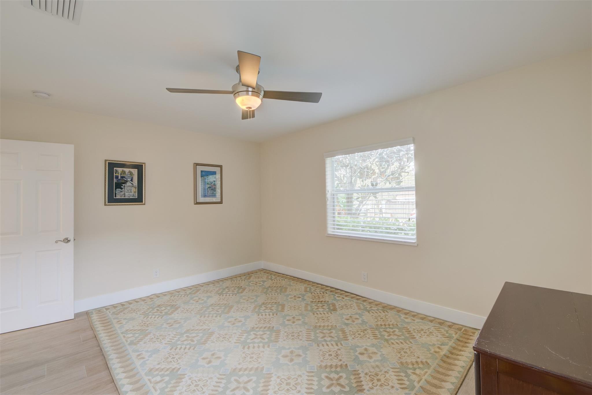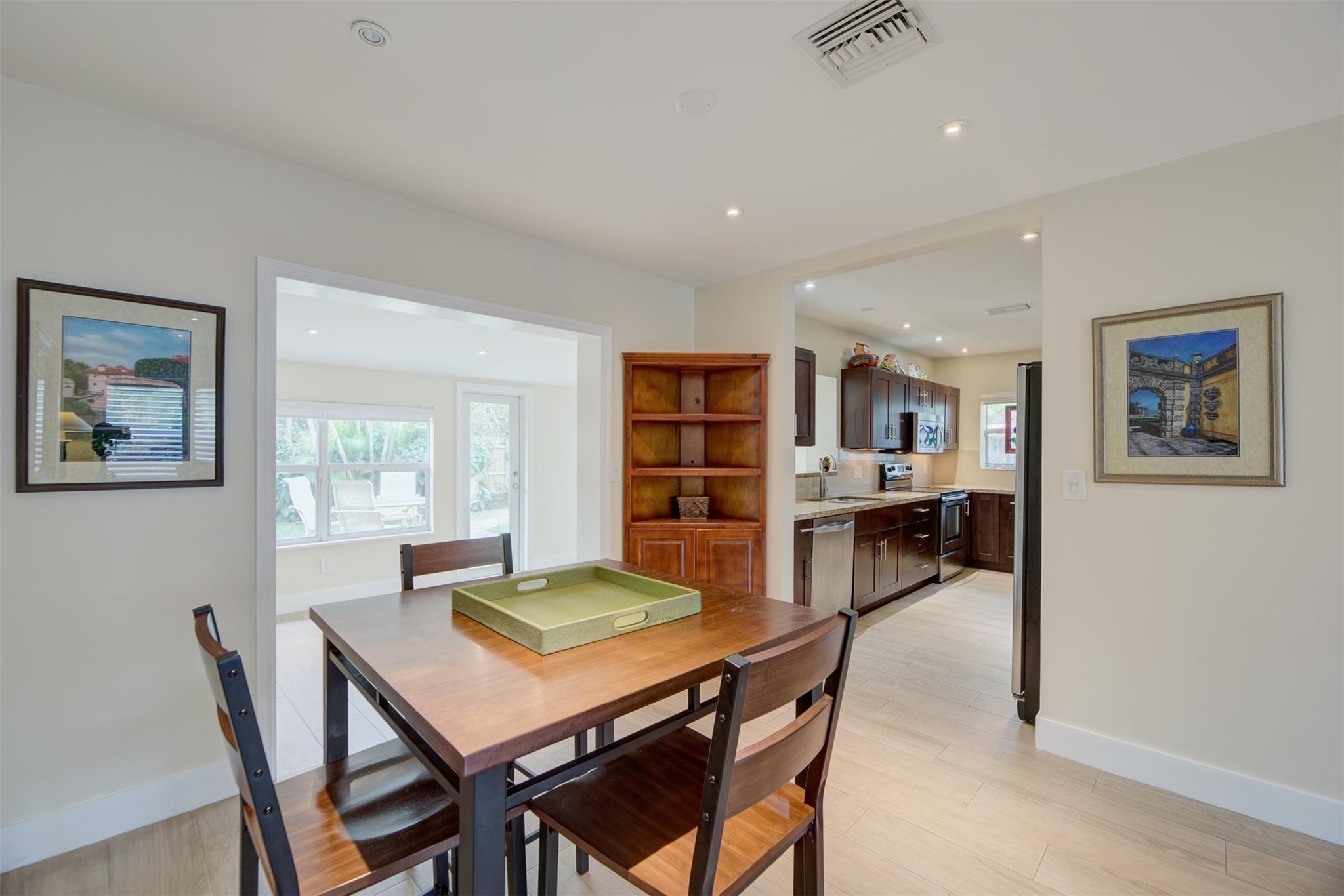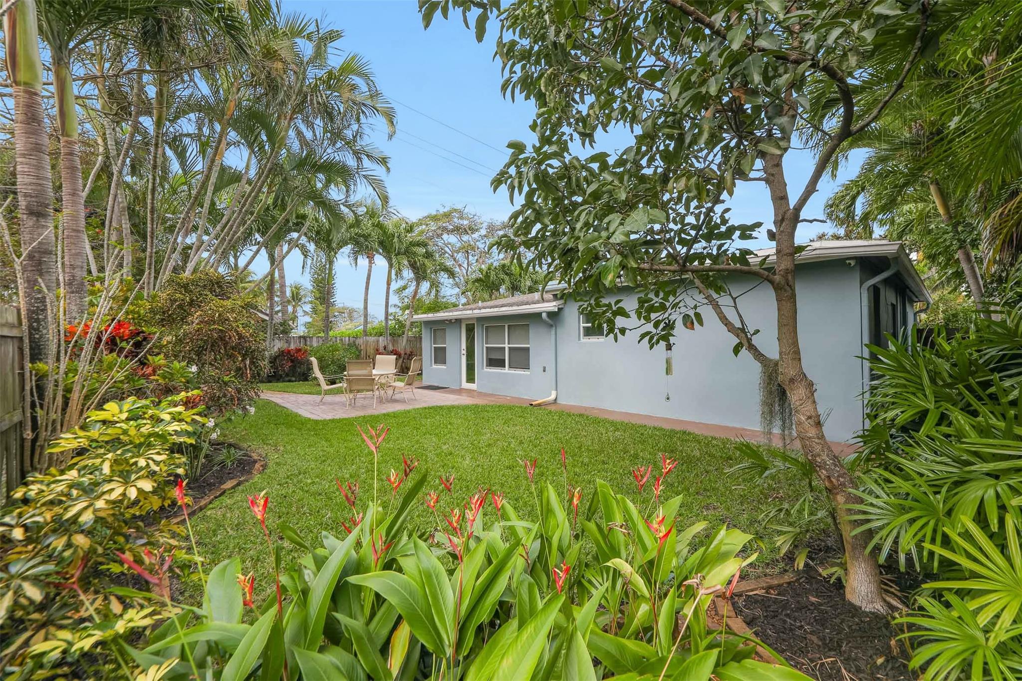 Beautiful mid-century home in desirable Poinsettia Heights with modern feel! Newer roof (2012), impact windows and doors, fireplace with beautiful mantle, ceramic floors that look like wood, modern lighting, modern large kitchen with stainless steel appliances and granite countertops, tankless water heater, Florida room/den, updated modern bathrooms with rain shower, interior laundry, California closets, rear fenced in yard (room for pool), lush tropical landscaping, sprinkler system on well water (with water treatment system), full one car garage with extra storage above. FULL OF CHARACTER! Bring your fussiest buyers!
