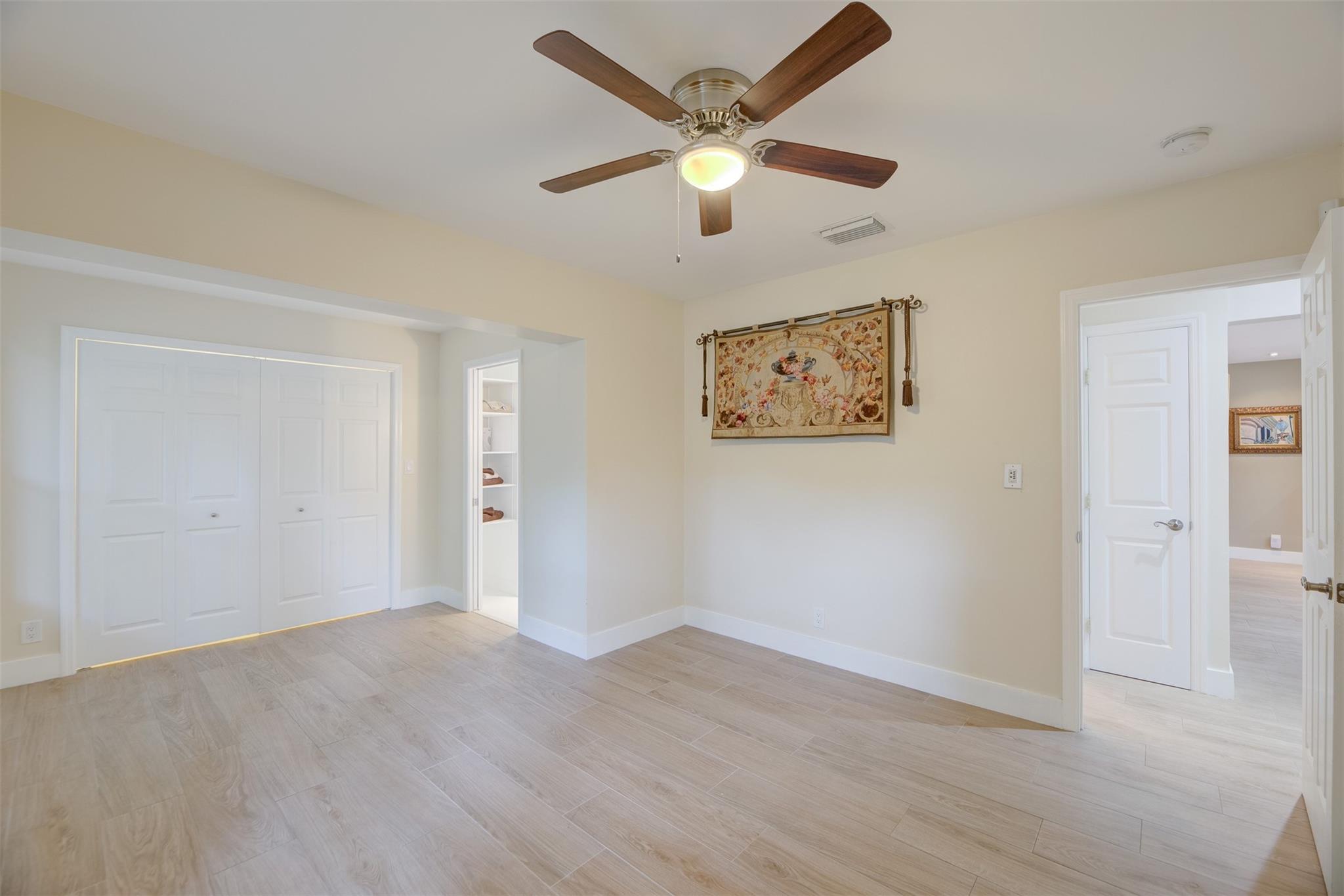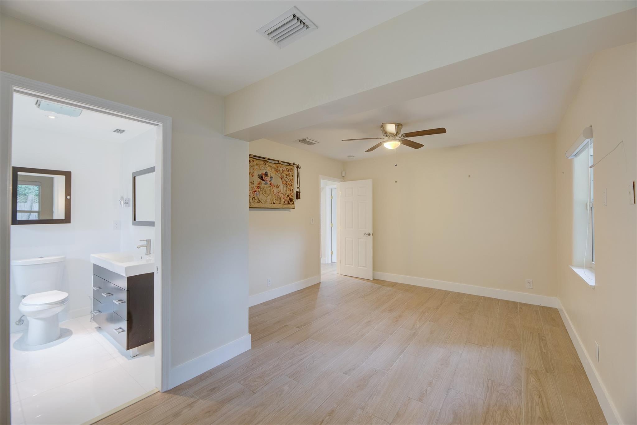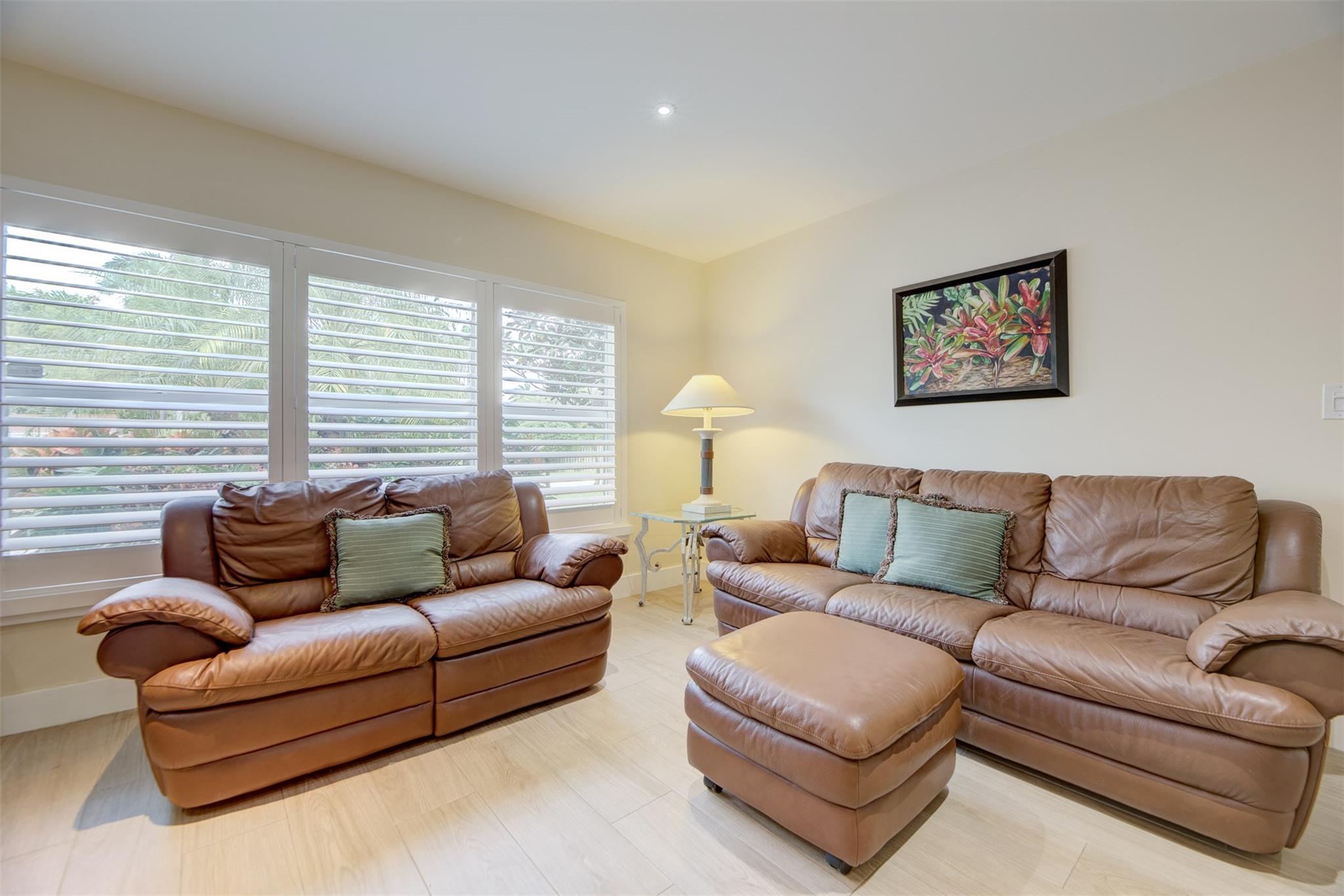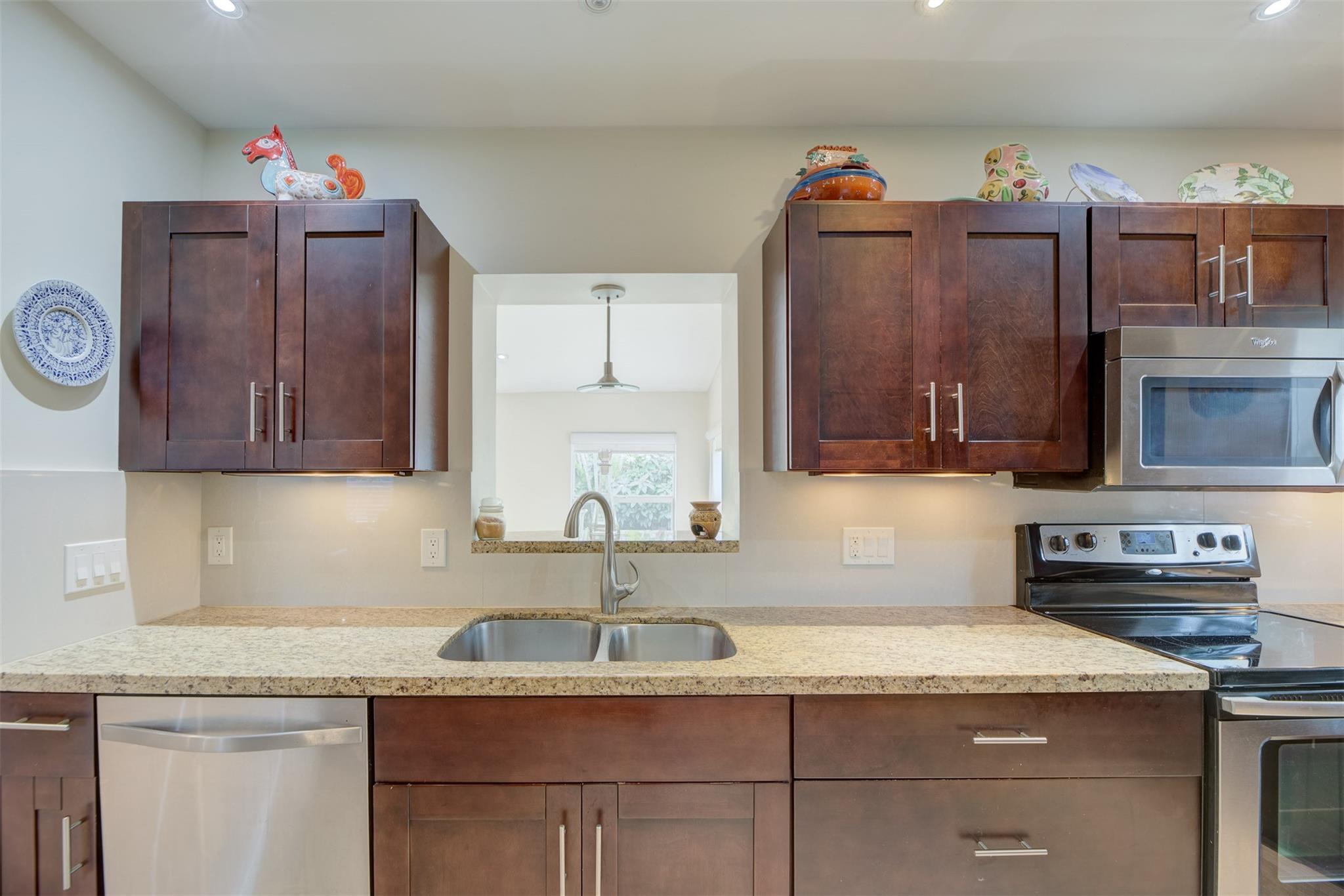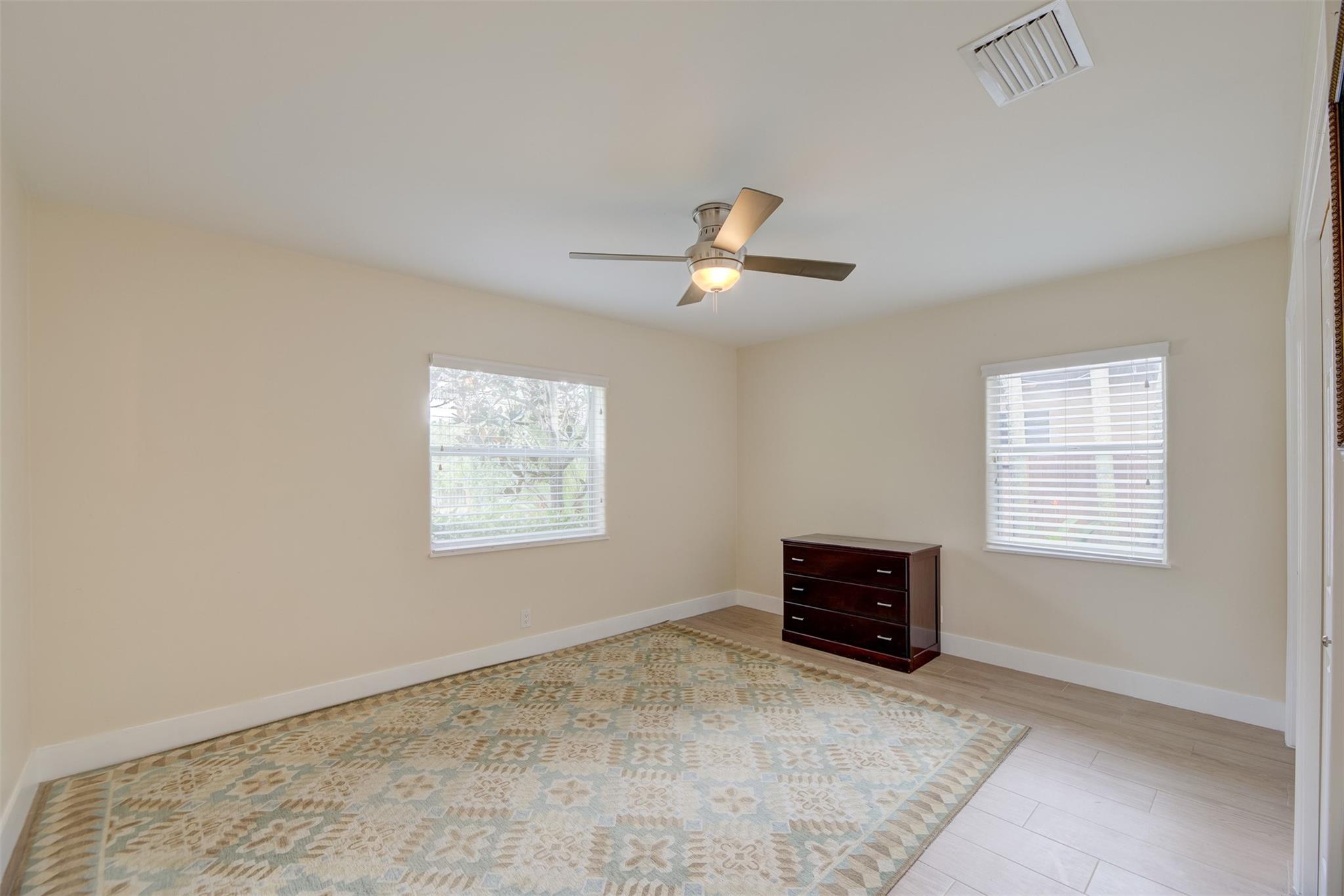 Beautiful mid-century home in desirable Poinsettia Heights with modern feel! Newer roof (2012), impact windows and doors, fireplace with beautiful mantle, ceramic floors that look like wood, modern lighting, modern large kitchen with stainless steel appliances and granite countertops, tankless water heater, Florida room/den, updated modern bathrooms with rain shower, interior laundry, California closets, rear fenced in yard (room for pool), lush tropical landscaping, sprinkler system on well water (with water treatment system), full one car garage with extra storage above. FULL OF CHARACTER! Bring your fussiest buyers!