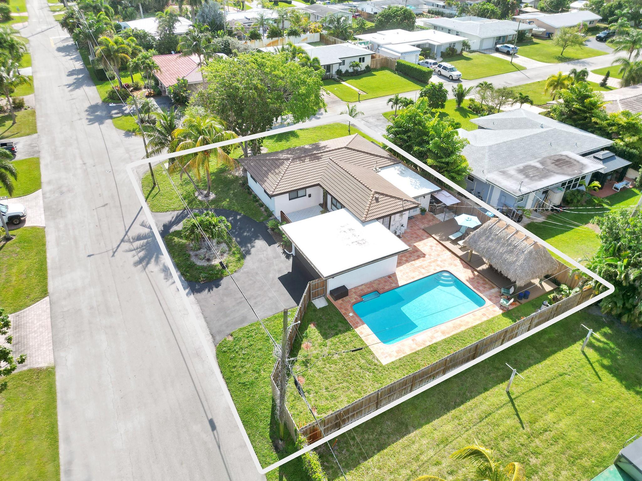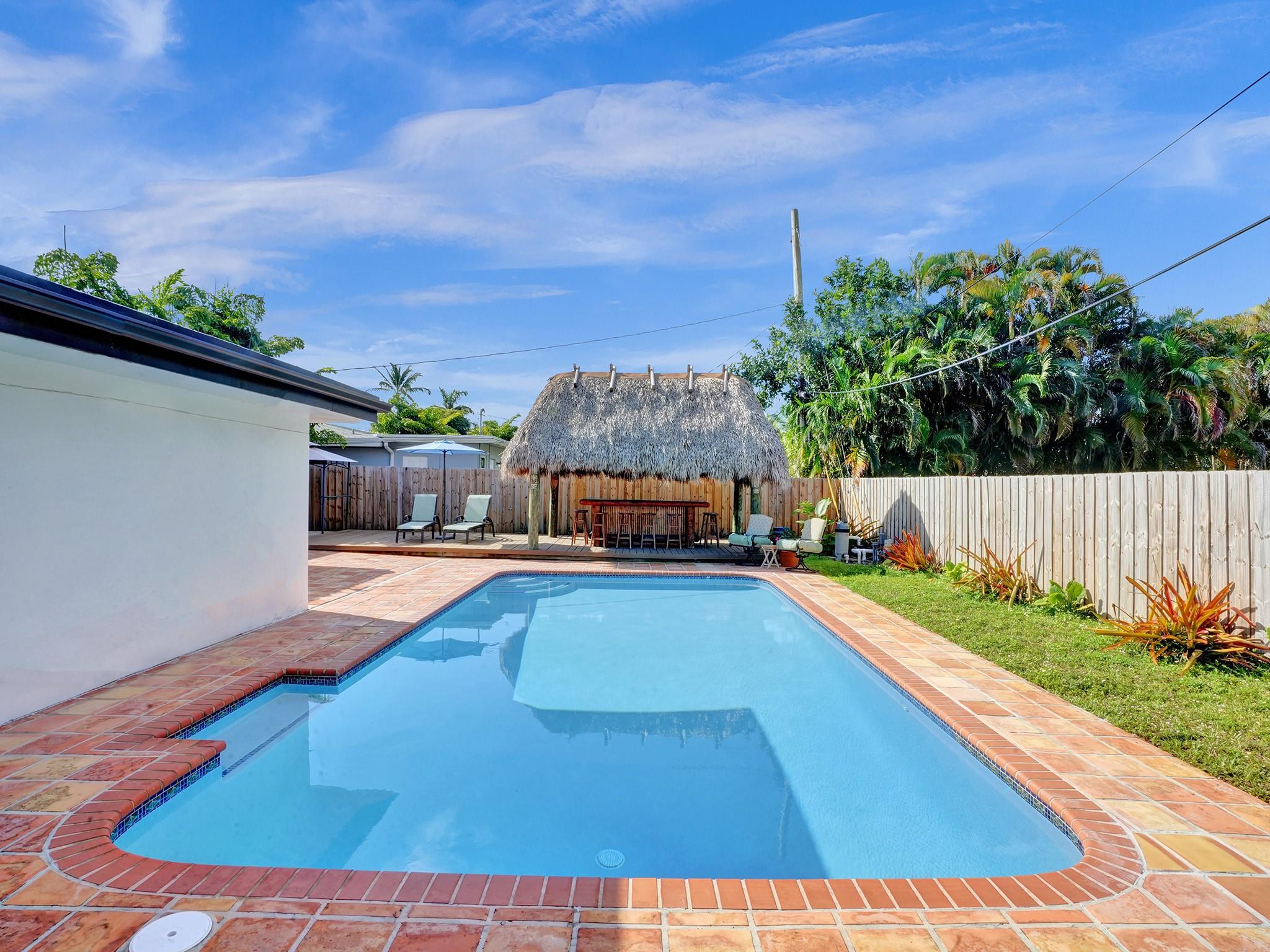 Privacy is the ultimate luxury! On the boarder of Oakland Park (neighbors across the street are in Ft Lauderdale) large corner lot w/ oversized pool w/ new Diamond Brite finish, Tiki Hut bar, w/ TV & refrigerator create the ultimate oasis. Kitchen maple cabinets, stainless appliances (2022) quartz kitchen countertops, impact windows & doors, new roof (2021). New HVAC (2022) electric in (2019). Open floor plan combined with large windows provide lots of natural light. New ceramic tile flooring, new hardwood BR doors, new pool pump (2024), new Decora electric outlets & light switches, extra attic insulation added bringing upto R30, new blinds, outdoor shower, courtyard w/ orchid wall & privacy fence (2024). 3-zone sprinkler system. Over $100,000 in upgrades. Nothing left to do but enjoy.