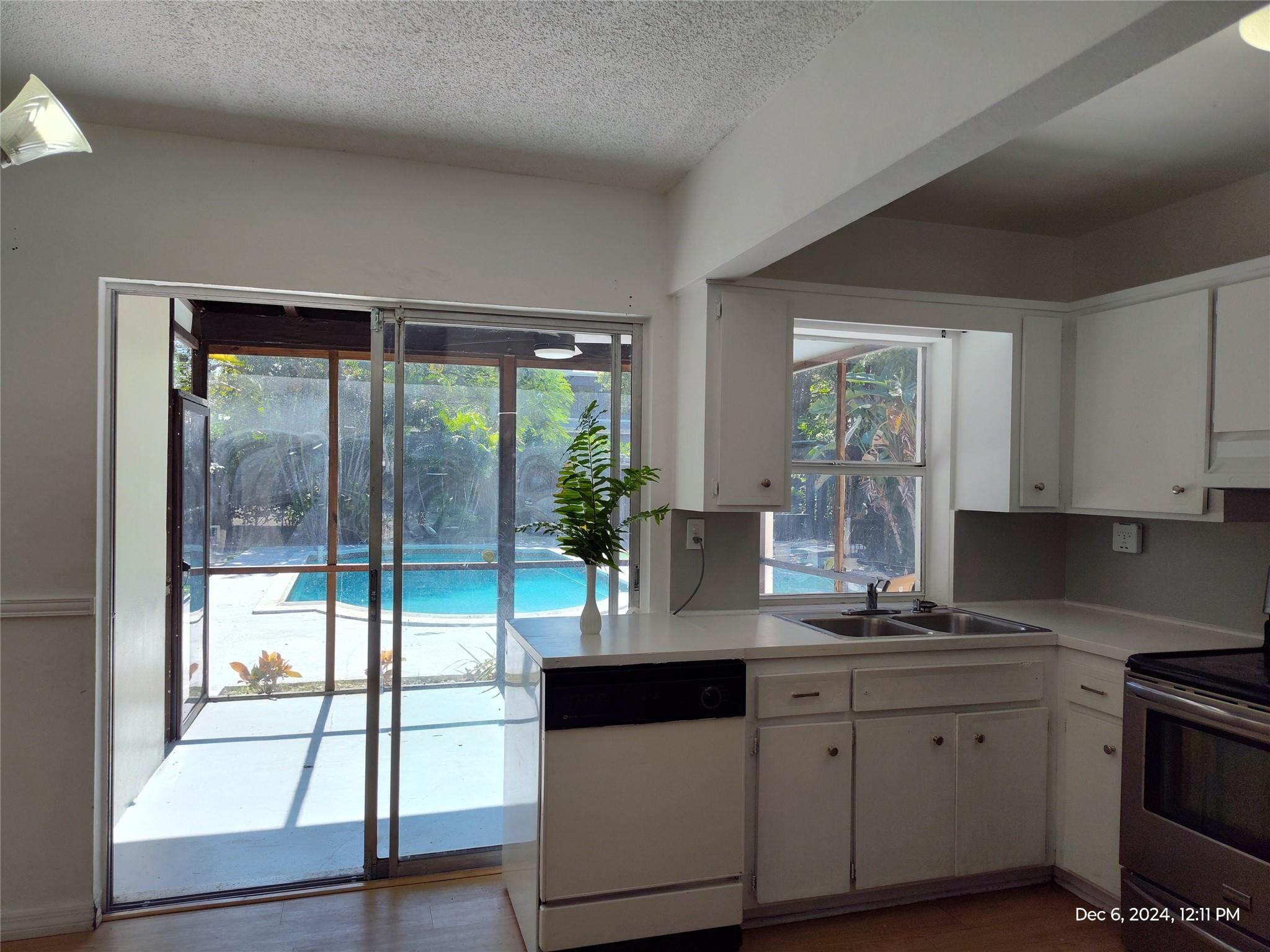 Fenced in property with new resurfaced pool, roof, enclosed patio, laundry room with washer and dryer, carport, centrally located, very quiet neighborhood....