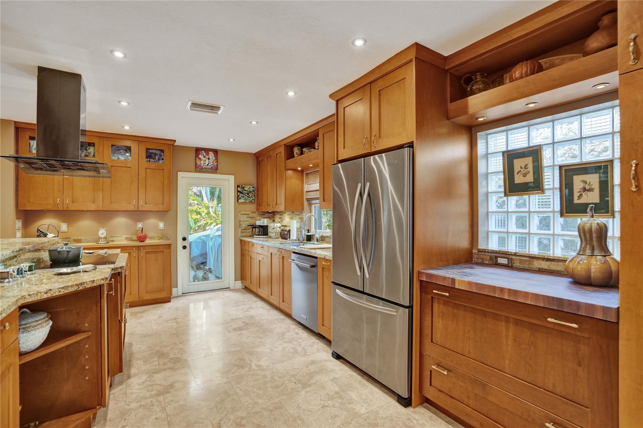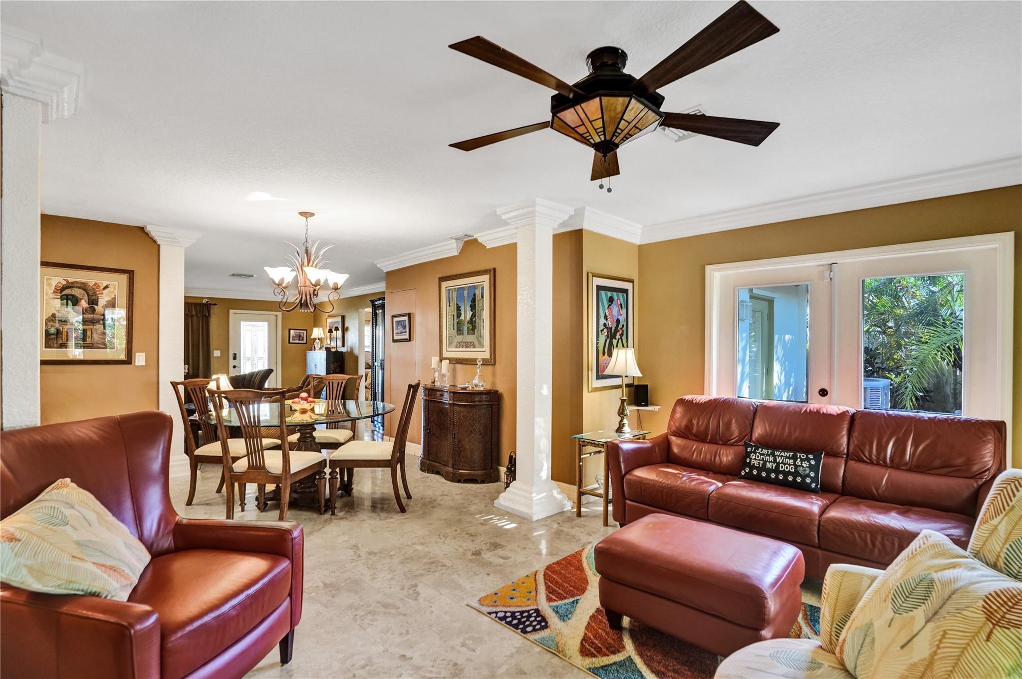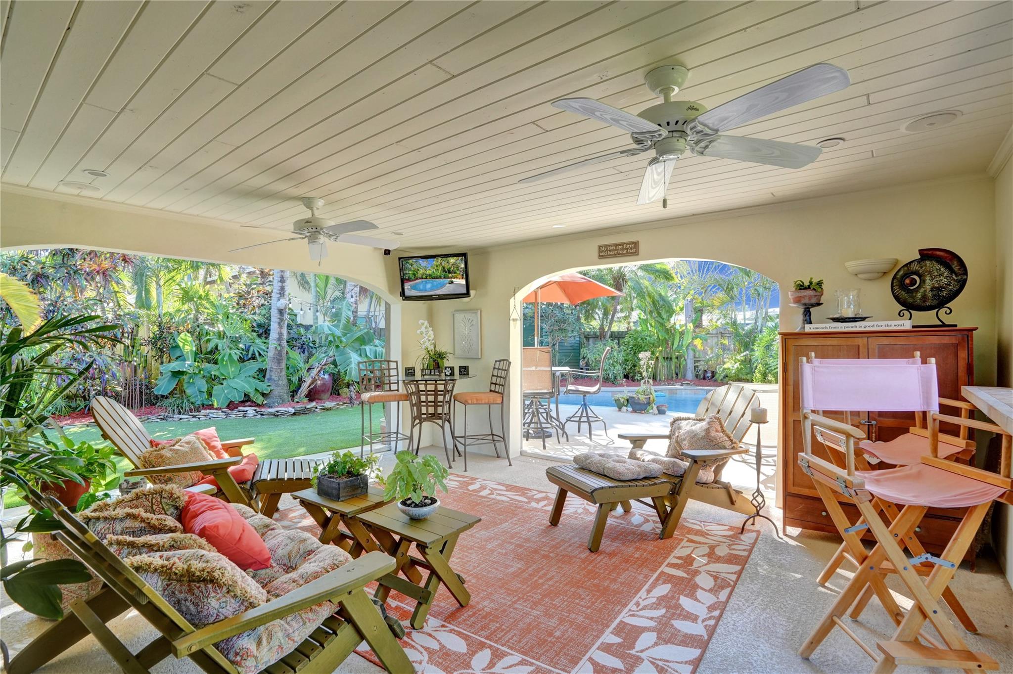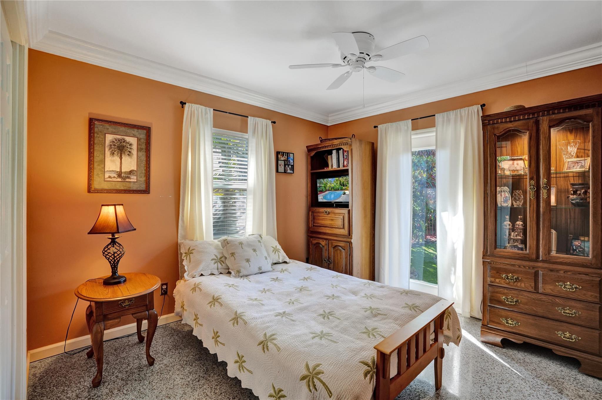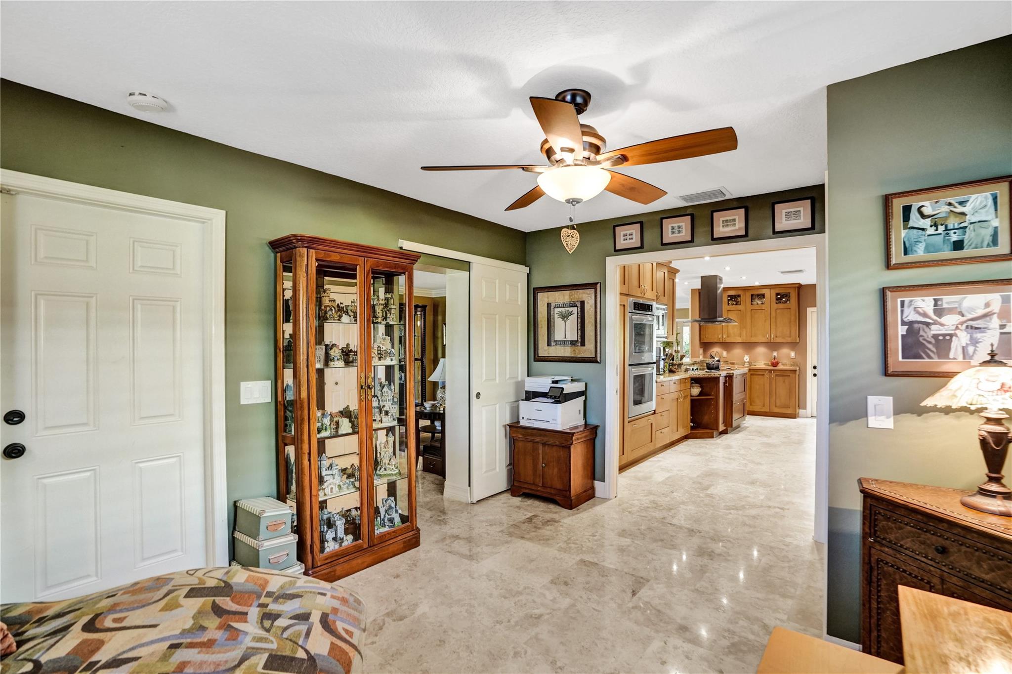 Nestled in sought-after Poinsettia Heights neighborhood, this beautifully updated home offers a perfect blend of modern elegance and comfort. Desirable open-concept floor plan immediately captures your attention as it effortlessly flows into a lovely view of the pool and lush garden, creating a seamless indoor-outdoor living experience. The expansive kitchen is a chefs dream, featuring a professional-grade exhaust hood, abundant granite countertops, ample cabinetry, and double oven. Polished Travertine and cool terrazzo floors add a touch of sophistication. Spacious formal living room & separate family room opens up to an incredible covered porch that overlooks the resort-style pool area—offering complete privacy. Newer flat tile roof & A/C (2016), provides peace of mind for years to come.