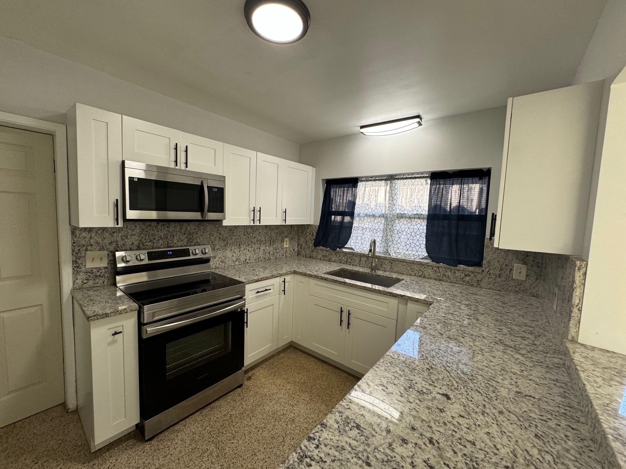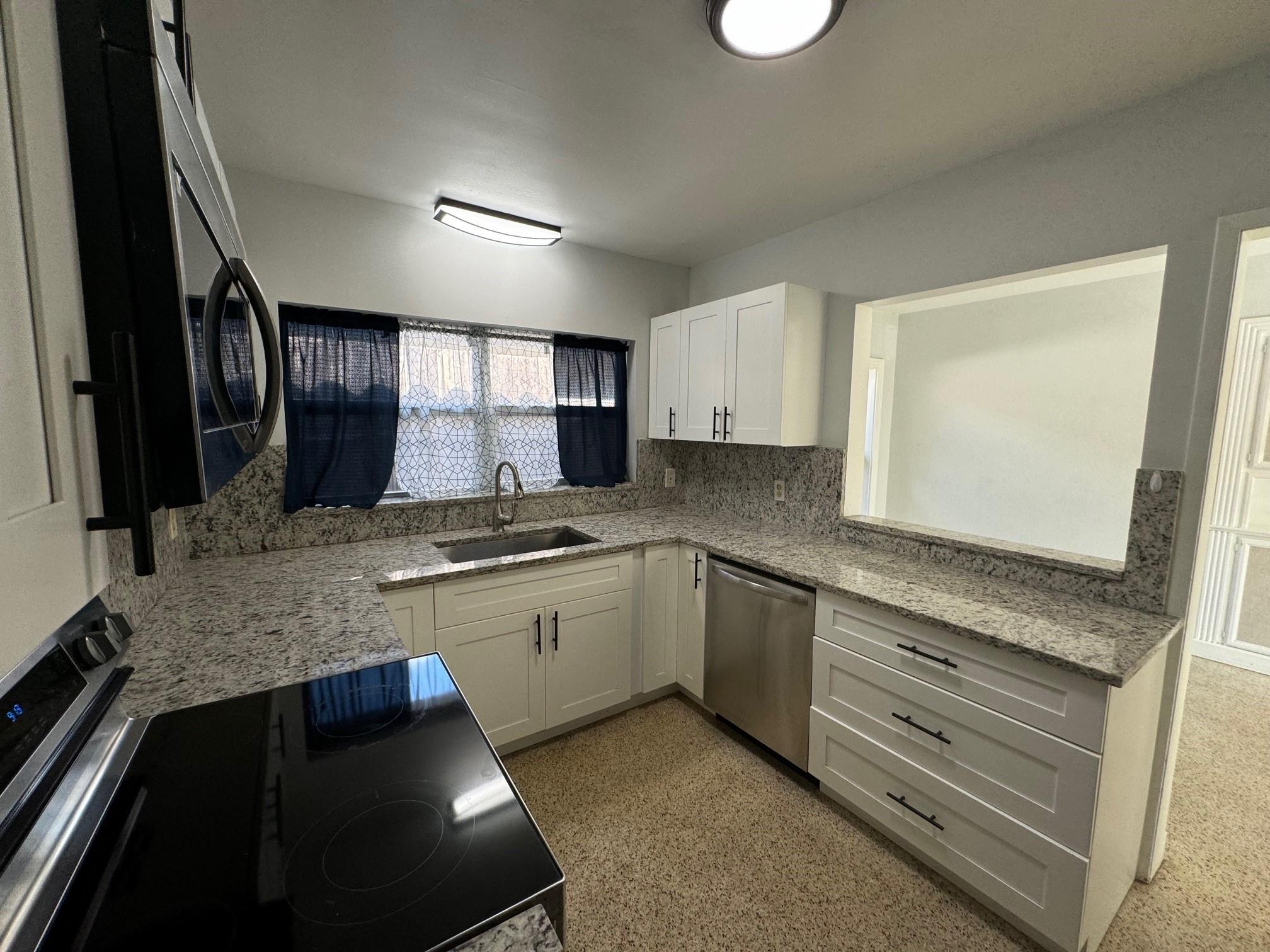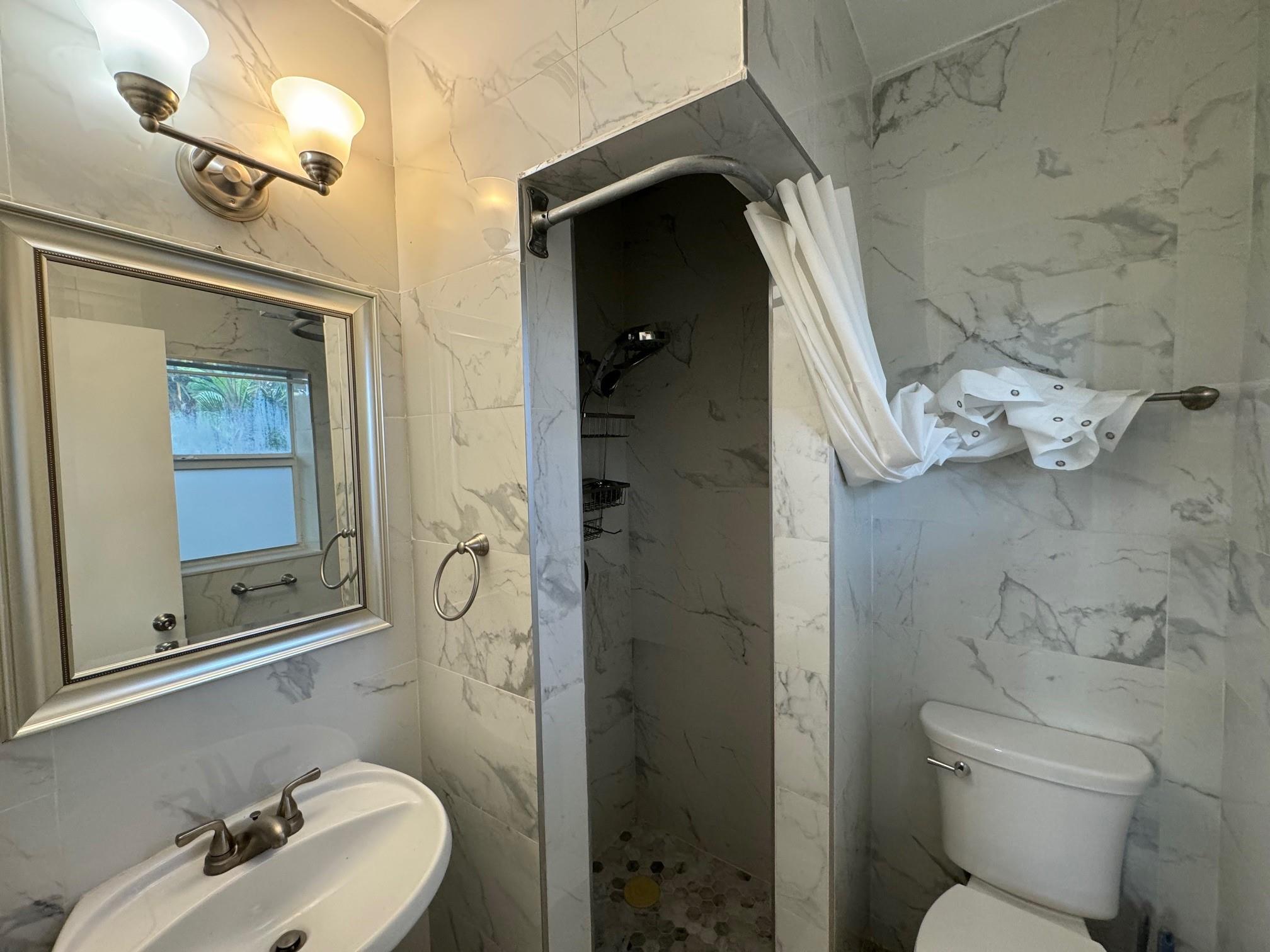 Corner lot in Lake Ridge. Main house consists of three bedrooms and two bathrooms with a bonus room to use as a study, den, or even extra bedroom space for guests. Kitchen has been updated with new cabinets and quartz countertops. Majority of main house has terrazzo flooring and impact windows. Separated by covered storage space, the one bedroom, one bathroom guest house is a great way to generate income if you decide to keep the main house for yourself. Ample outdoor space with lush, mature landscaping. Located in east Fort Lauderdale close to Federal Highway, restaurants, shops, and the beaches!