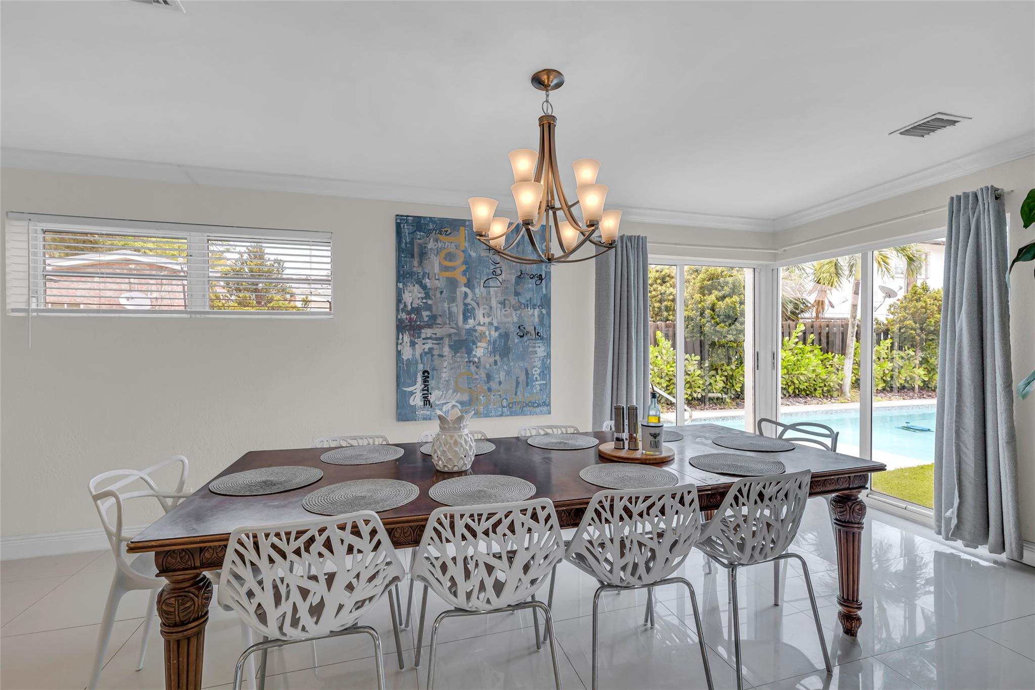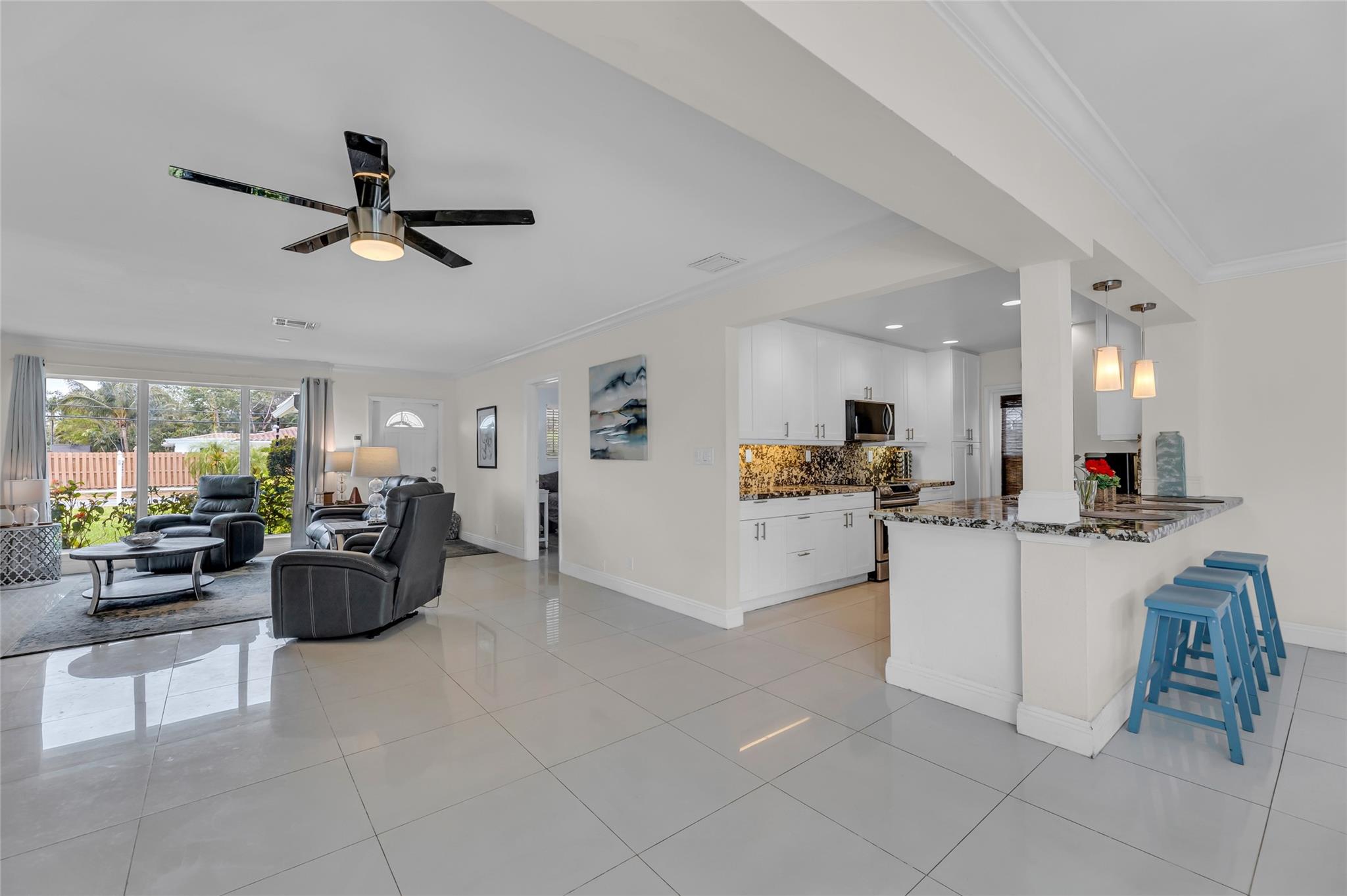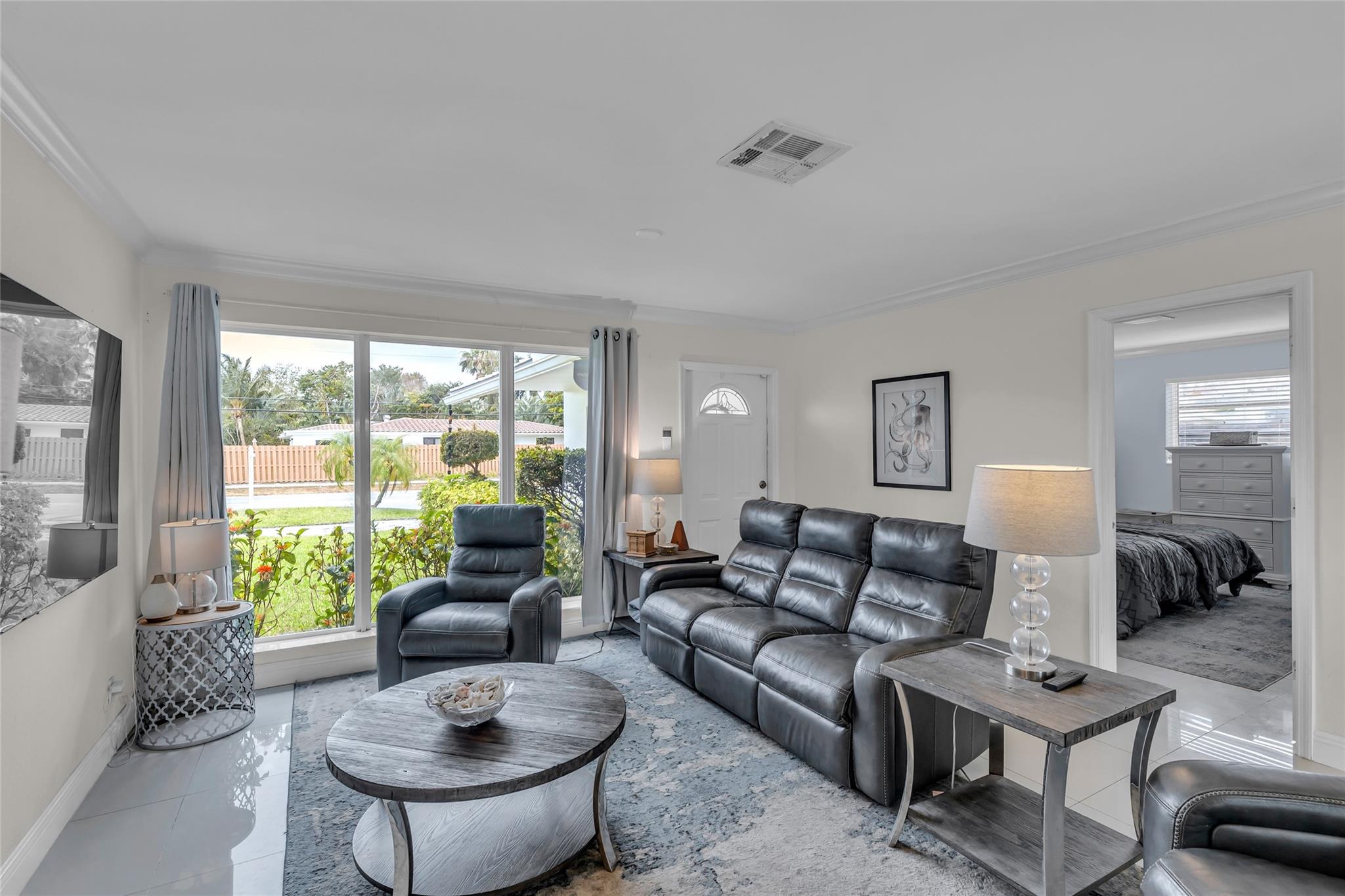 Experience the epitome of South Florida living in this immaculate 3/2 pool home in Coral Ridge Isles. Featuring a spacious open floor plan adorned with crown molding, tile flooring and an abundance of natural light, this residence exudes a warm and inviting ambiance. The kitchen boasts granite countertops, stainless steel appliances and ample cabinet space. Step outside to your own private oasis: a heated saltwater pool, expansive patio and charming gazebo provide the perfect backdrop for al fresco dining, sun-soaked relaxation, and entertaining guests. Both the backyard and side yard are outfitted with turf for easy upkeep. Prime location, just moments away from pristine beaches, vibrant shopping districts, and a diverse culinary scene. Don't miss your chance to call this paradise home!