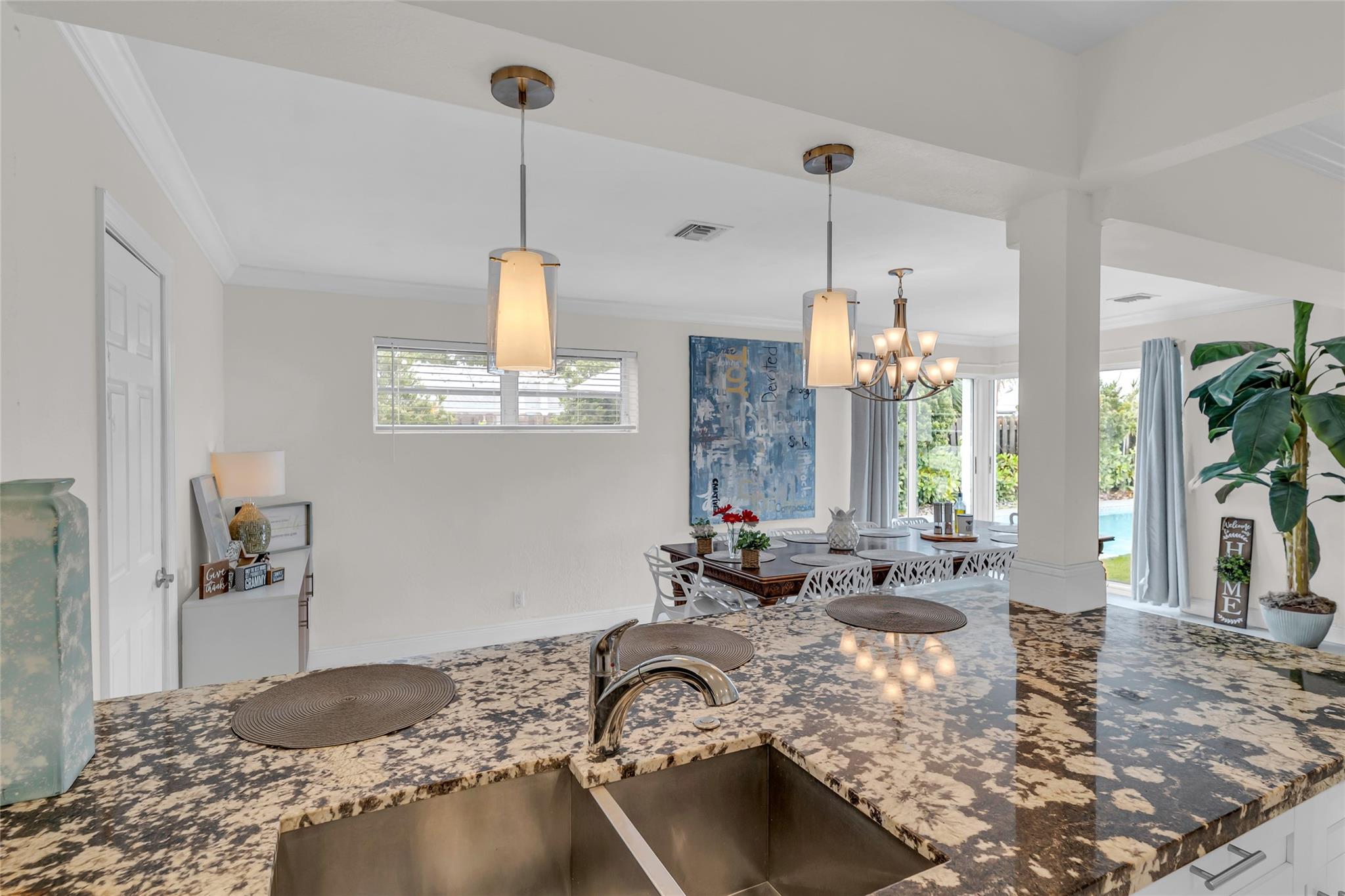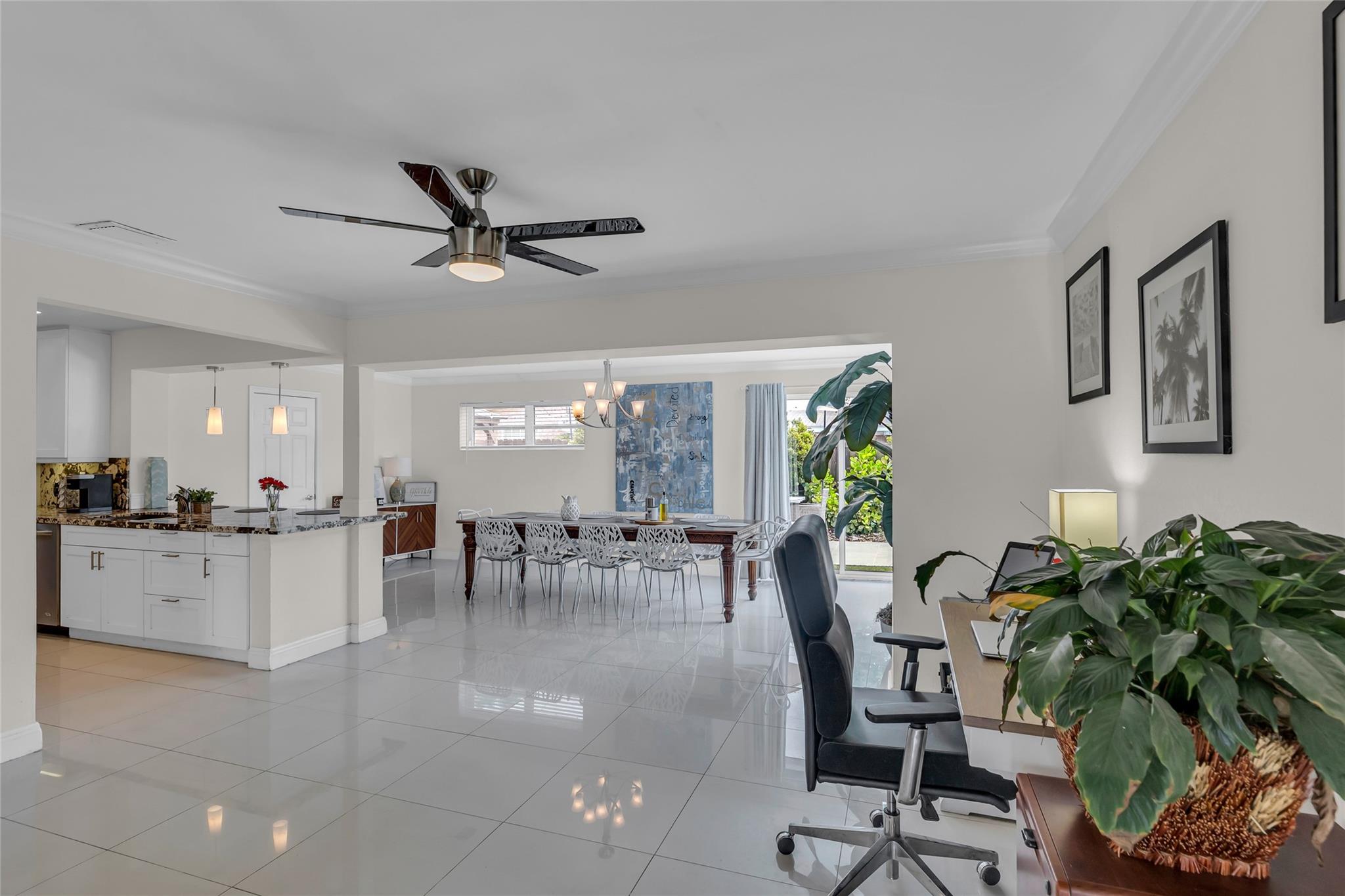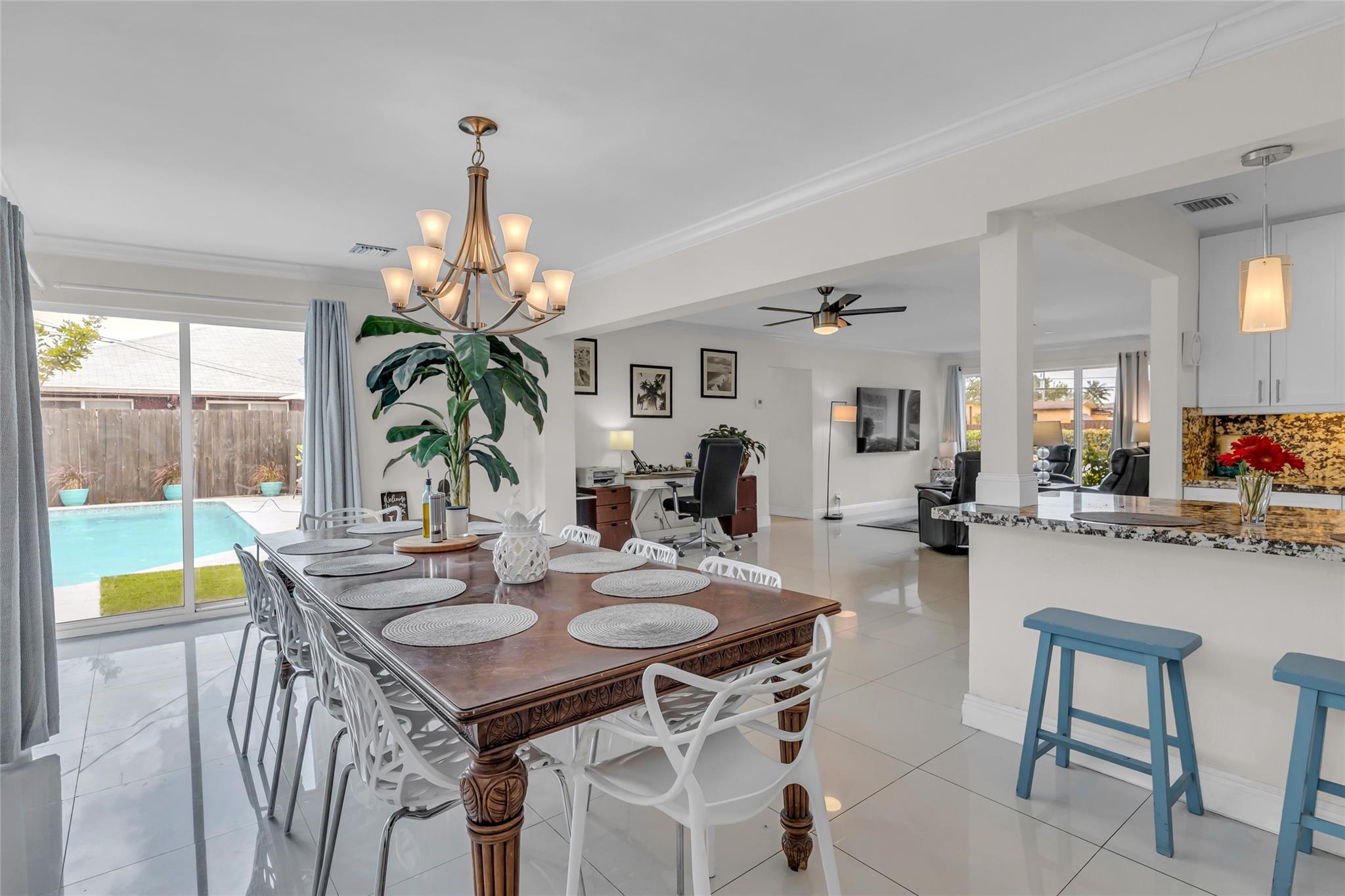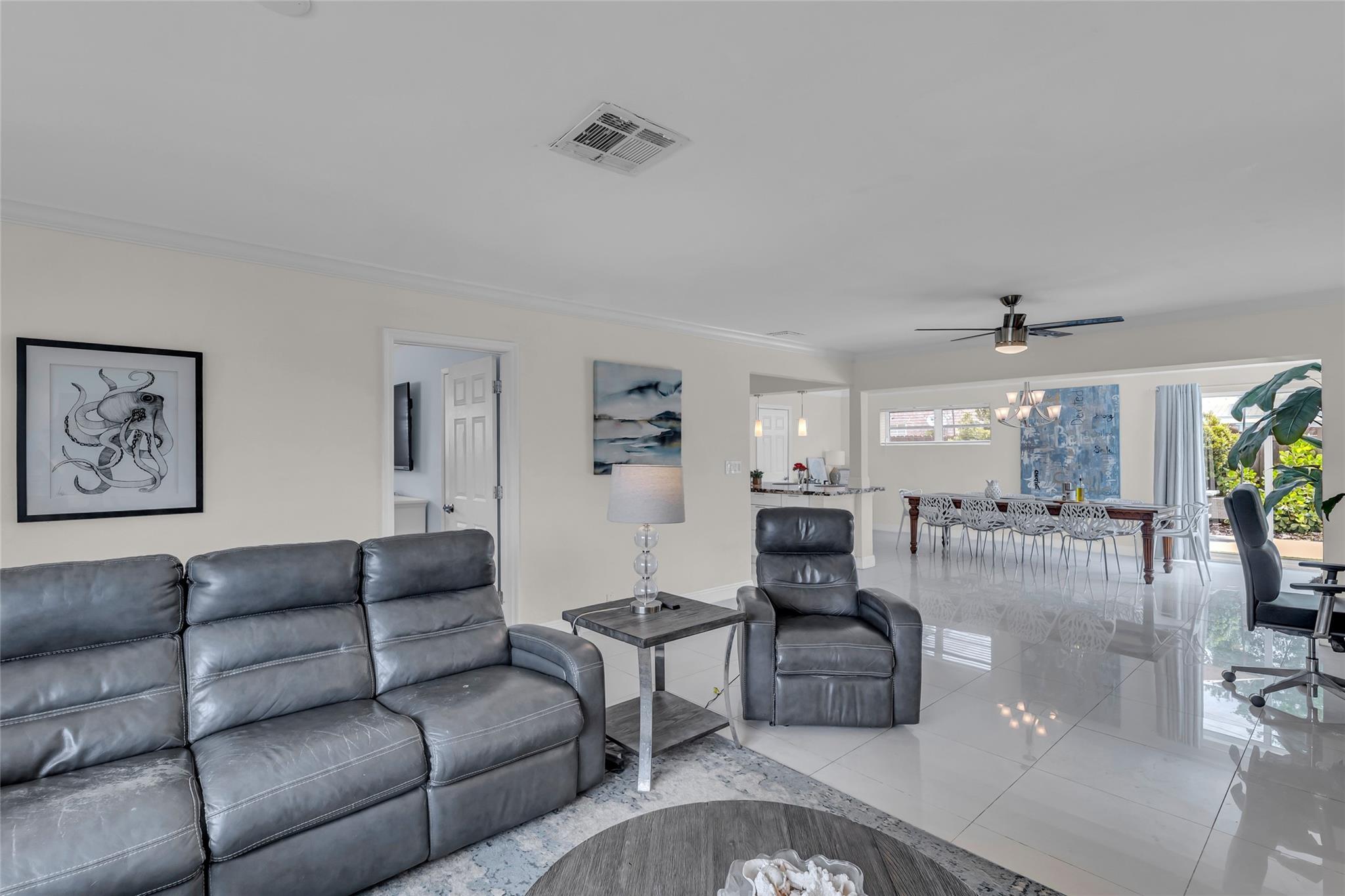 Experience the epitome of South Florida living in this immaculate 3/2 pool home in Coral Ridge Isles. Featuring a spacious open floor plan adorned with crown molding, tile flooring and an abundance of natural light, this residence exudes a warm and inviting ambiance. The kitchen boasts granite countertops, stainless steel appliances and ample cabinet space. Step outside to your own private oasis: a heated saltwater pool, expansive patio and charming gazebo provide the perfect backdrop for al fresco dining, sun-soaked relaxation, and entertaining guests. Both the backyard and side yard are outfitted with turf for easy upkeep. Prime location, just moments away from pristine beaches, vibrant shopping districts, and a diverse culinary scene. Don't miss your chance to call this paradise home!