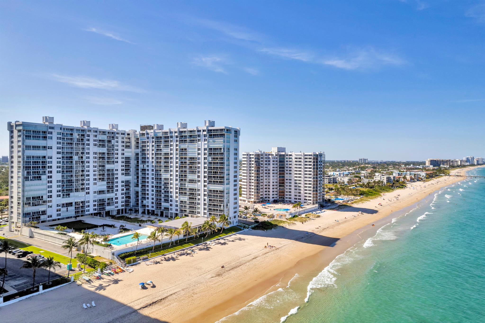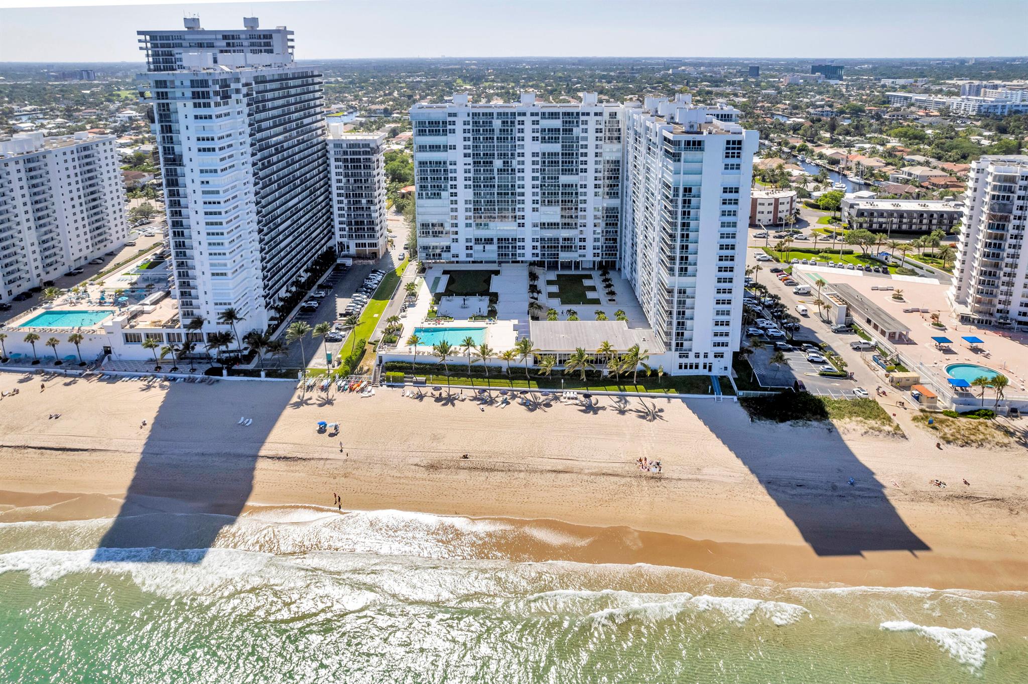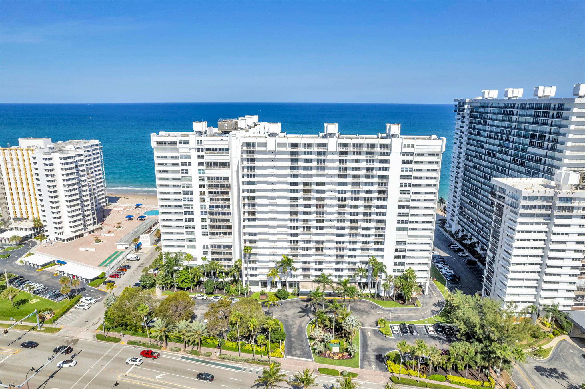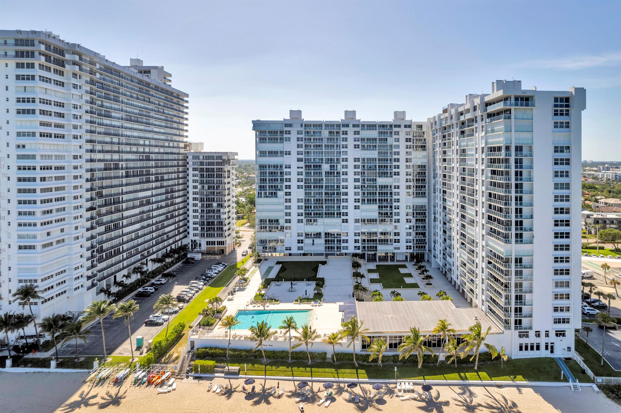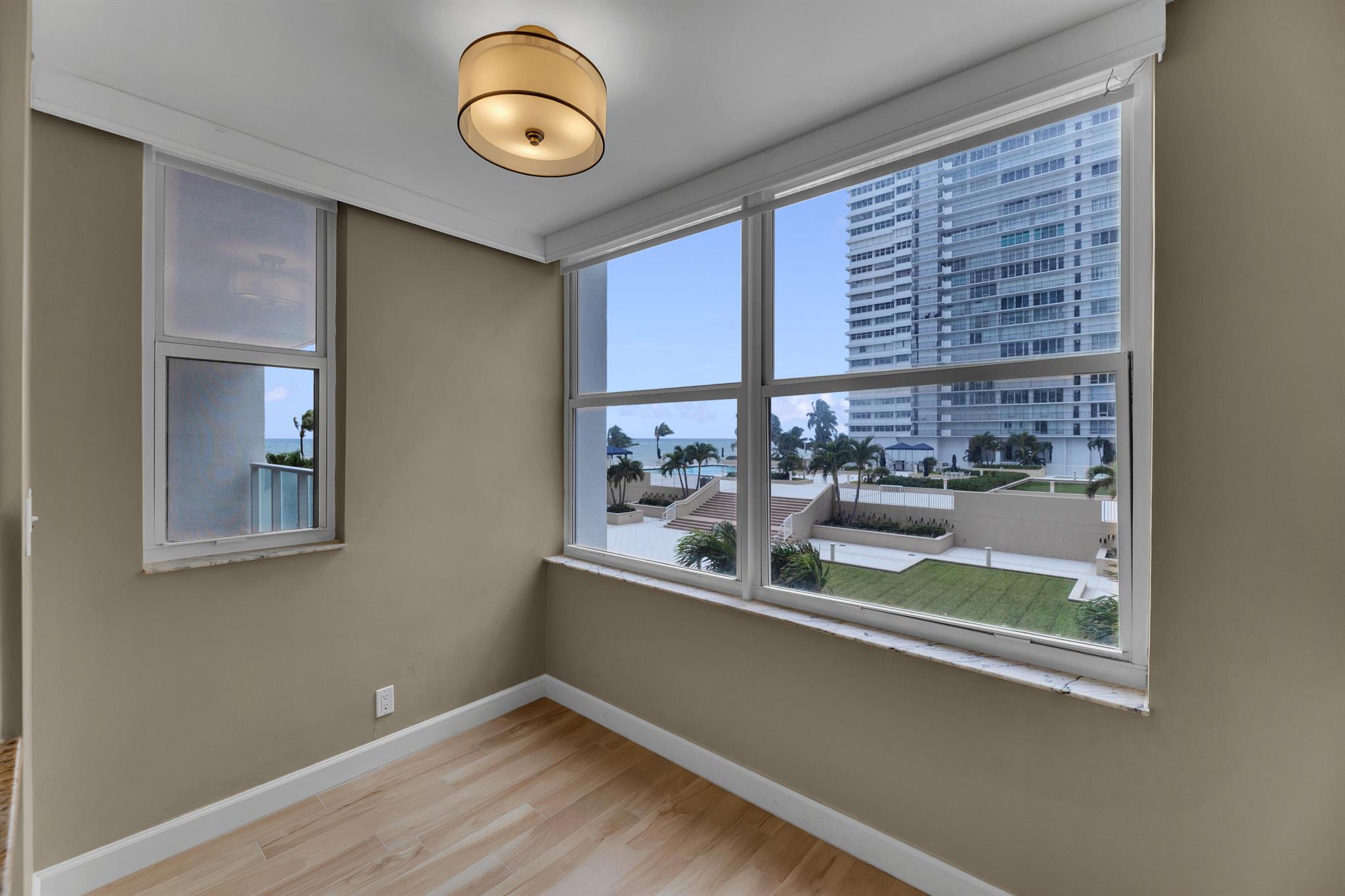 Coastal Luxury with Spectacular Ocean and Pool Views! Your beachfront haven awaits you, this spacious 2 bedroom 2 bath condo is perfectly positioned on the second floor of Plaza East, a luxury beachfront building in Fort Lauderdale. Enjoy the Southeast exposure filling your home with morning sunlight, the perfect blend of luxury, comfort and style. Featuring a modern kitchen with granite countertops, stainless appliances and an eat in breakfast nook. Electric window shades for your convenience in the main living area. Smooth modern ceilings throughout for a clean contemporary look. hurricane impact windows, a semi private elevator for added privacy and fantastic amenities. Plaza East is a full service building with exceptional features and unbeatable location, this condo truly offers
