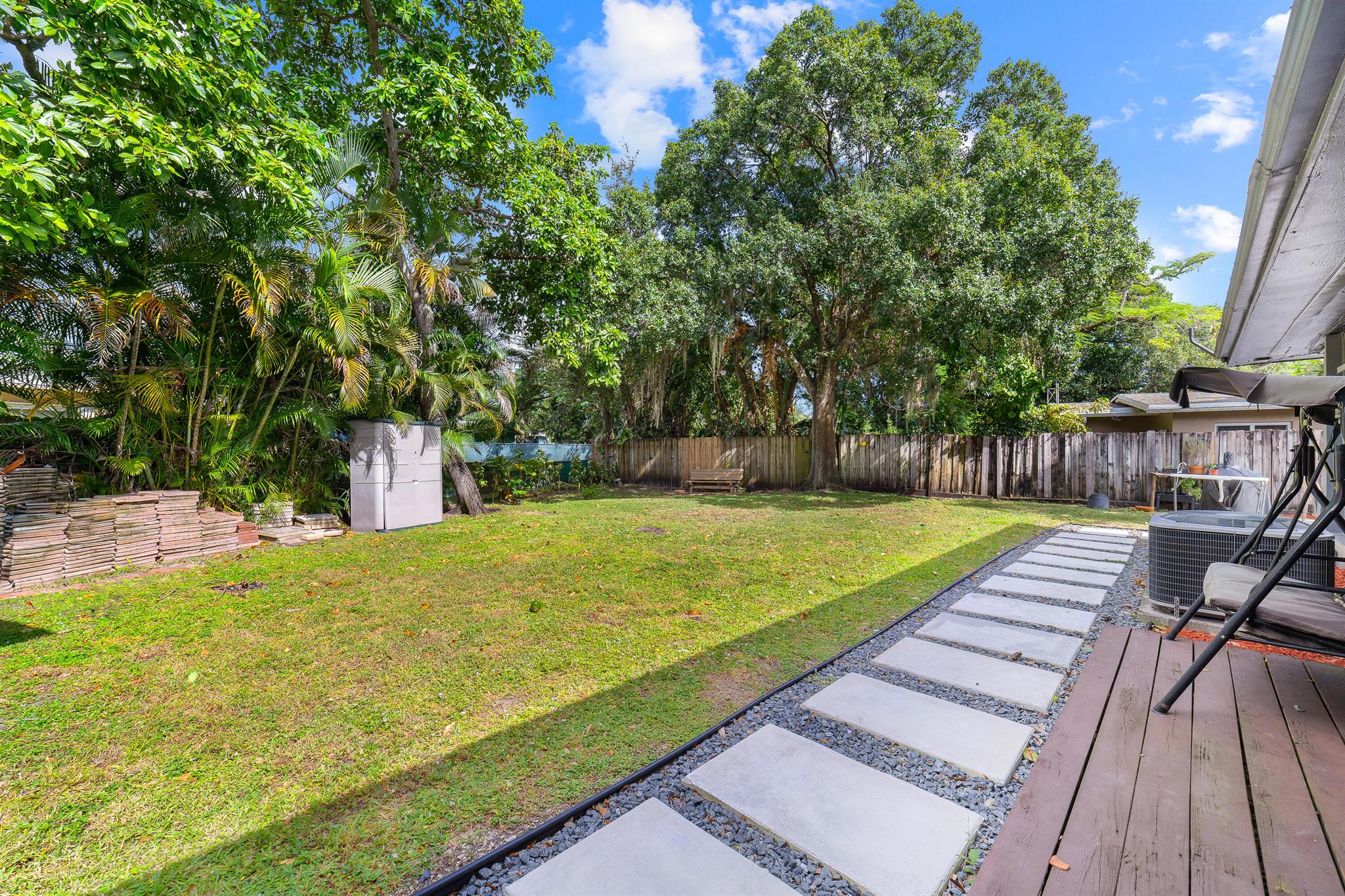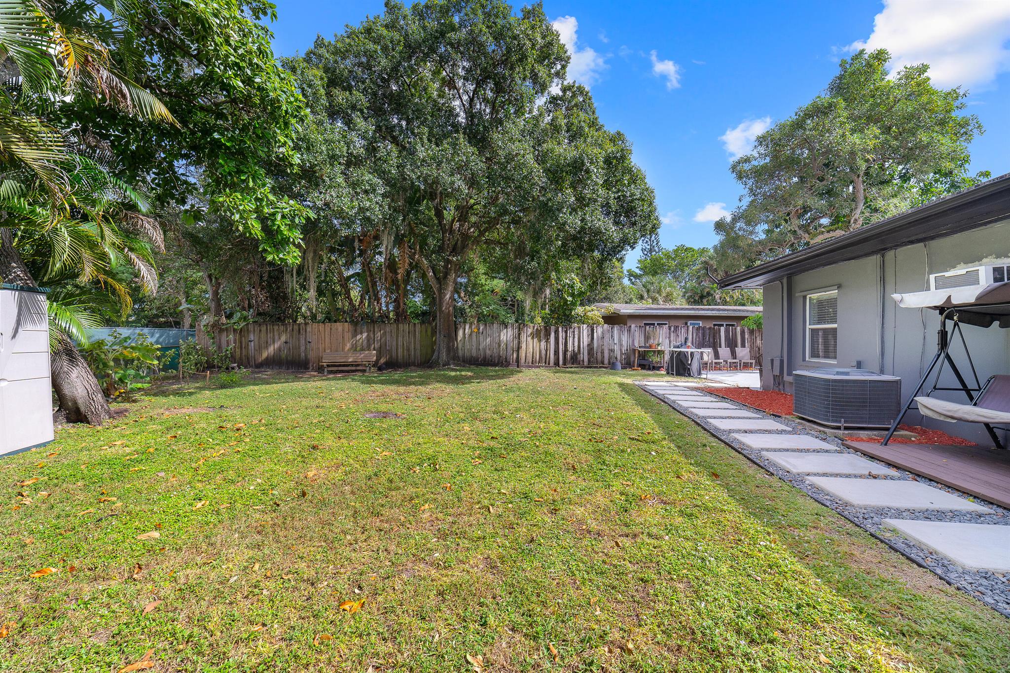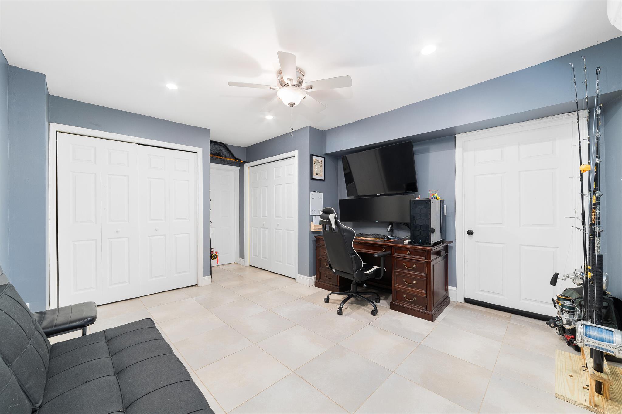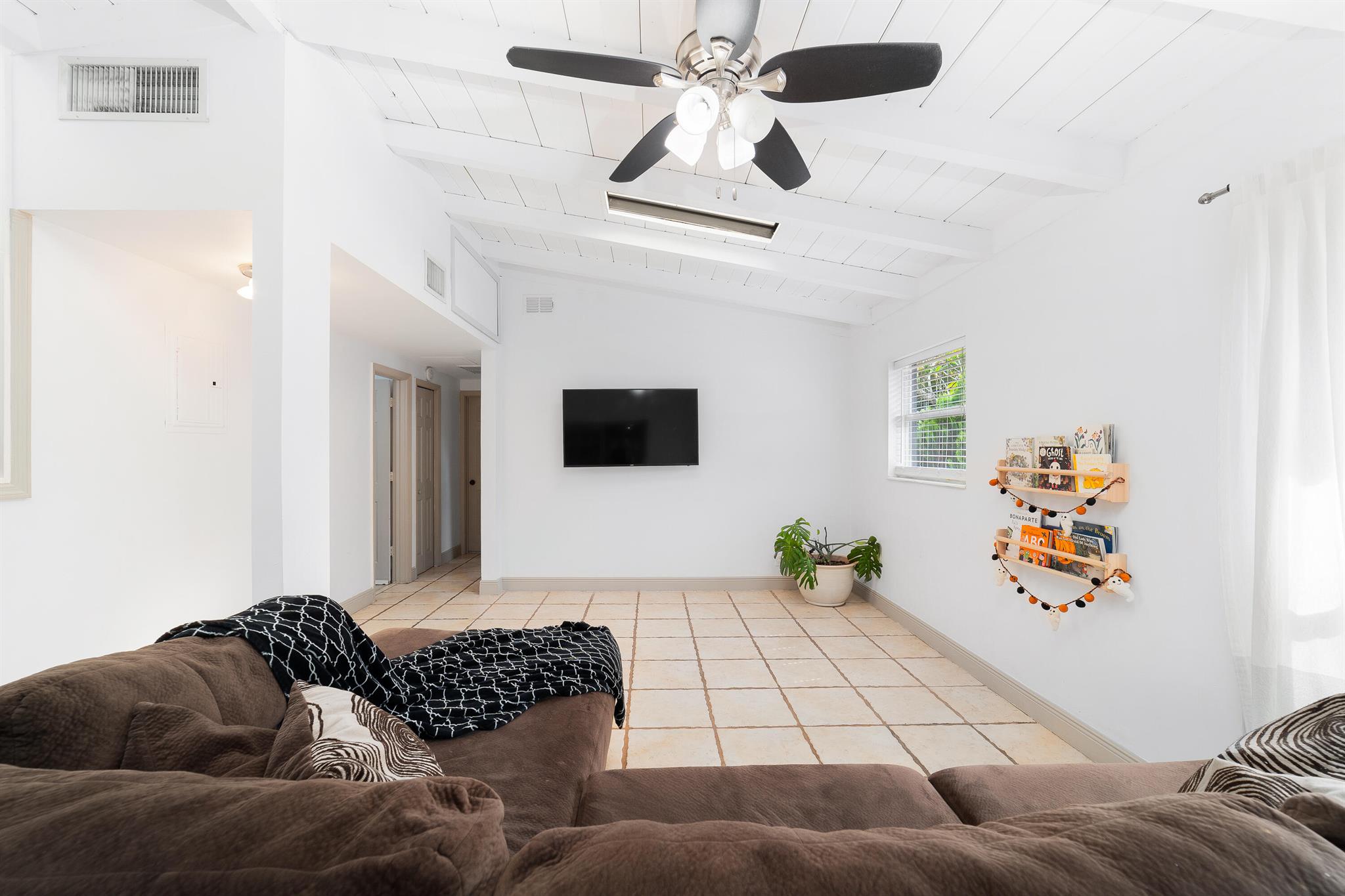 Welcome to your dream home in the desirable RIVERLAND area! This stunning 4-bedroom PLUS a den, 4-bathroom single-family residence boastsimpressive vaulted ceilings adorned with exposed wood beams, creating an inviting atmosphere. The beautiful kitchen features a large pantry and naturallight pours in through stylish skylight domes. Retreat to the spacious primary bedroom, complete with a walk-in closet and elegant wood floors. The propertyshowcases tile, wood, and terrazzo flooring throughout for easy maintenance. A versatile bonus room and one bedroom with a separate entrance offerendless possibilities. Enjoy outdoor living in the spacious fenced yard, plus the convenience of two large driveways. Don't miss this opportunity!
