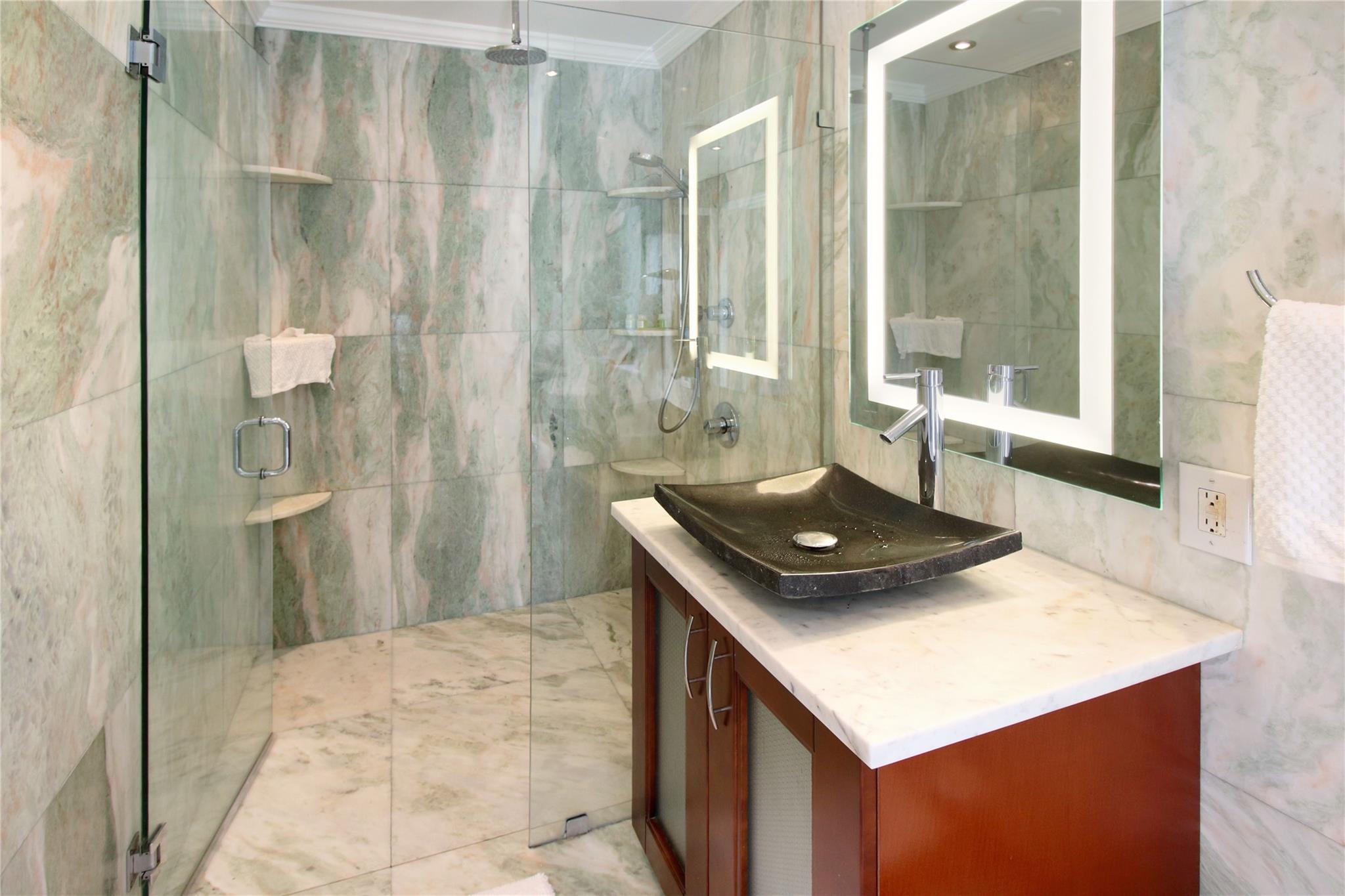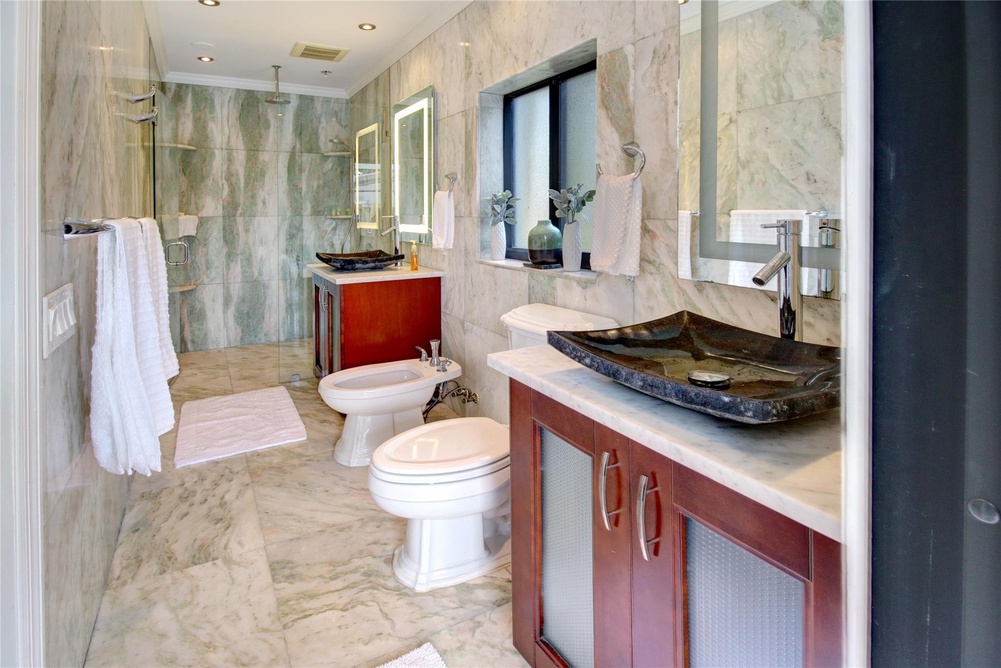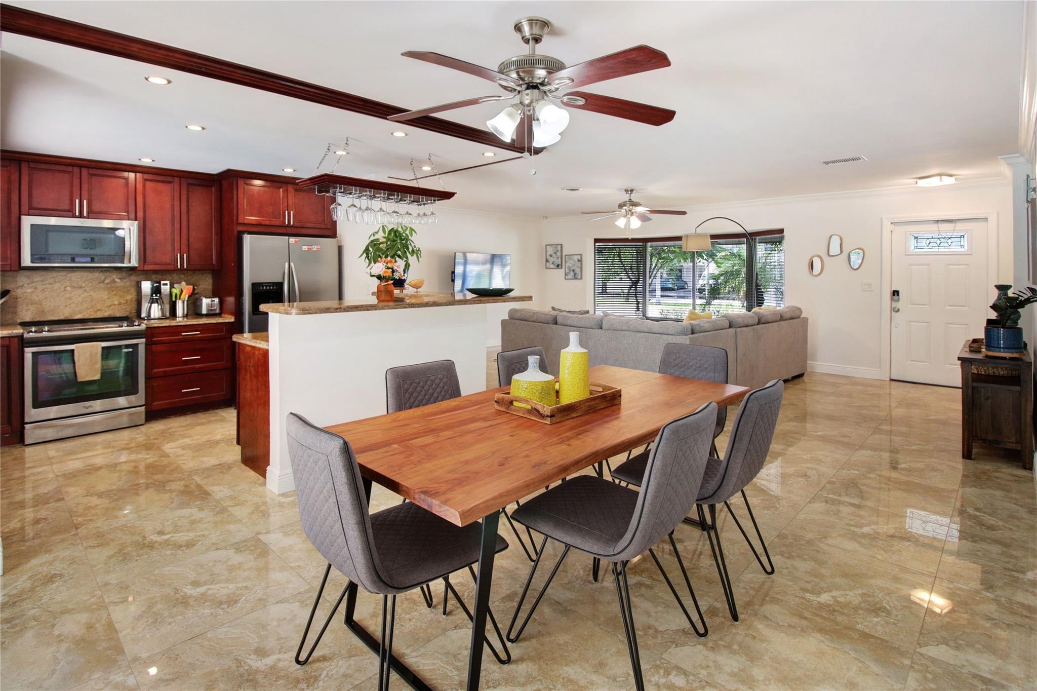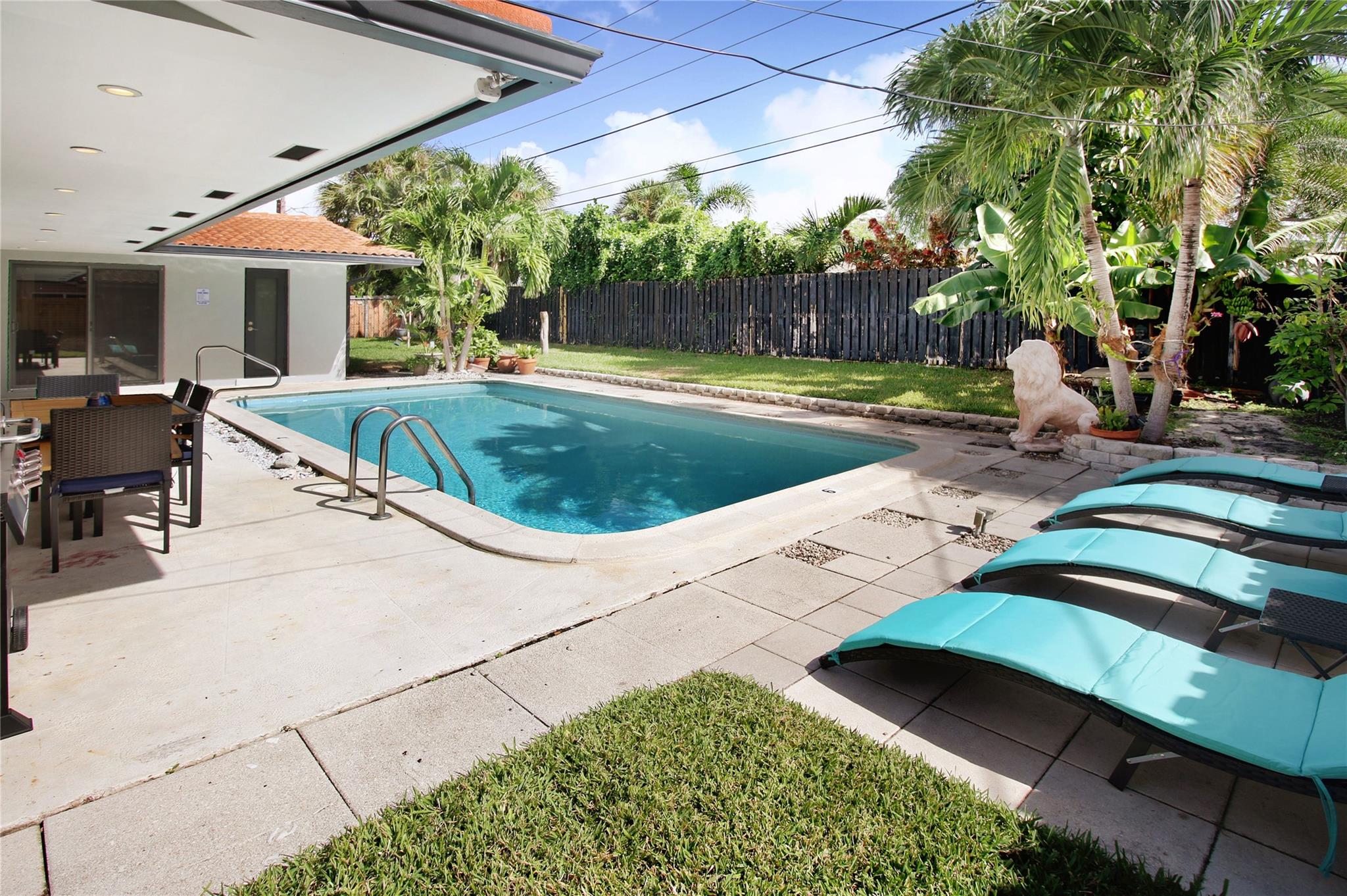 Luxurious 3BA/2BA POOL home, just 5 min from the BEACH in Coral Ridge. The elegant, open living room overlooks the pool. Great split floor plan ensures privacy for the master en-suite, w/ an enlarged walk-in closet. Marble floors in the living area & baths add a luxurious touch. Hurricane impact windows, durable tile roof, smoke alarms & hard-wired carbon monoxide detectors, double garage & a circular driveway w/ parking for 9 cars. The lush backyard provides privacy, fruit trees, outdoor dining, lounge, BBQ & shed. All short-term vacation rental licenses in place. Located just 5 min from the beach, restaurants & shops of Laud by the Sea, close to A+ schools such as Pine Crest, Westminster & Floranada Elementary. Zoned as a multifamily this home brings endless opportunity to its new owner.