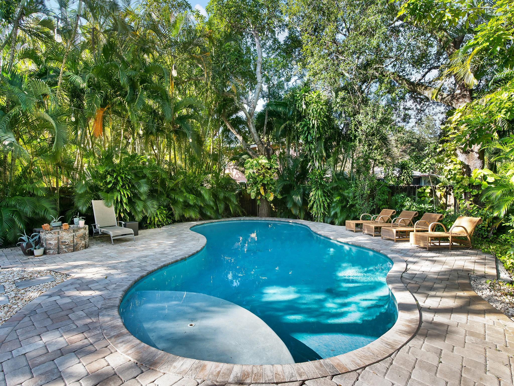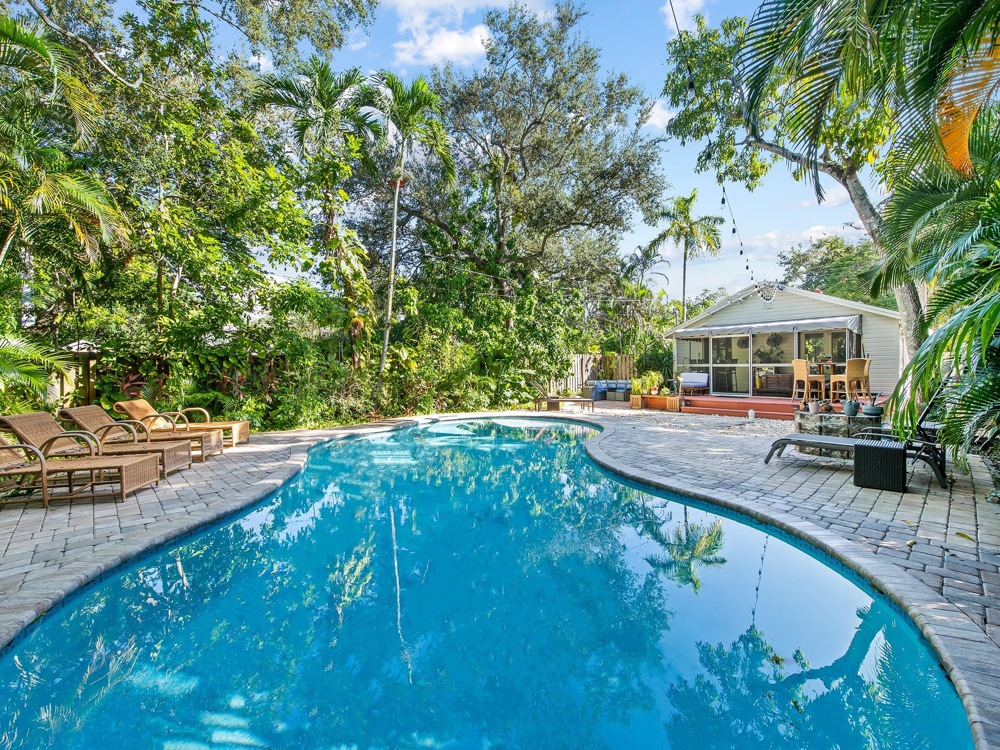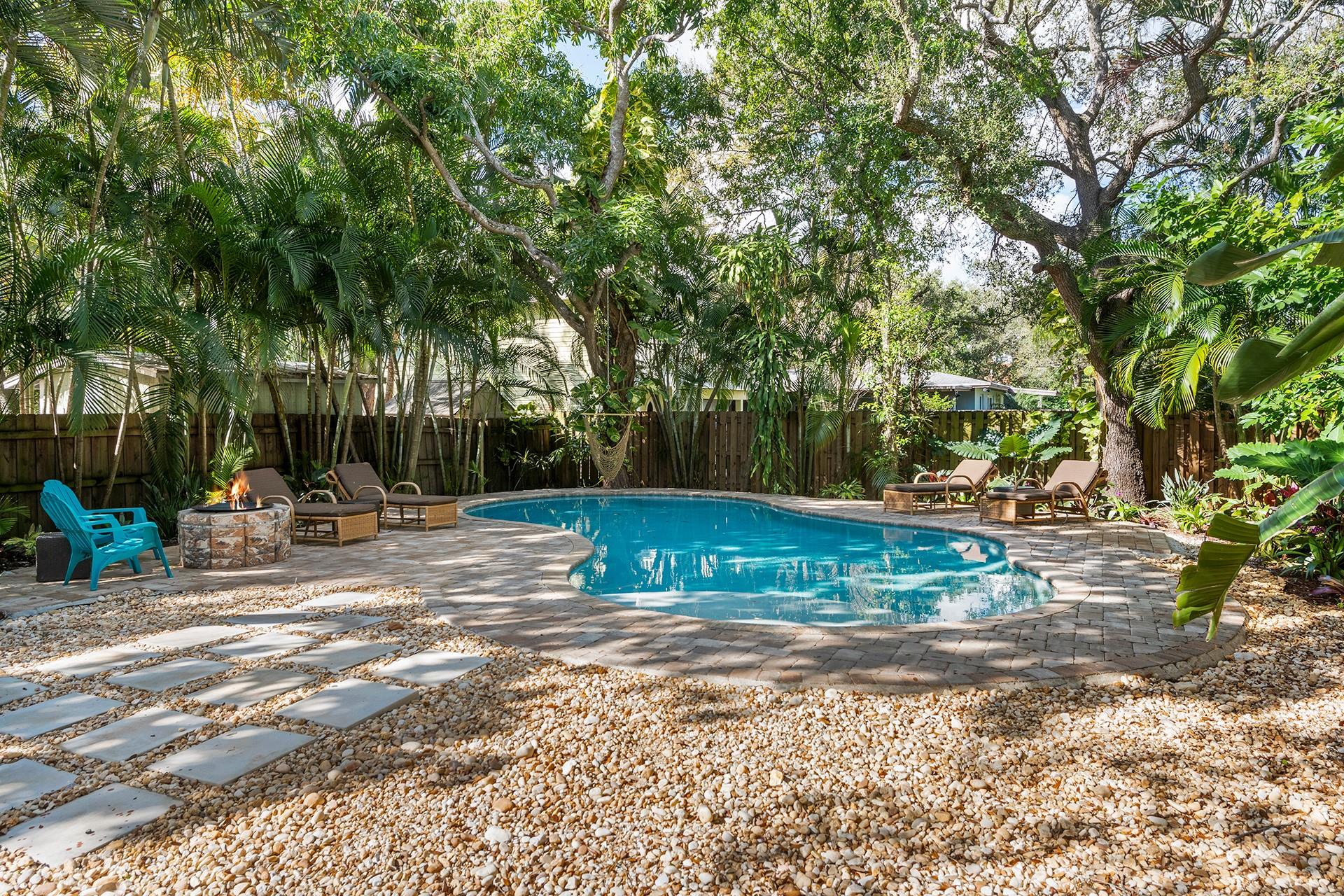 This classic Key West style home tucked away in the historic neighborhood of Sailboat Bend exudes character like no other. Sitting on a corner lot and featuring 2 bedrooms and 1 bath, an updated gourmet kitchen with granite countertops, gas range + island hood, hardwood and tile flooring and a living room space with vaulted tongue + groove ceilings. Perfect for entertaining and surrounded with lush lanscaping and pavers, this property includes a spacious backyard with a stunning free-form pool. Complete with impact windows and updated plumbing and electrical.