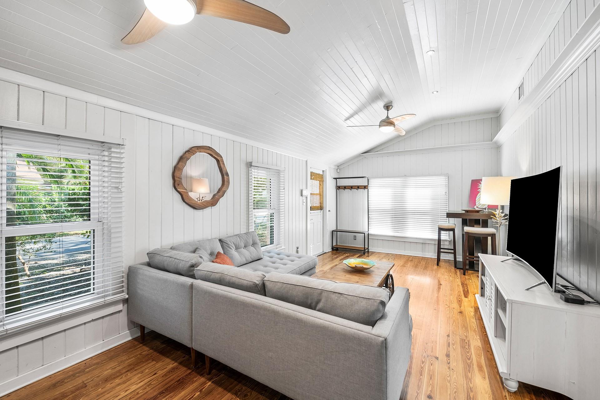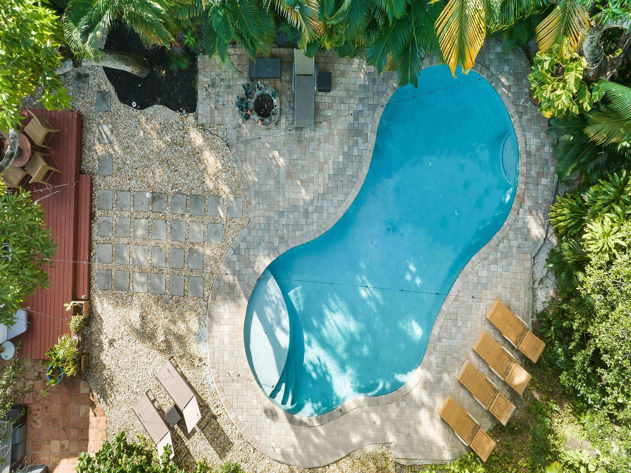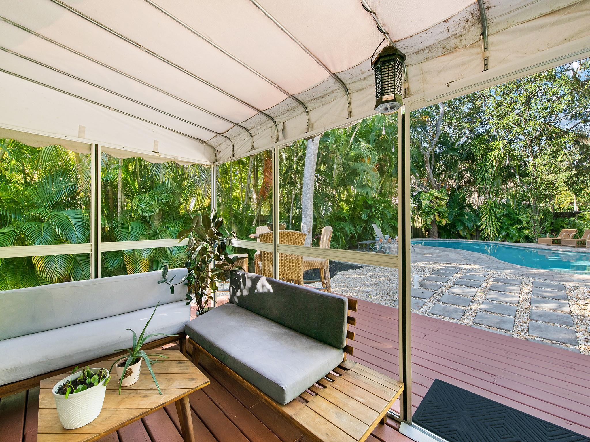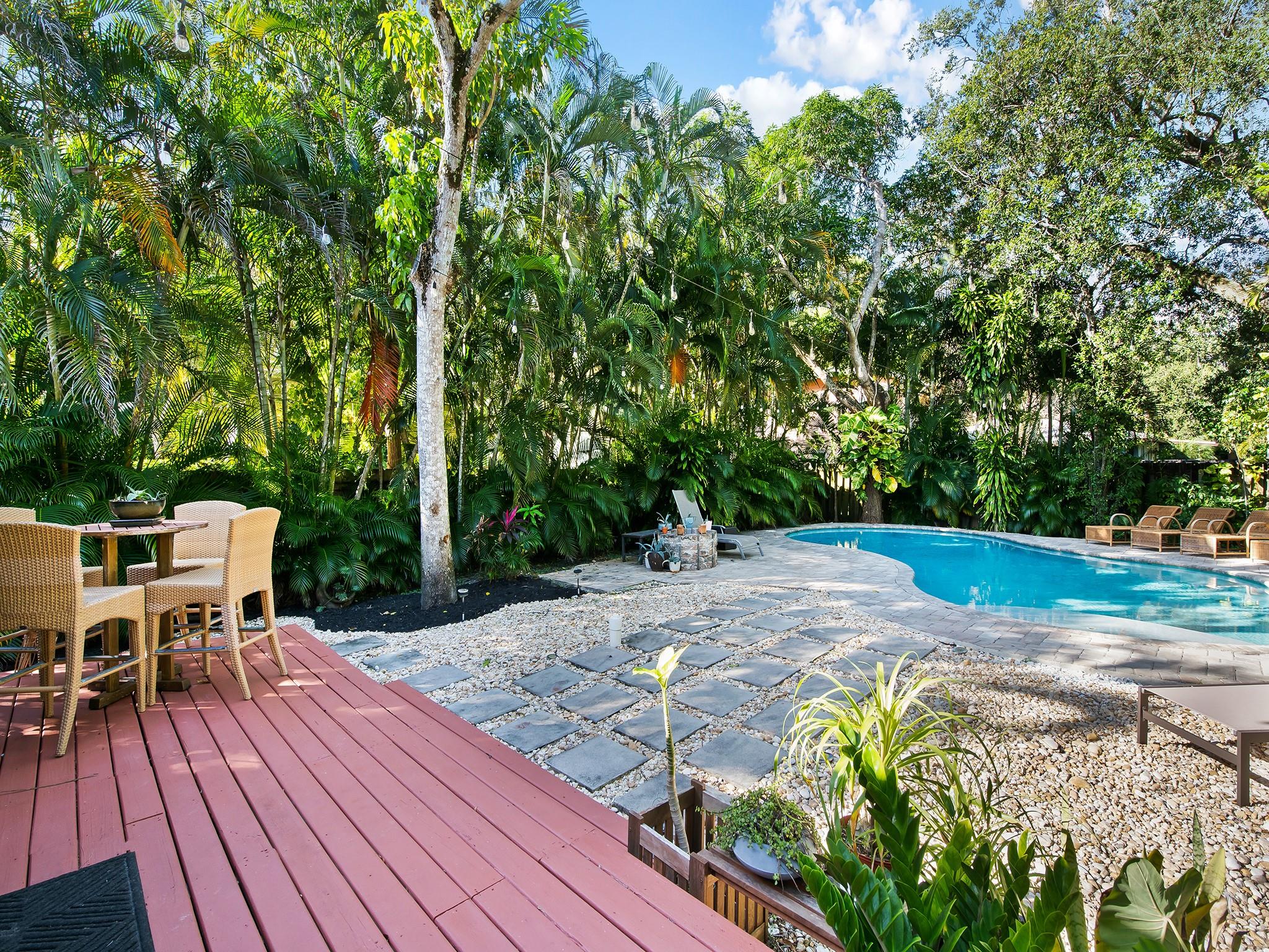 This classic Key West style home tucked away in the historic neighborhood of Sailboat Bend exudes character like no other. Sitting on a corner lot and featuring 2 bedrooms and 1 bath, an updated gourmet kitchen with granite countertops, gas range + island hood, hardwood and tile flooring and a living room space with vaulted tongue + groove ceilings. Perfect for entertaining and surrounded with lush lanscaping and pavers, this property includes a spacious backyard with a stunning free-form pool. Complete with impact windows and updated plumbing and electrical.