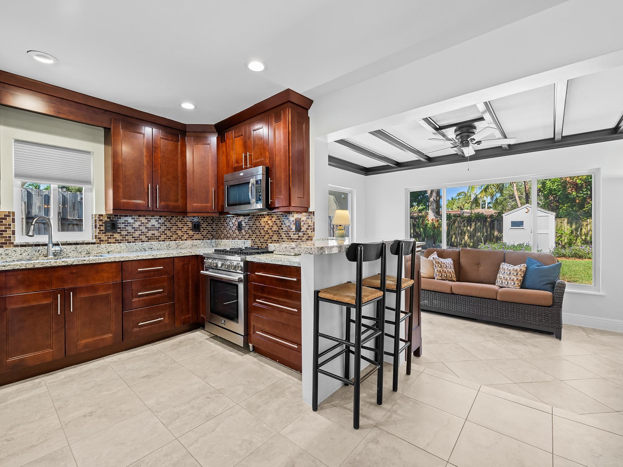 Perfectly located just outside of Downtown Fort Lauderdale near major highways, Las Olas Blvd, the beach, and the airport, offering the best of Fort Lauderdale living. A great opportunity to own in a prime location and has NO HOA! This recently renovated 2 bedroom, 1 bathroom, 1160 sq ft single-family home sits on a large yard with room for a pool and features a detached workshop for extra storage or projects. Enter into an open concept layout featuring tile flooring throughout, a fully renovated kitchen with stainless steel appliances including a gas range. The home is complete with impact windows and doors throughout.