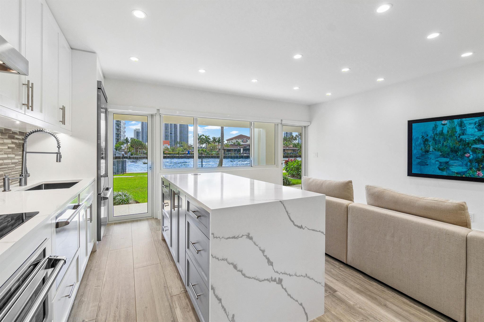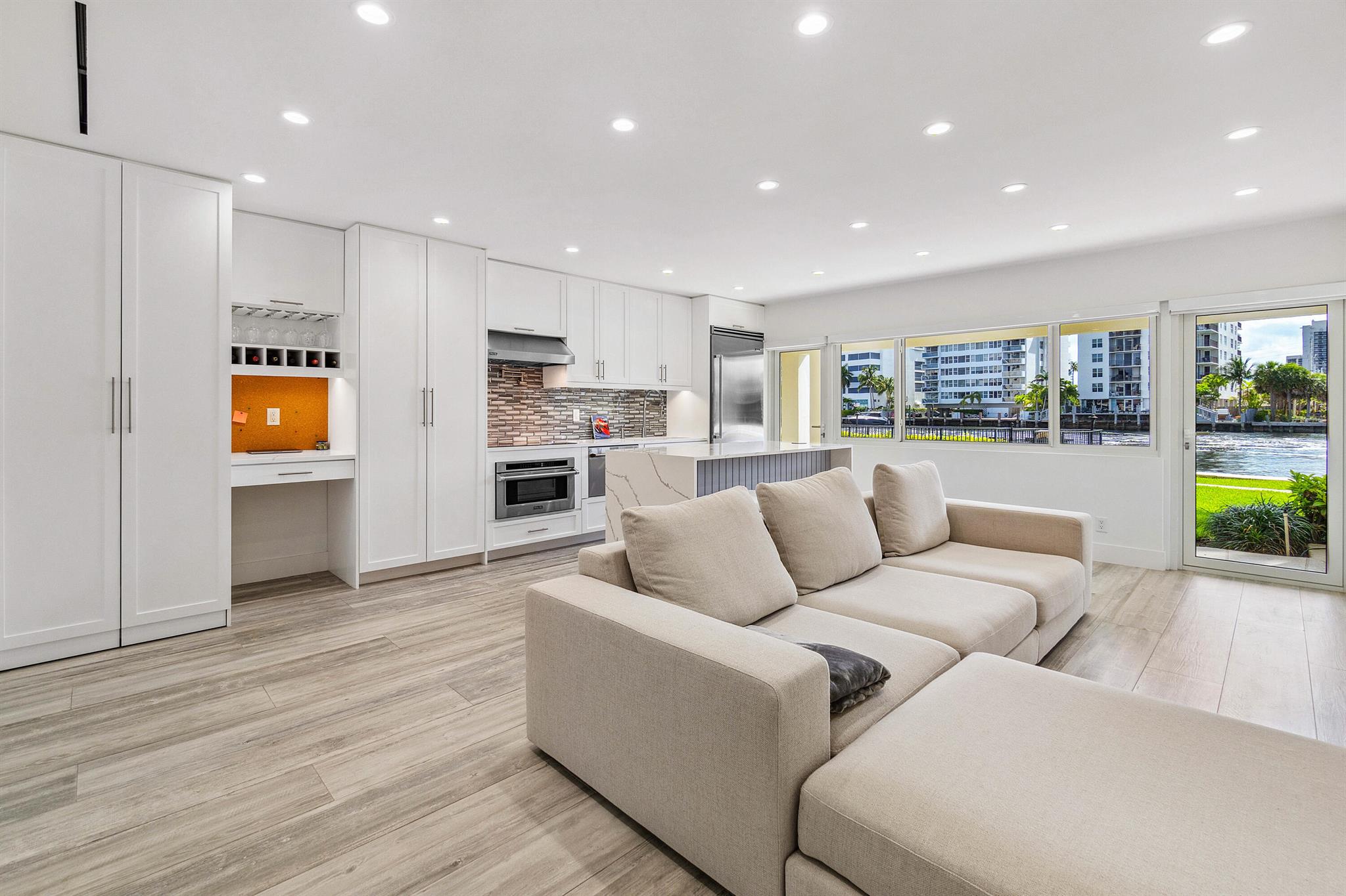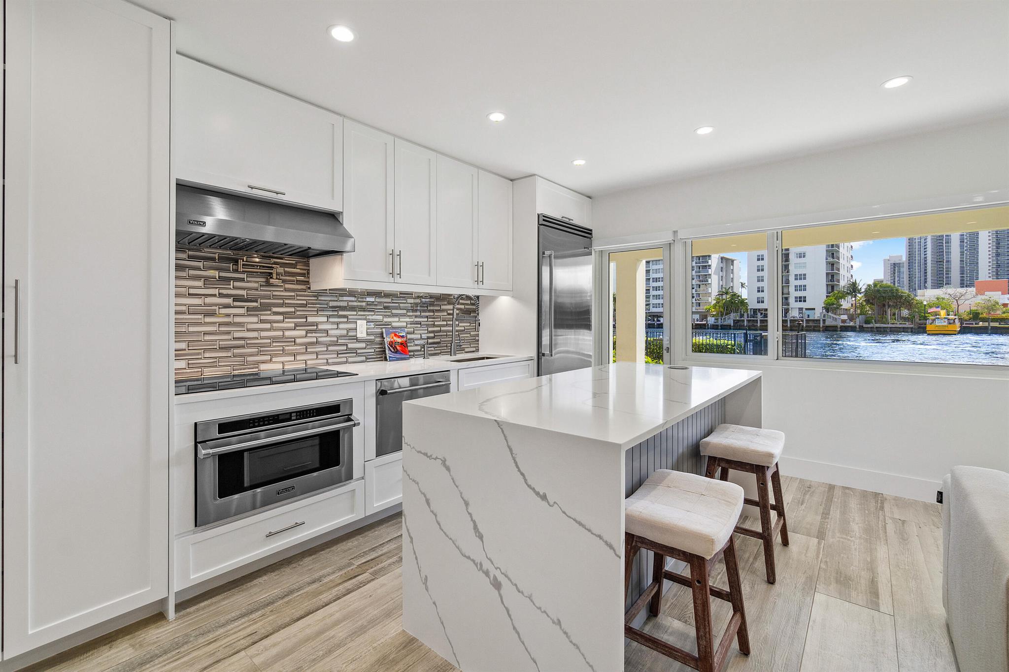 Every day is a boat parade in this stunning turn-key direct Intracoastal waterfront condo that epitomizes Florida coastal living at its finest. This pristine first floor unit is located in a boutique 3-story building and features your very own 49 foot deepwater boat dock with water & electric service in a calm no-wake zone with no fixed bridges (boat slip can accommodate yachts & Catamarans up to 49 feet with up to a 34 foot beam). The entire condo was gutted down to the concrete and underwent a jaw-dropping remodel with permits to create a luxury residence. Brand new framing, custom cabinets, insulation, mold & water resistant drywall, plumbing, electrical, HVAC ductwork Flower supply and return vents, Trane AC unit, high-tech Toto smart toilet, automated LED lighting and locks,