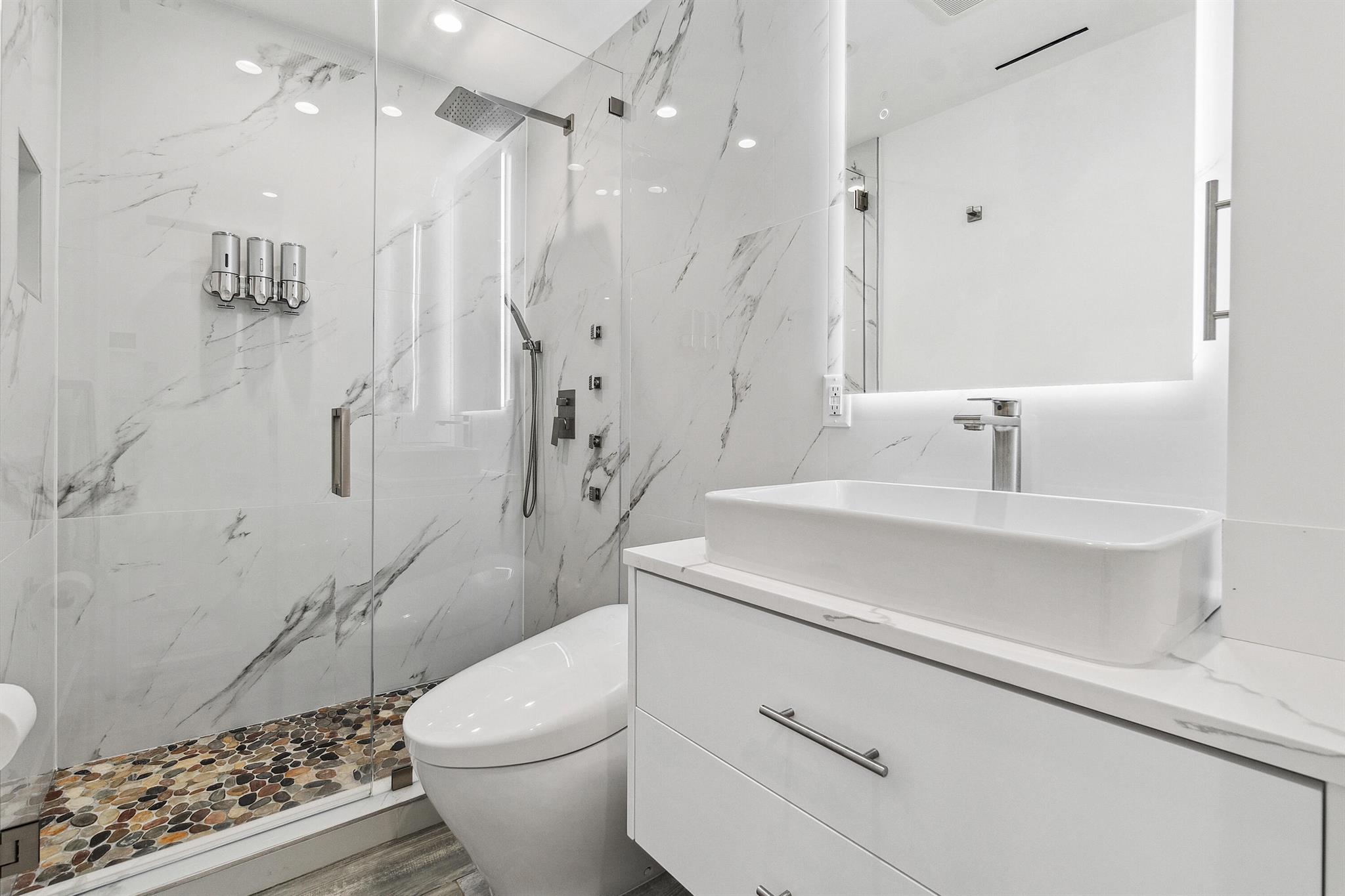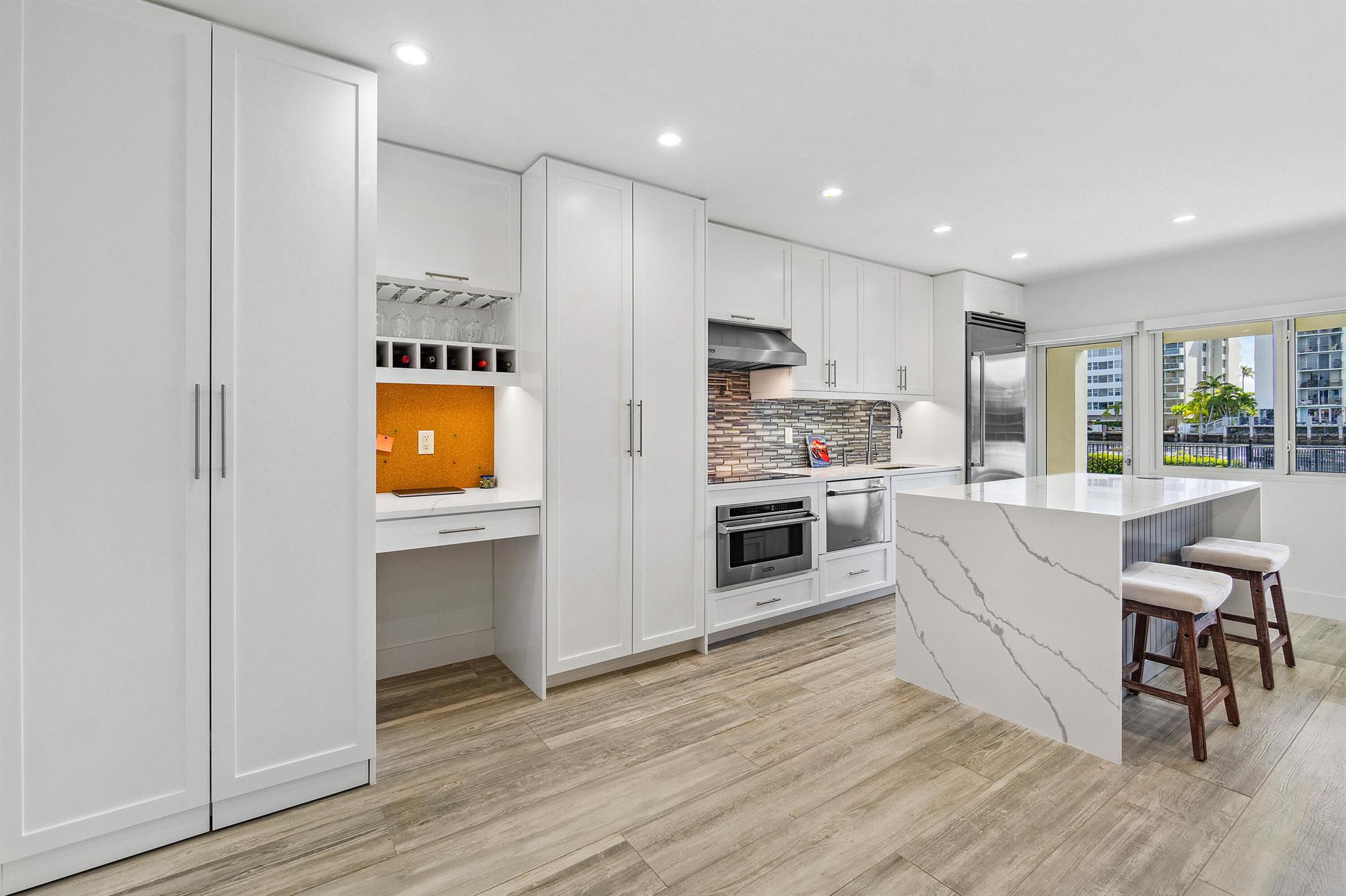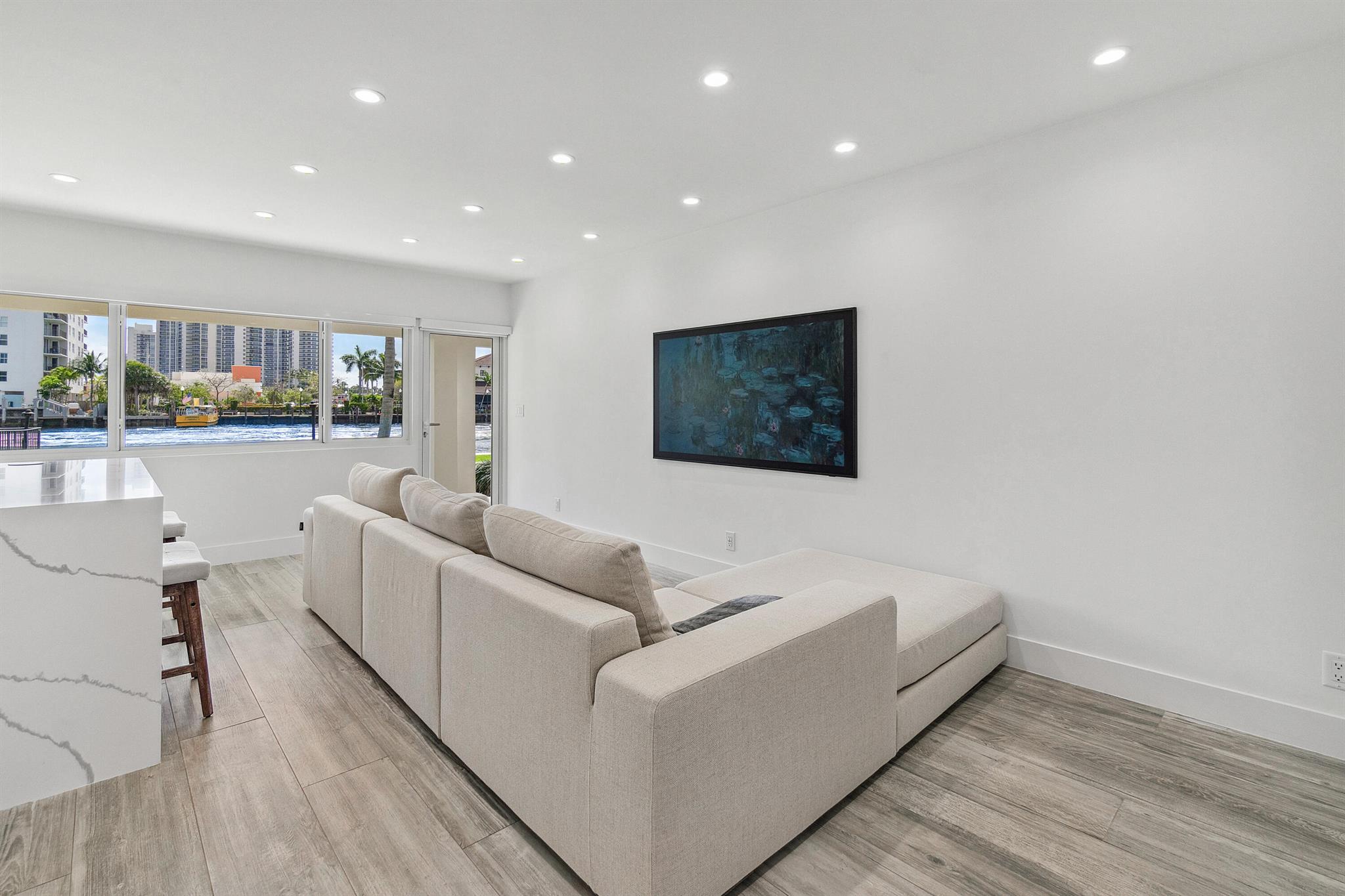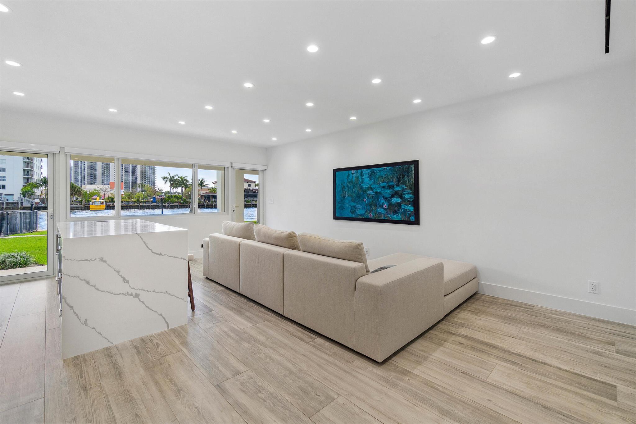 Every day is a boat parade in this stunning turn-key direct Intracoastal waterfront condo that epitomizes Florida coastal living at its finest. This pristine first floor unit is located in a boutique 3-story building and features your very own 49 foot deepwater boat dock with water & electric service in a calm no-wake zone with no fixed bridges (boat slip can accommodate yachts & Catamarans up to 49 feet with up to a 34 foot beam). The entire condo was gutted down to the concrete and underwent a jaw-dropping remodel with permits to create a luxury residence. Brand new framing, custom cabinets, insulation, mold & water resistant drywall, plumbing, electrical, HVAC ductwork Flower supply and return vents, Trane AC unit, high-tech Toto smart toilet, automated LED lighting and locks,