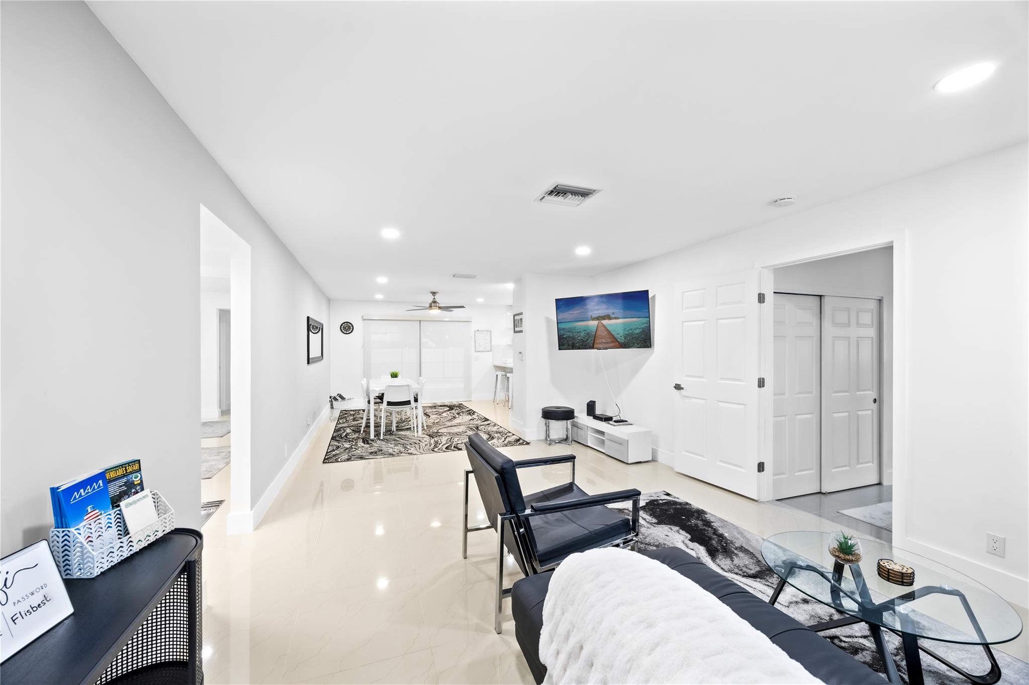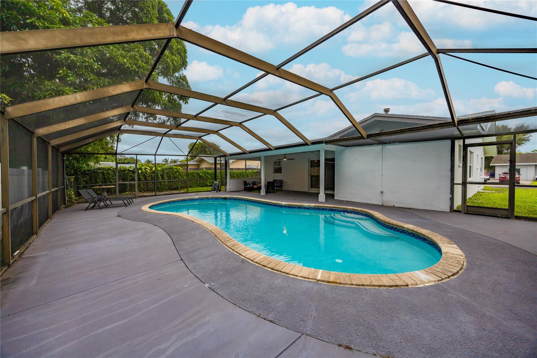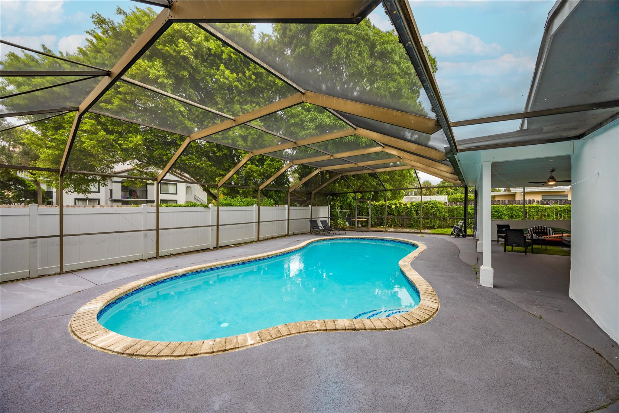 Come to see this gorgeous, fully remodeled, beautifully furnished 3 bedroom, 2 bath home-MOVE IN READY. Beautiful screened-in pool, open floor plan perfect for entertaining, featuring modern kitchen with custom cabinetry, quartz countertops, and brand new appliances. The home offers porcelain floors throughout, LED recessed lighting, and smart touch keyless door lock for added convenience. This home has been tastefully renovated, and includes impact windows and doors, large laundry room, a recently installed roof and new AC system. Located in a nice, quiet neighborhood, minutes away from major highways, shopping, and restaurants. No HOA! Sold fully furnished and can be used as a primary residence or airbnb. Excellent investment! WILL NOT LAST.