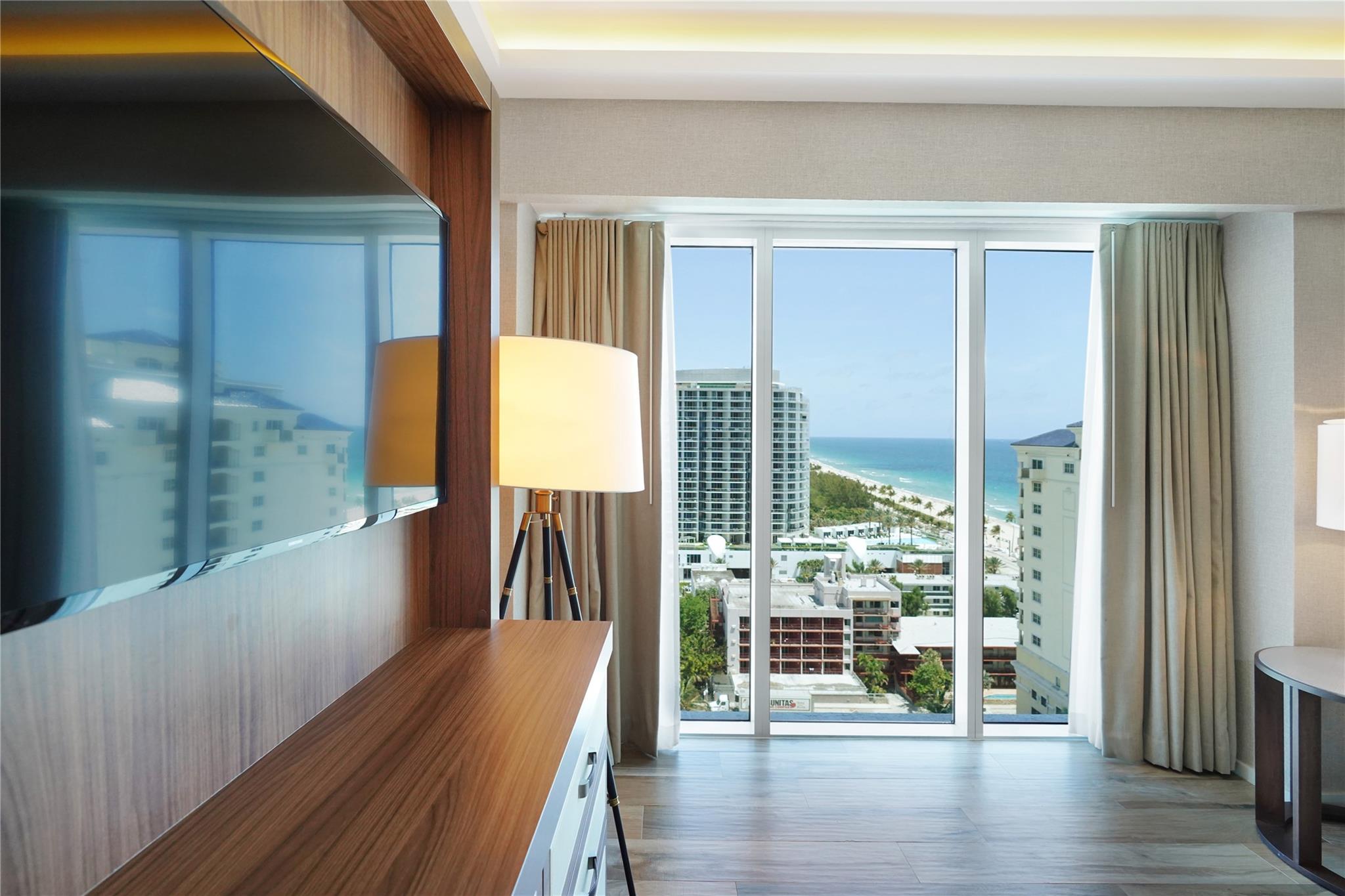 NEWLEY RELEASED DEVELOPER INVENTORY. Experience luxury living directly on Fort Lauderdale Beach in this fully furnished 1Bed/1.5 Bath turnkey unit designed by Steven G. & Professionally Managed by the Hotel. Located on the condo-hotel level, with Ocean & Intracoastal Views, this property makes the perfect vacation home/investment. Enjoy the Benefits of Resort Style Living including Gym, Full Service Spa, Pool, Beach Chair,Towel Service & Umbrella, Bike Rentals, Basic Cable & Internet, 24/7 Valet Service, Daily Housekeeping, twice weekly Laundry Service, Room Service, Private Airport Service, Water, Wi-Fi & Basic Cable all included. Walking distance to Fine Restaurants, Shopping and Entertainment. Just Minutes to Ft. Lauderdale Airport, Between Miami and Palm Beach.