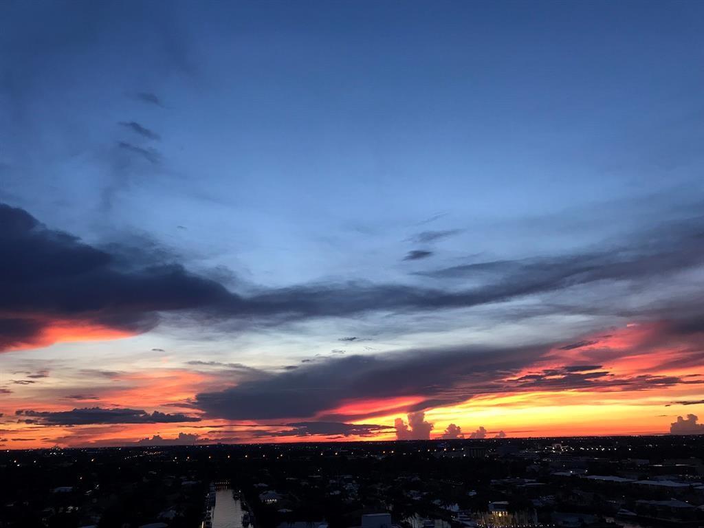 Phenomenal views with panoramic NE and NW exposure within this spacious 2 Bedroom 2 Bath high rise within minutes of the beach. Enjoy every waking moment watching the morning sunrise and total serenity of the sensational sunsets. Open and airy, light and bright. Stylish and sleek condo that has been renovated in calm soothing earth tones. All floor to ceiling hurricane impact windows and doors. Building maintenance is inclusive of high speed internet, cable with a vast amount of quality channels, insurance, water and amenities. Covered parking. Will entertain owner Financing. Neighborhood Publix being built just minutes away. Close to great restaurants, entertainment, airport, highways and port. Unit has been virtually staged.