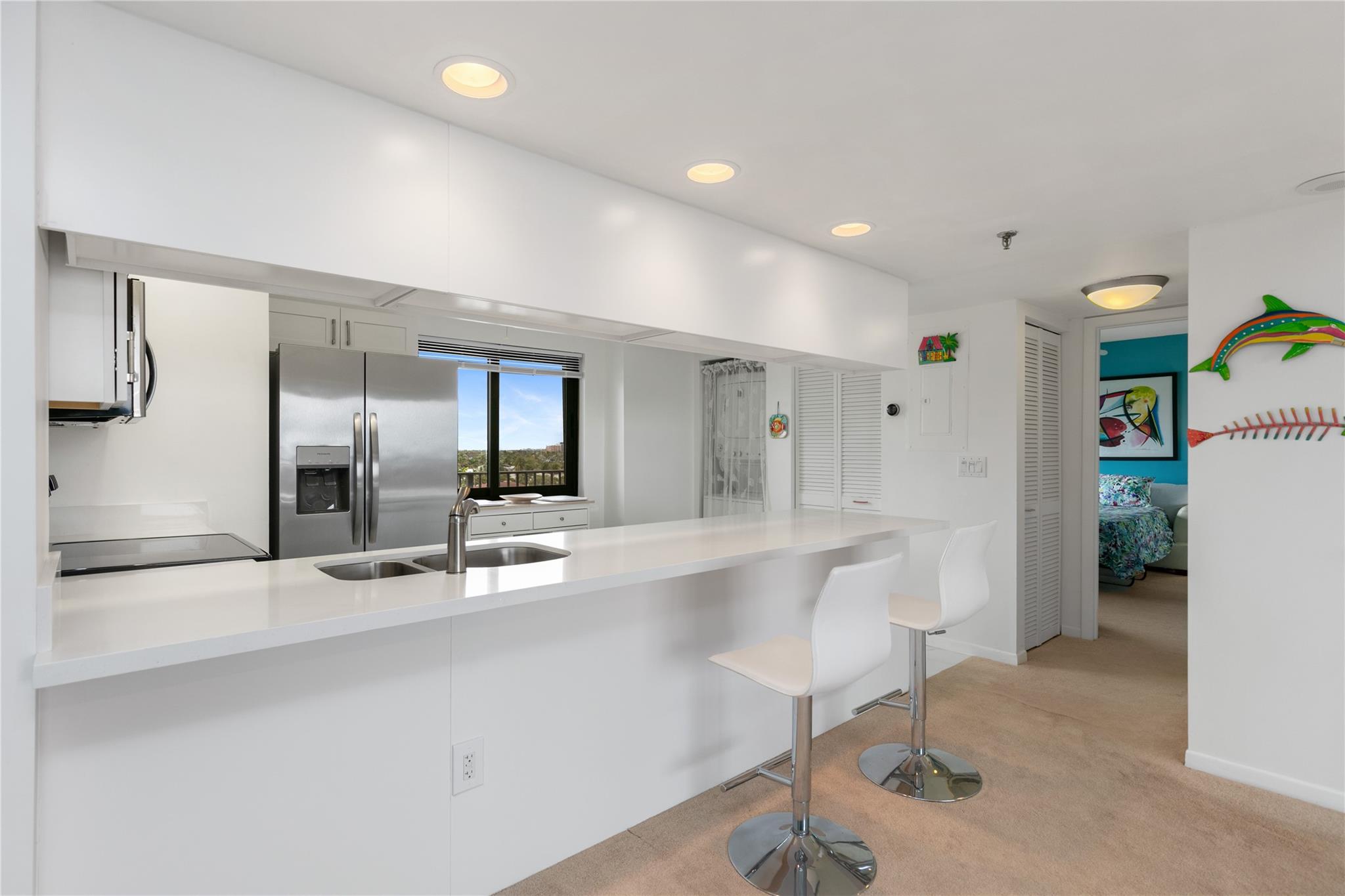 Just a block from the beach! This Boutique Condo with direct Ocean views has spacious rooms flooded with natural light, creating a serene atmosphere. Imagine waking up to the views of the Ocean and the Intracoastal from your two en suites. The brand new remodeled kitchen is perfect for entertaining with the open floor plan that blends style & comfort. Feel the refreshing sea breezes flow through as you relax in your pet-friendly haven. With garage parking & a washer/dryer in your unit, convenience & safety is at your fingertips. Whether you’re strolling along the sandy beaches just a block away or visiting the new Publix & vibrant culinary scene, you’re in the perfect location to all that coastal living has to offer. 40 year restoration done! Motivated seller! Make an offer!