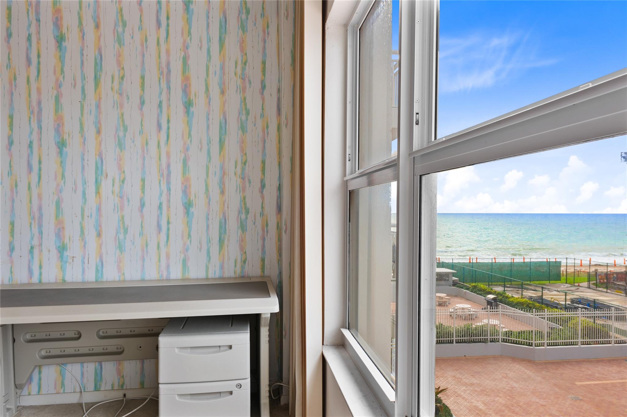 PRICE CORRECTION. Welcome to your beachfront getaway! This spacious south side 2-bedroom, 2-bathroom condo offers incredible potential and is just steps from the stunning shoreline. With impact windows and doors, you can enjoy peace of mind while soaking in the coastal vibes. The large living space features a generous walk-in closet, providing ample storage for all your beach essentials. Convenience is key with an in-unit washer and dryer, making laundry a breeze. Plus, you'll benefit from a deeded parking space valued at $65,000—a rare find! While the condo does require some TLC, the prime location places you near shops, restaurants, and all the amenities you need for a vibrant lifestyle. Don’t miss this opportunity to embrace the beach lifestyle and turn this space into your dream home!