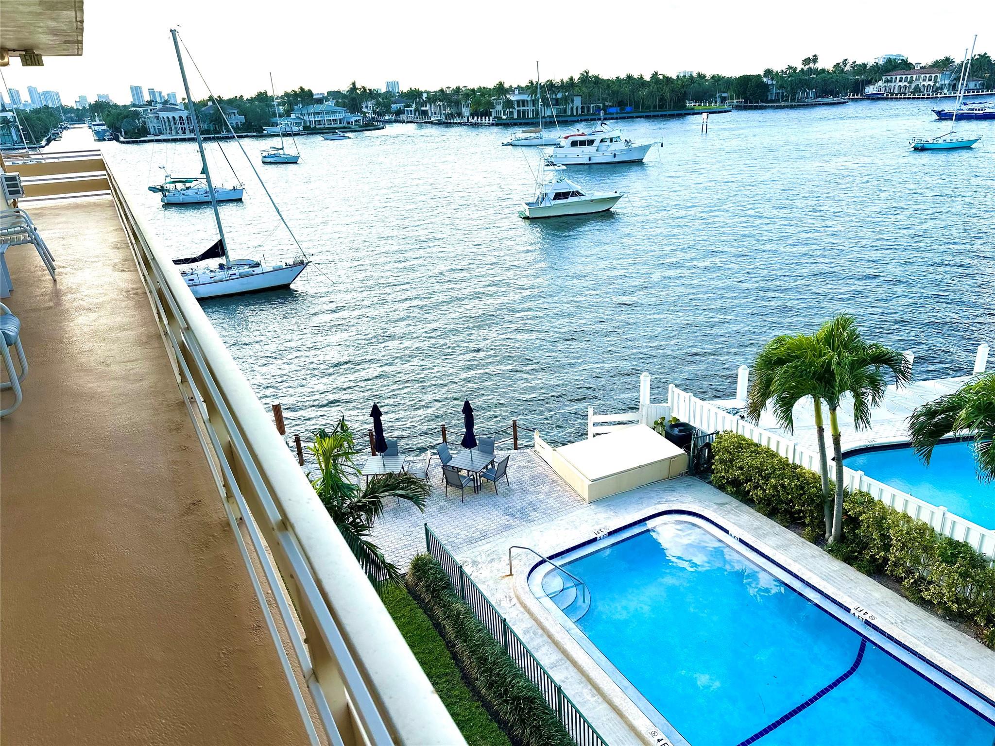 Spectacular views of the Intracoastal Waterways, pool and the daily boat parade and evening sunsets. Located in one of the most beautiful areas in Fort Lauderdale with water views that make you fall in love with it. Peaceful common areas perfect for gathering with family and friends. This unit is one bedroom one bathroom and a spacious dining and living areas blessed by all the light that comes from its windows facing the pool and the Intracoastal. Easy walk to the beach, shops, restaurants, Las Olas and more... Immaculately maintained and ready to enjoy it. All assessments are paid and all furnishings are included in the sale. Turnkey! A must see and very easy to show!