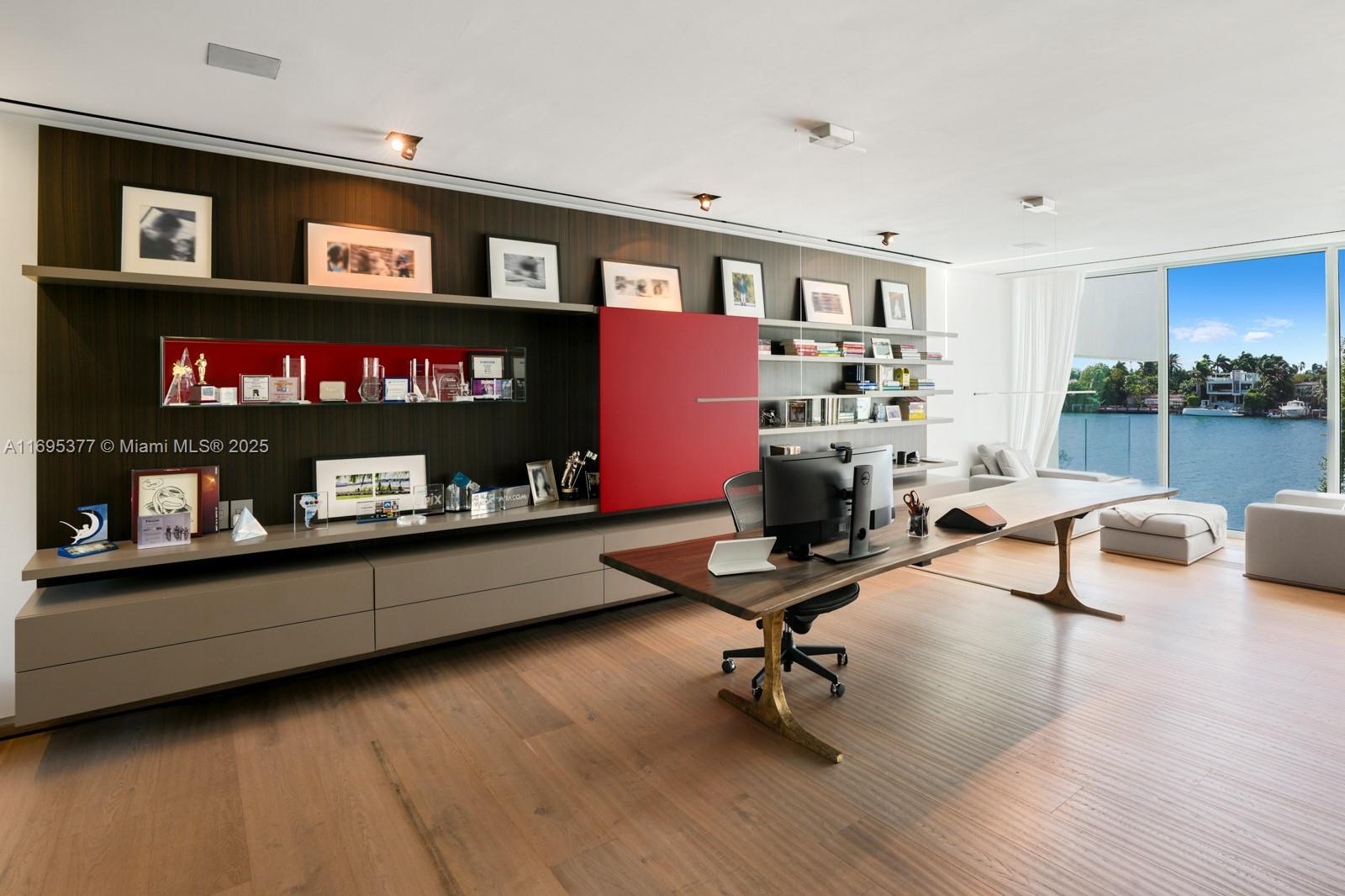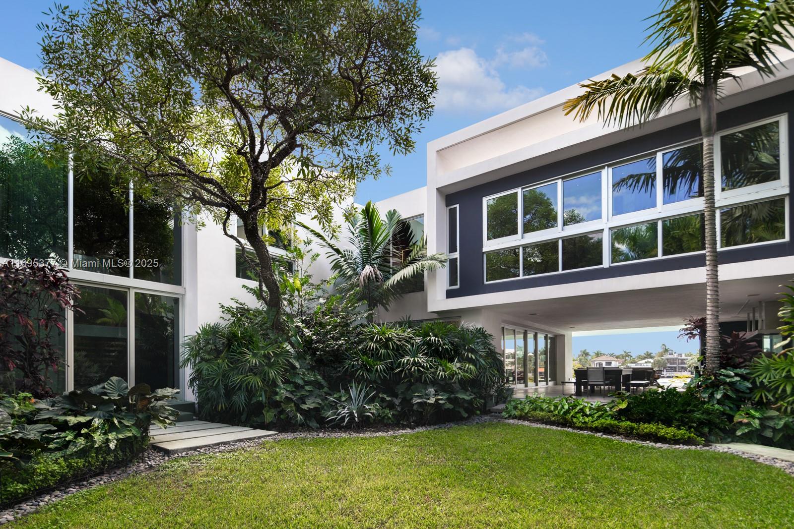 Welcome to this contemporary marvel on prestigious guard-gated Hibiscus Island, designed by architect Reinaldo Borges & famed landscape artist Raymond Jungles! Perfectly positioned on a 1/2 acre double lot w/122' of prime WF & breathtaking skyline views, this estate truly blurs the line of indoor/outdoor living. Soaring ceilings & a masterfully curated floorplan showcase 5 grand bedrooms, 5.5 baths, & exquisite entertaining spaces throughout. The gourmet kitchen, equipped w/high-end appliances, flows seamlessly into the elegant dining area. The lavish primary suite features dual bathrooms & closets, ensuite office, & private terrace w/sweeping views. Unrivaled amenities include Crestron home system, elevator, sauna, Bowers/Wilkins cinema, rooftop terrace, whole home generator & more!