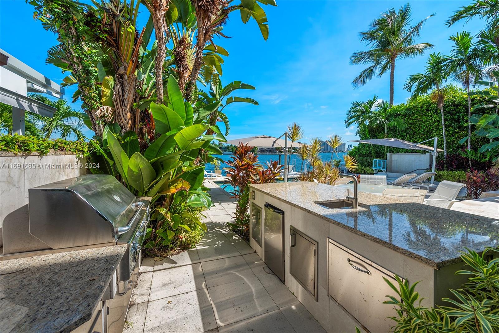 Imagine waking up to expansive bay views from your double-height living room in the exclusive, gated community of Hibiscus Island. This sprawling 6,124-square-foot, 5-bedroom residence offers a seamless blend of luxury and leisure, from sunny poolside mornings to festive evenings by the summer kitchen--ideal for entertaining. Visualize a private fireworks display over the bay or a sunset sail from your 70-foot yacht dock. Marble floors add sophistication, while the new gourmet kitchen features high-end Poggenpohl cabinetry and Miele appliances. With a media room, adjoining gym, and 6-car circular driveway, plus 60-foot Royal Palms and 14-foot privacy hedges, this island retreat offers endless possibilities to call your own.