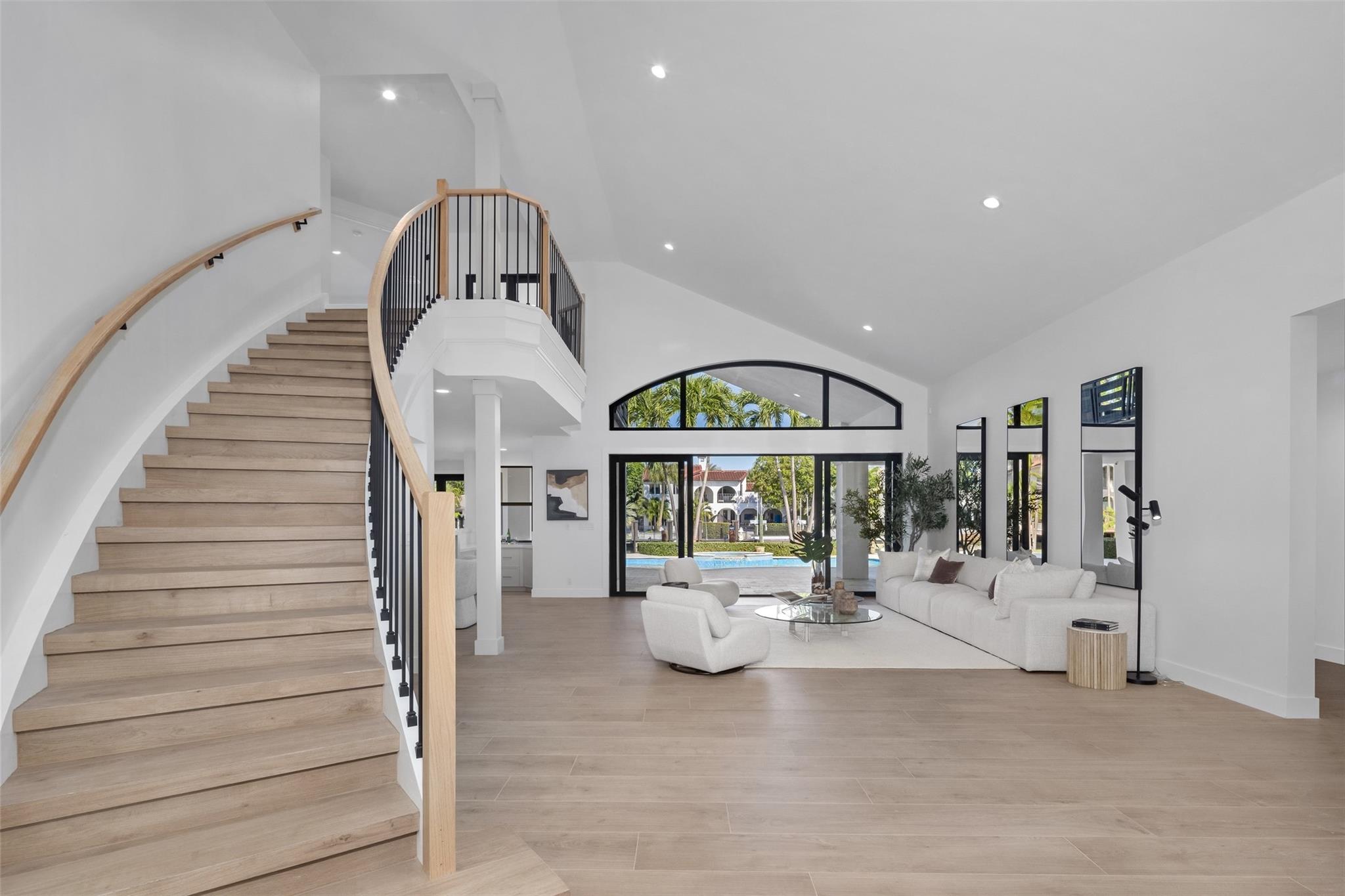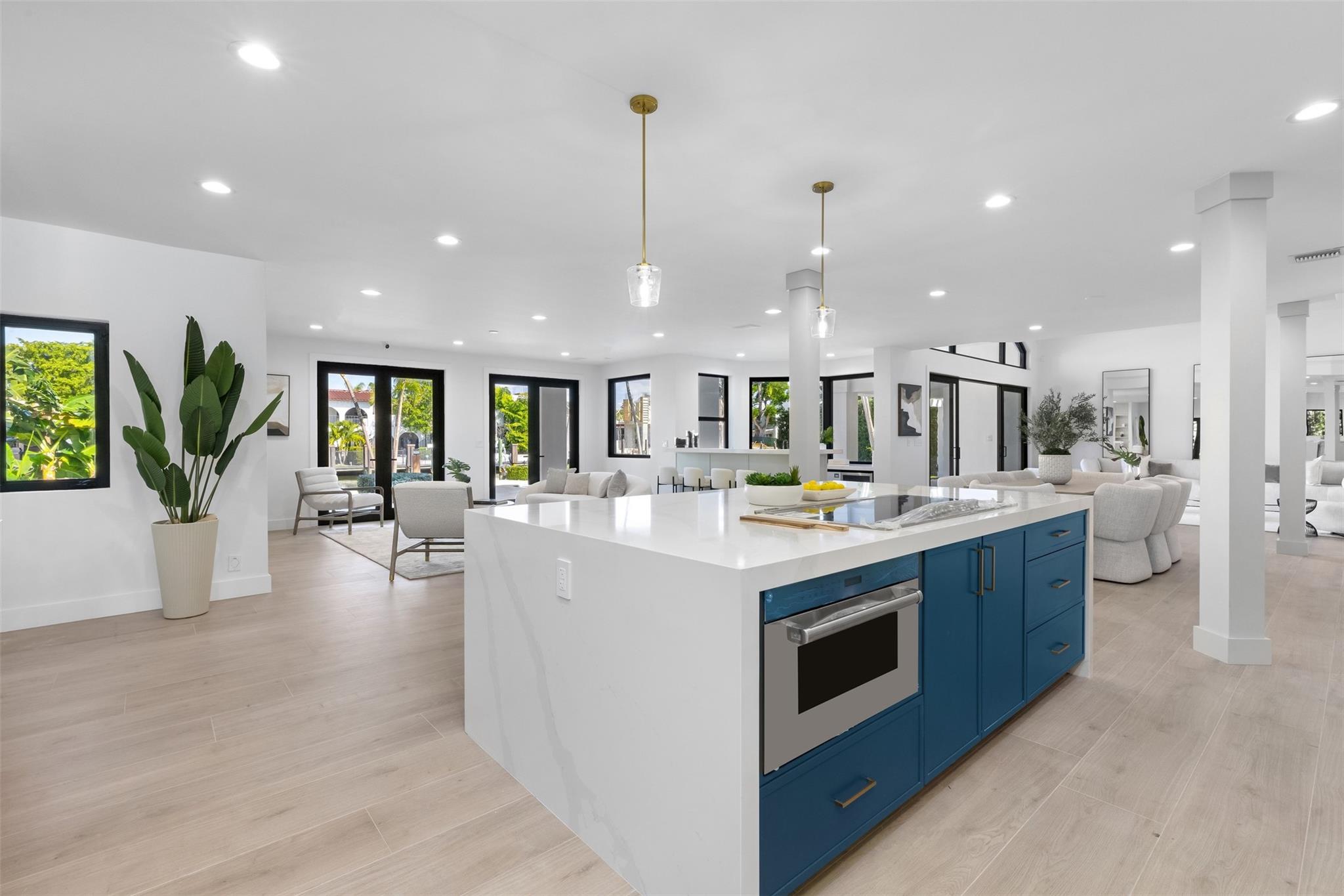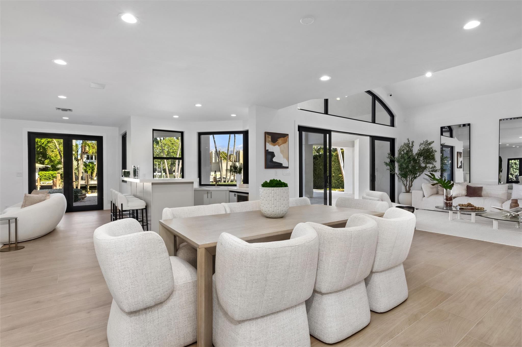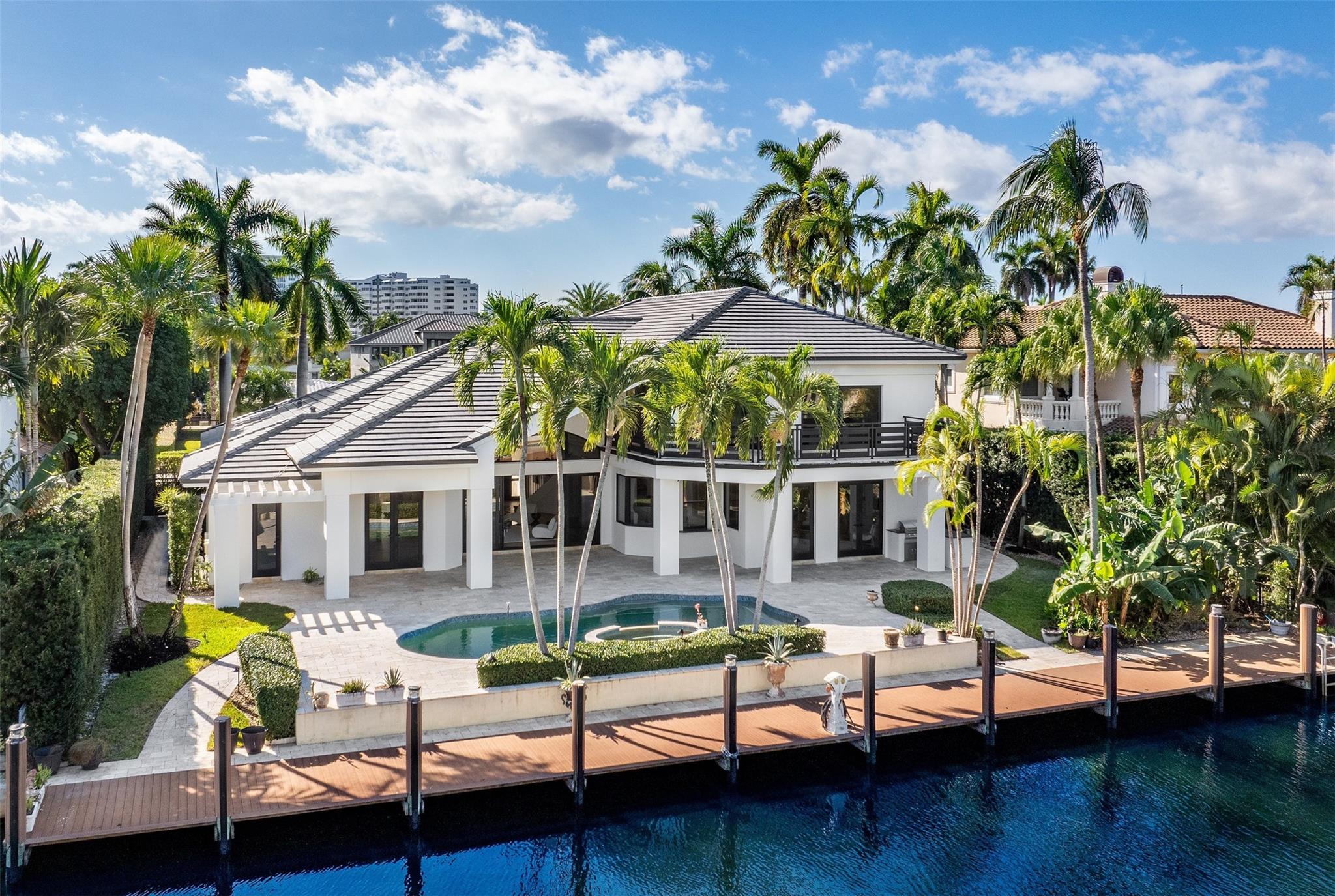 Lavishly remodeled waterfront estate in the prestigious and privately patrolled Seven Isles community. Offering 100 feet of frontage on a deep water canal. Conveniently located in close proximity to the inlet for prompt ocean access. Plenty of open floor space with volume ceilings perfect for entertaining.