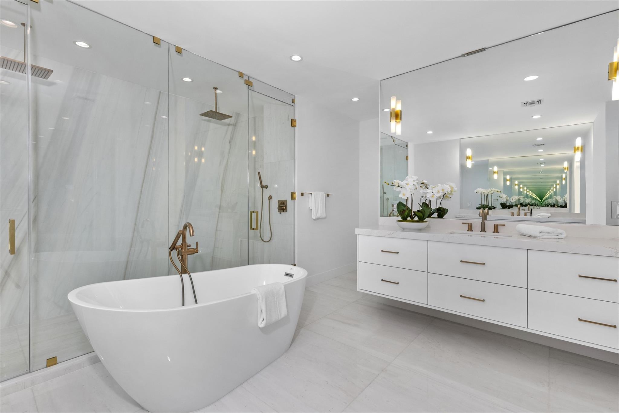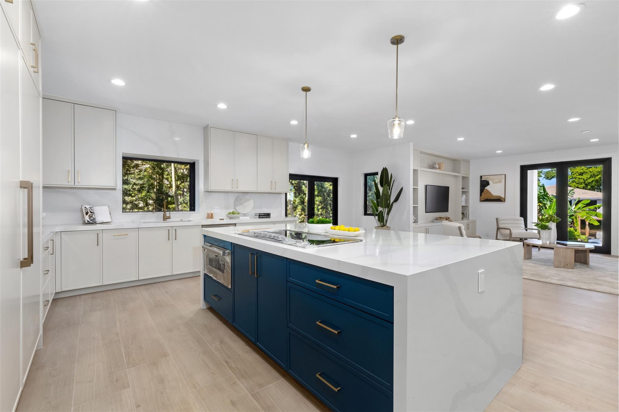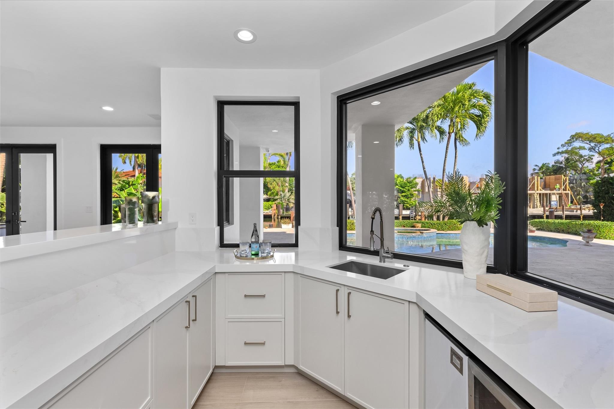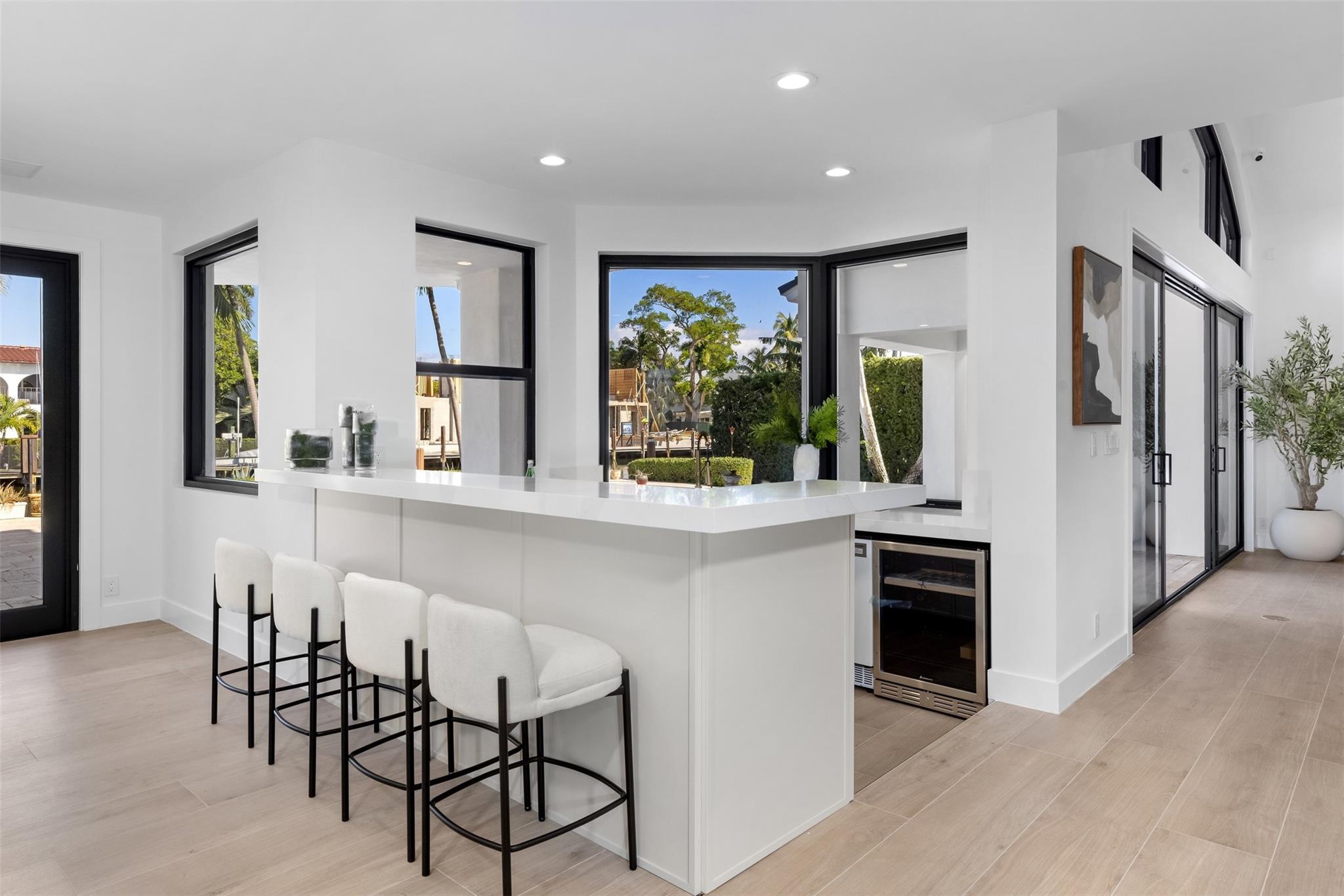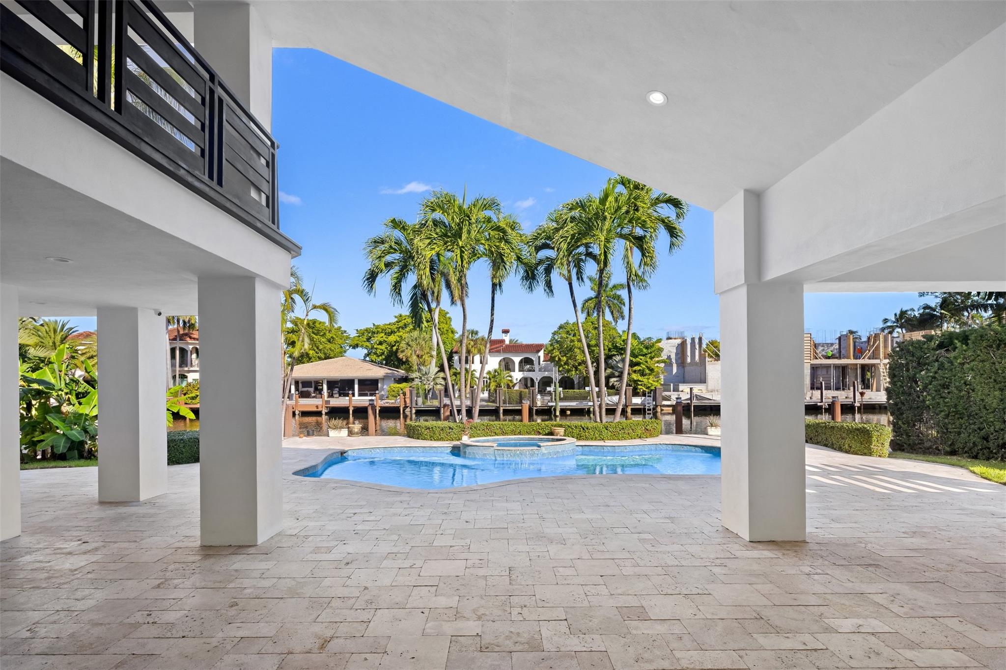 Lavishly remodeled waterfront estate in the prestigious and privately patrolled Seven Isles community. Offering 100 feet of frontage on a deep water canal. Conveniently located in close proximity to the inlet for prompt ocean access. Plenty of open floor space with volume ceilings perfect for entertaining.