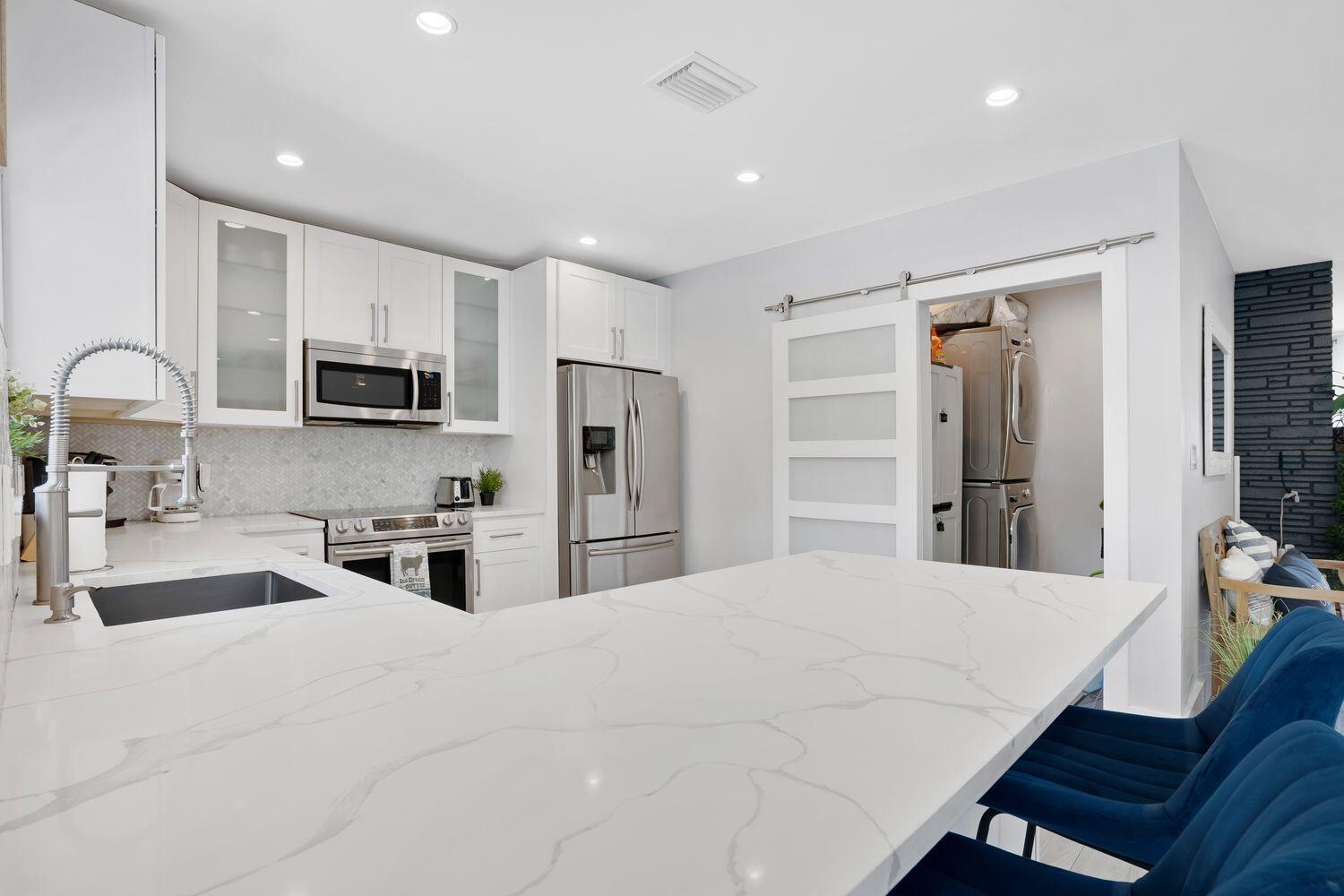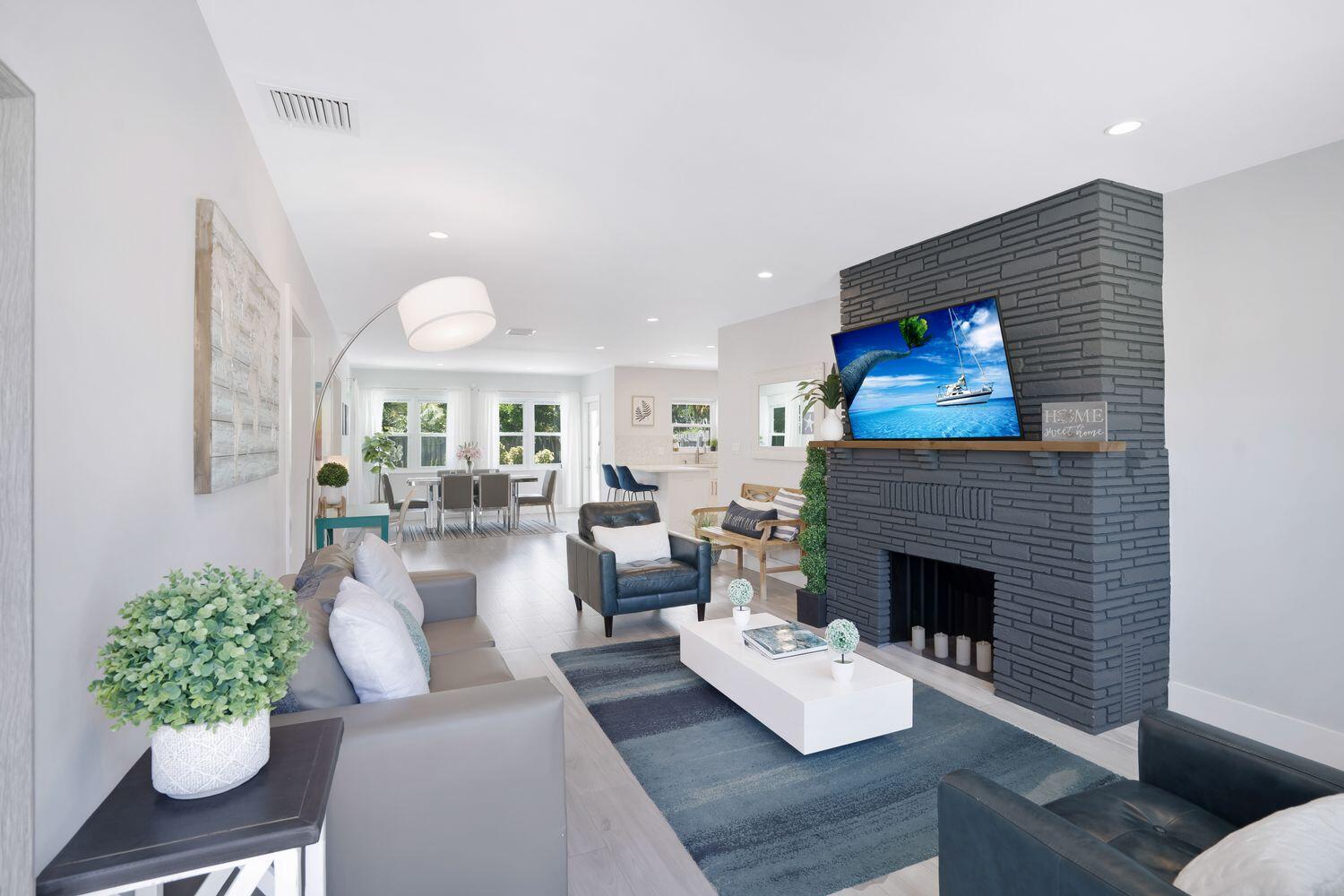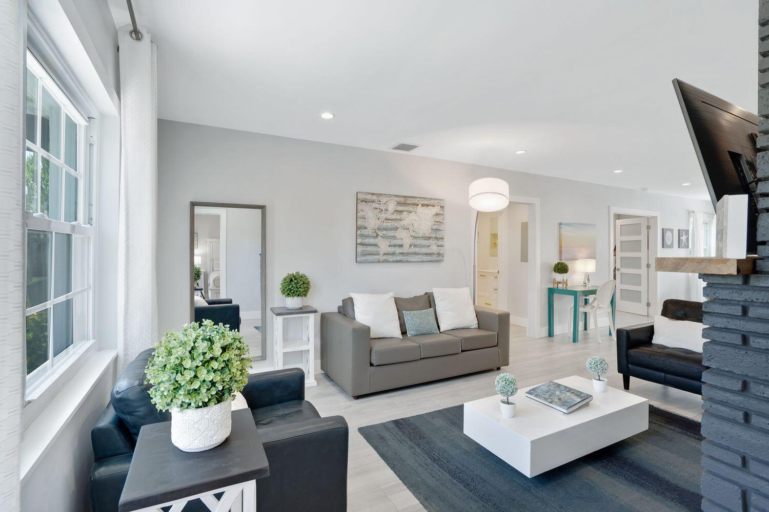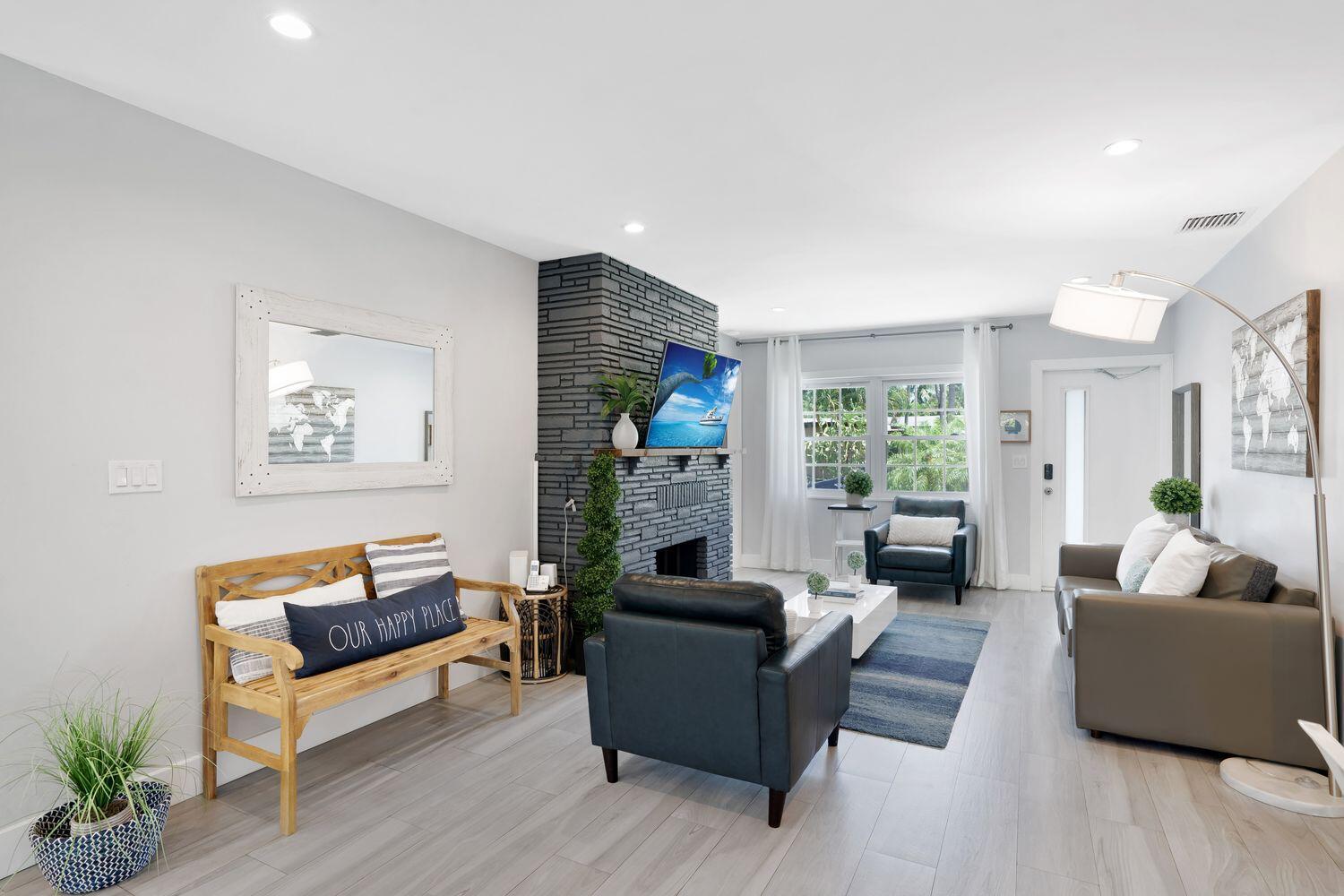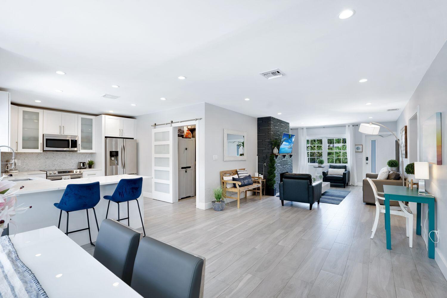 **SPECIAL FINANCING available 6% interest rate** with preferred lender.Location! Close to beaches, dining and shops. This stunning TURNKEY single-family home that has been meticulously renovated from top to bottom, offering a perfect blend of modern sophistication and comfortable living. NEW ROOF installed September 2024. Fully furnished gem boasts 3 spacious bedrooms, 2 luxurious bathrooms, and an inviting layout with eastern exposure that drenches the home in natural light.Step inside to discover an open kitchen that will inspire your inner chef, featuring a breakfast bar, island kitchen, and top-of-the-line stainless steel appliances including an electric oven, dishwasher, cooktop, and refrigerator. The recessed lighting throughout the home adds a touch of elegance and