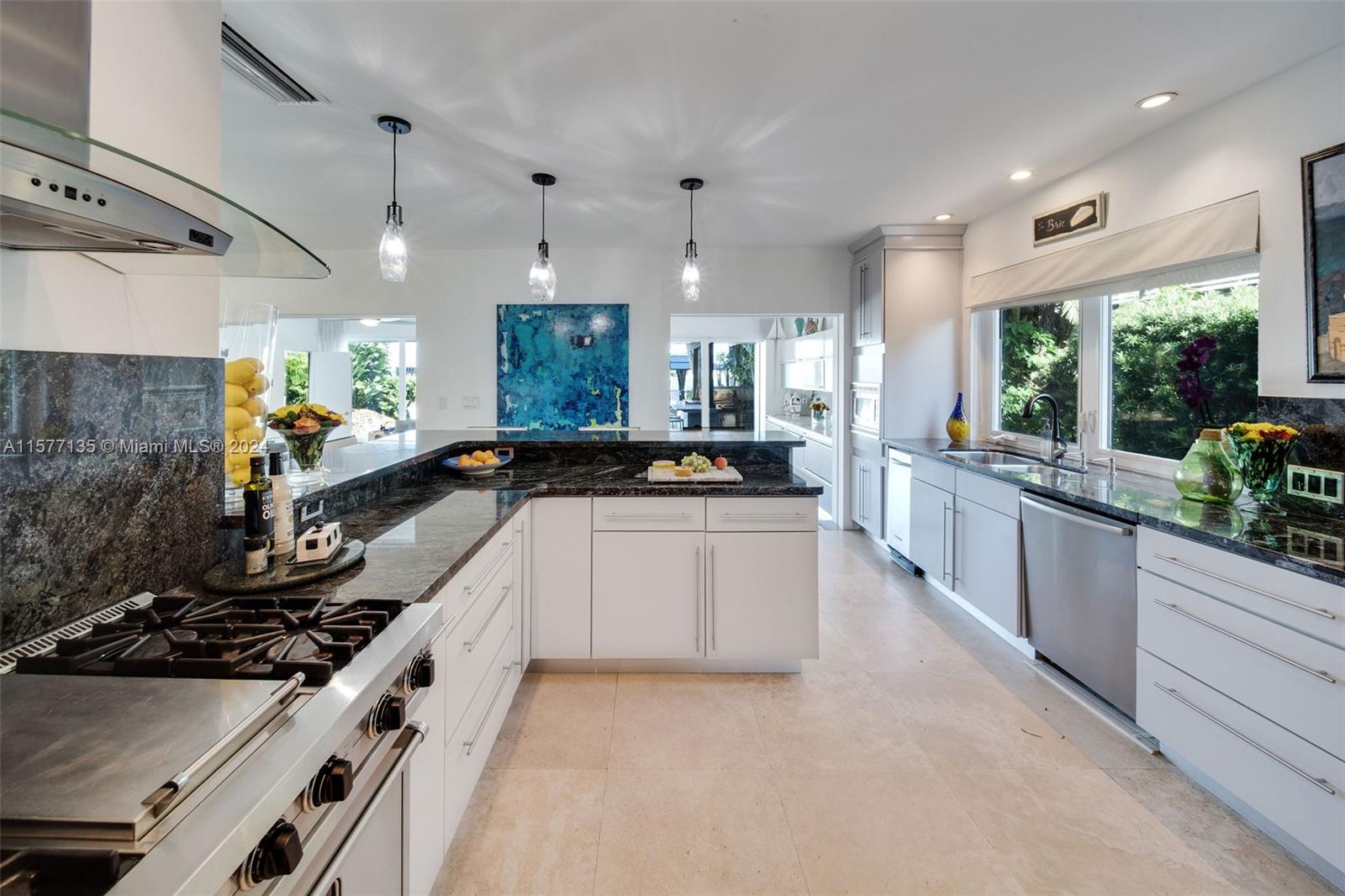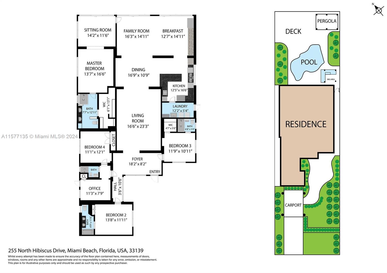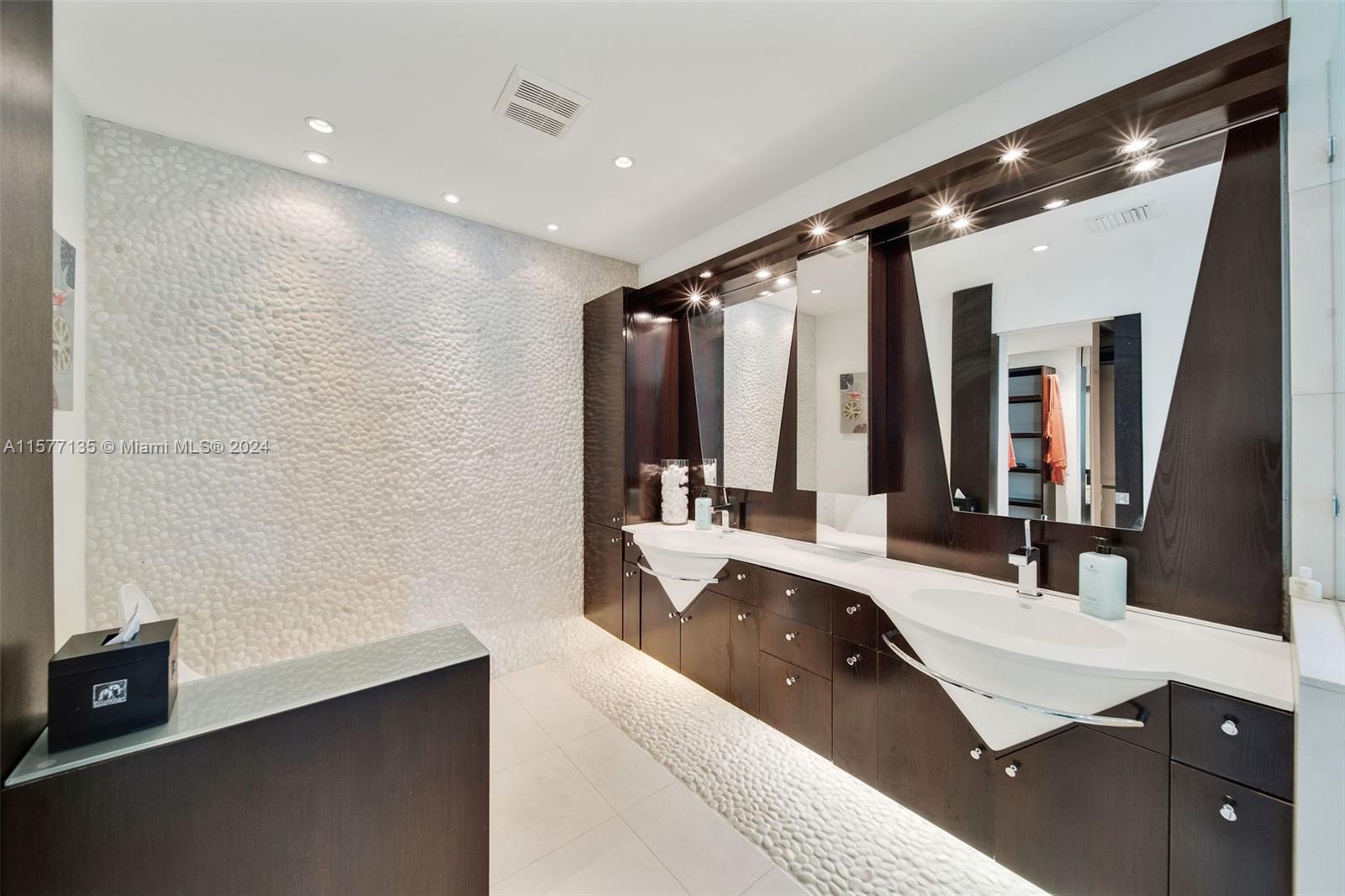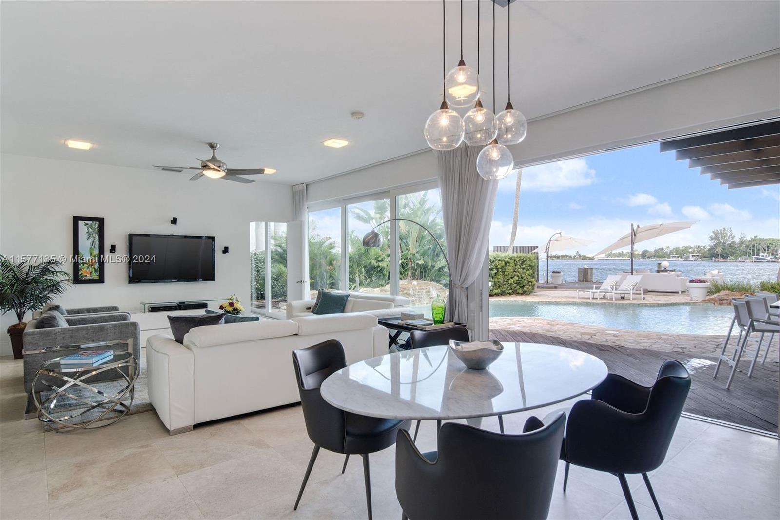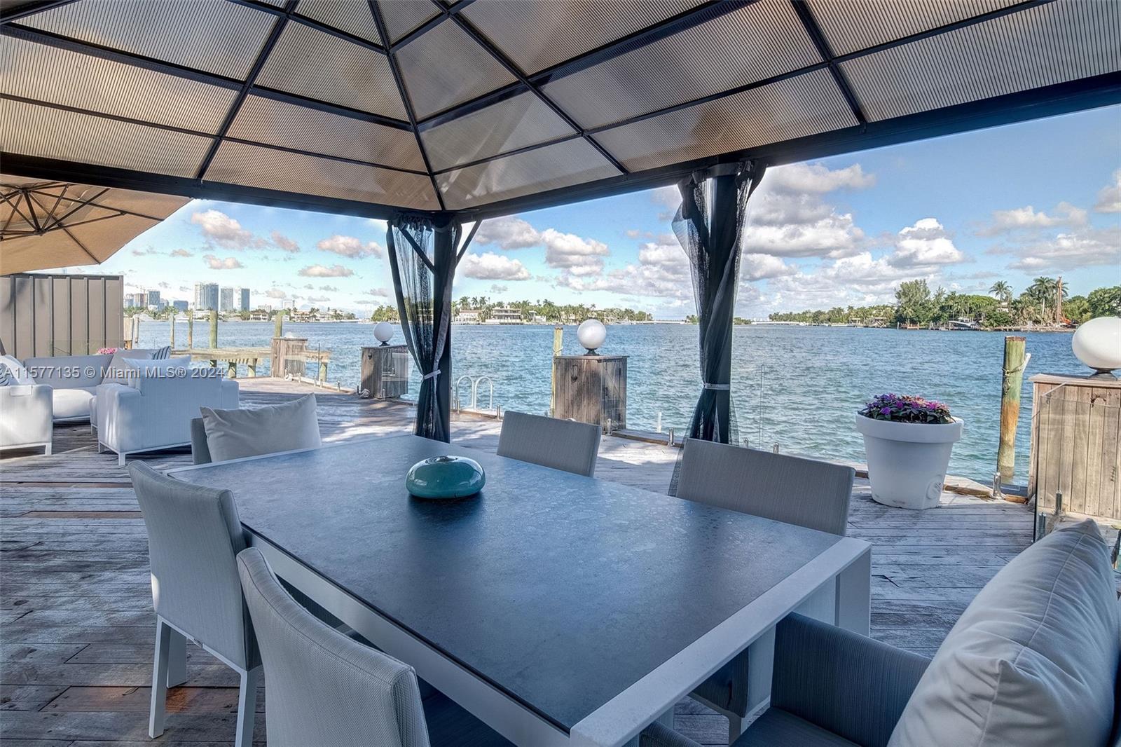 Beautiful waterfront Hibiscus Island pool home with chic finishes and open floor plan. Highly desirable North Hibiscus, the best of the bay with views of the Venetians, South Beach and Edgewater. Four bedrooms, 4 baths bonus spaces of Master sitting room, office/Spa, 2 livings areas, and 2 dining areas. The new outdoor kitchen and huge dock are a perfect spot for watching the boats go by on the bay. Relax in the free form heated pool and spa as the palms trees sway and you listen to the cascading waterfalls. The gated community is island living in the middle of the city. Waterfront park with tennis, basketball, and covered playground, all within minutes from the best Miami has to offer in museums, entertainment and shopping.