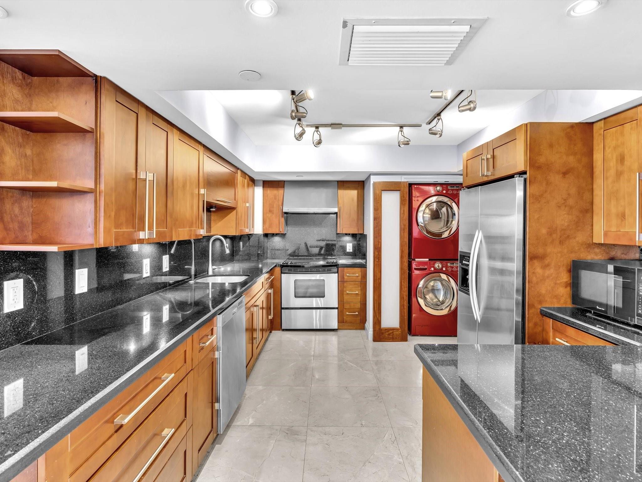 The ultimate Florida living in this quiet serene tropical community. Relax on your private balcony enjoying the ocean and intracoastal views. Come see this gated quiet community with great amenities including spacious pool area right on the intracoastal complete with grilling and barbecue cabana area. Building has large fitness center with modern equipment. A game room complete with billiard and ping pong activities. Washer and dryer in unit. Updated kitchen with stainless steel appliances. Large spacious bathrooms. Primary bathroom has jet tub and walk in shower. Indoor, secure and covered parking and plenty of guest parking. Tree lined streets perfect for jogging or dog walking. WiFi and cable included in HOA. 40 year inspection complete. Close to beach, shops and entertainment