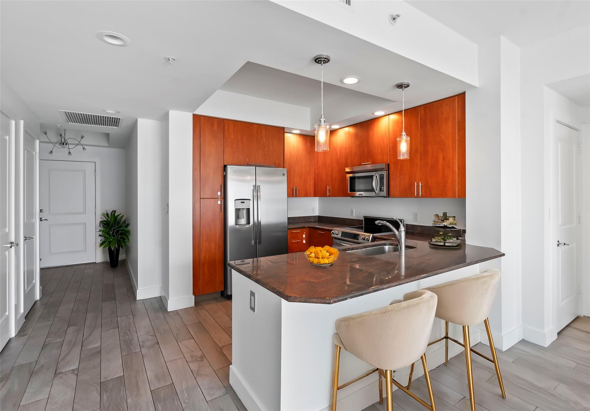 *Skyline Views, Downtown Lifestyle* This 2BR/2BA home offers open kitchen with granite countertops and high-end stainless steel appliances, Italian ceramic tile floors throughout, impact windows, and an in-unit washer and dryer. The building also offers 24/7 concierge, a gym, heated pool, jacuzzi, social room, and business center. Pet-friendly and perfectly located just blocks from Las Olas, Fresh Market, FAT Village, and the Brightline high-speed train. Internet and Direct TV included in your community dues!