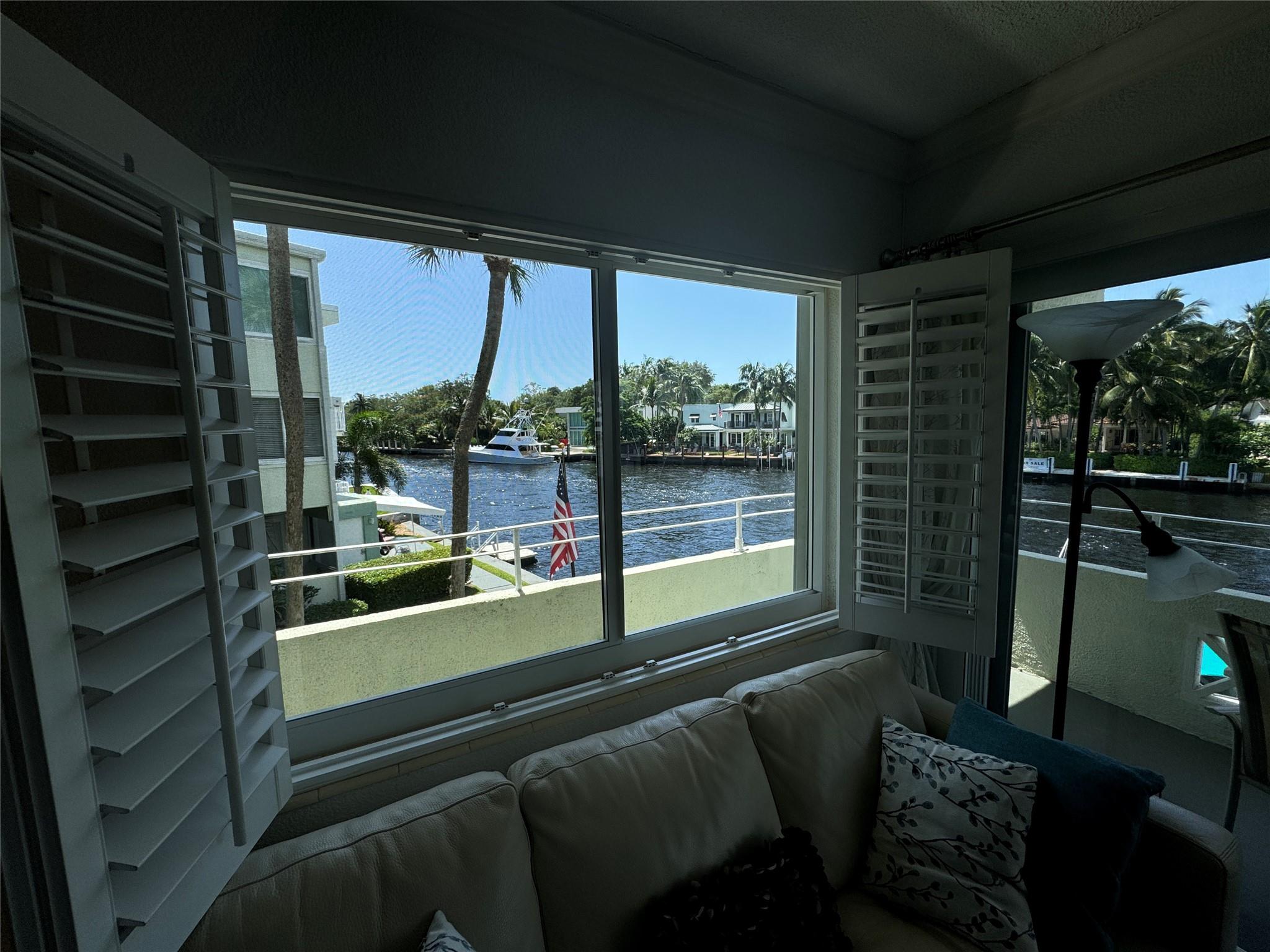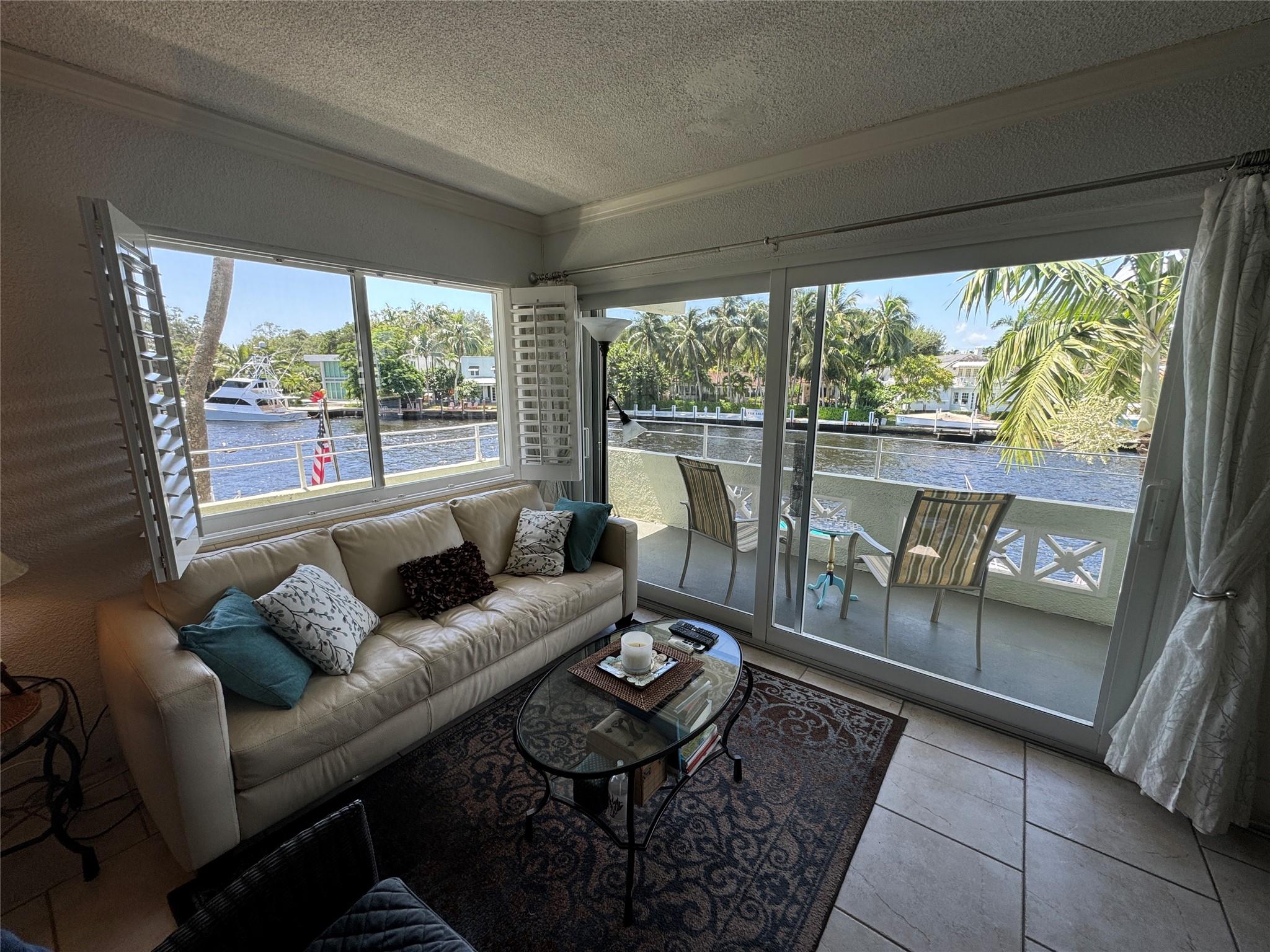 Unique and Hardly Available Location! Watch the Mega Yachts & Boats sail by right from your own living room & balcony on the New River! Unique River front Corner 2bed/2bath unit with 180 Degree View of the New River. Simply park your car in your assigned private spot & walk 1 block to Las Olas Blvd. restaurants, bars, shops, Green Wise Supermarket & Library. Ten minute walk from the beach. Private Pool & Grill Area, Storage Room, Meeting/Co Working room. Perfect to live in or a vacation home on a very quiet street. NO RENTALS. Impact Windows AND Accordion Shutters. Fully Remodeled Baths & Kitchen. Plantation shutters. Washer & drier INSIDE the unit. Jump in Water taxi stop #2 right next door to take a ride to the intracoastal. Private dock. Water/basic cable included! Furniture Negotiable!