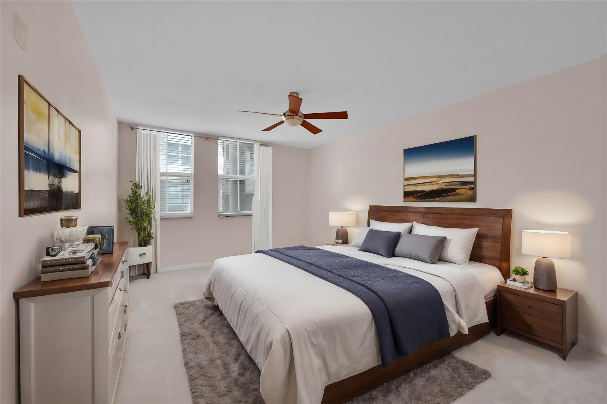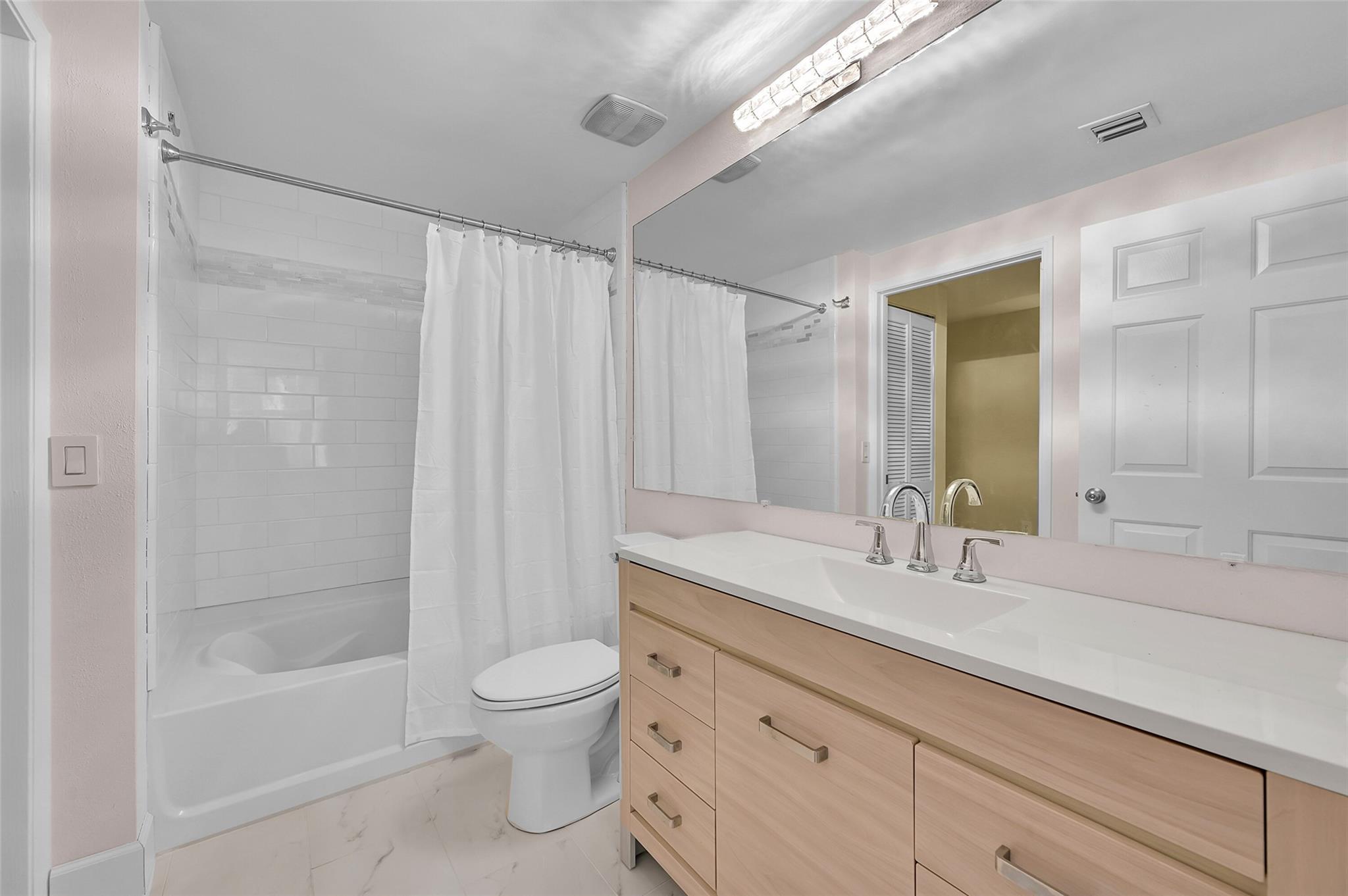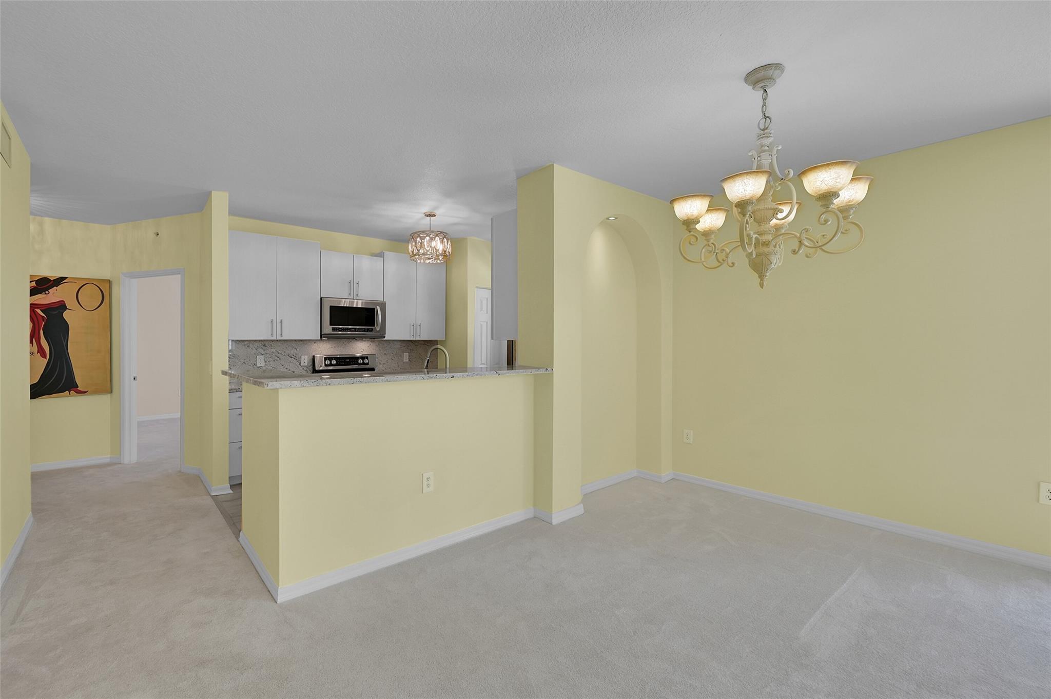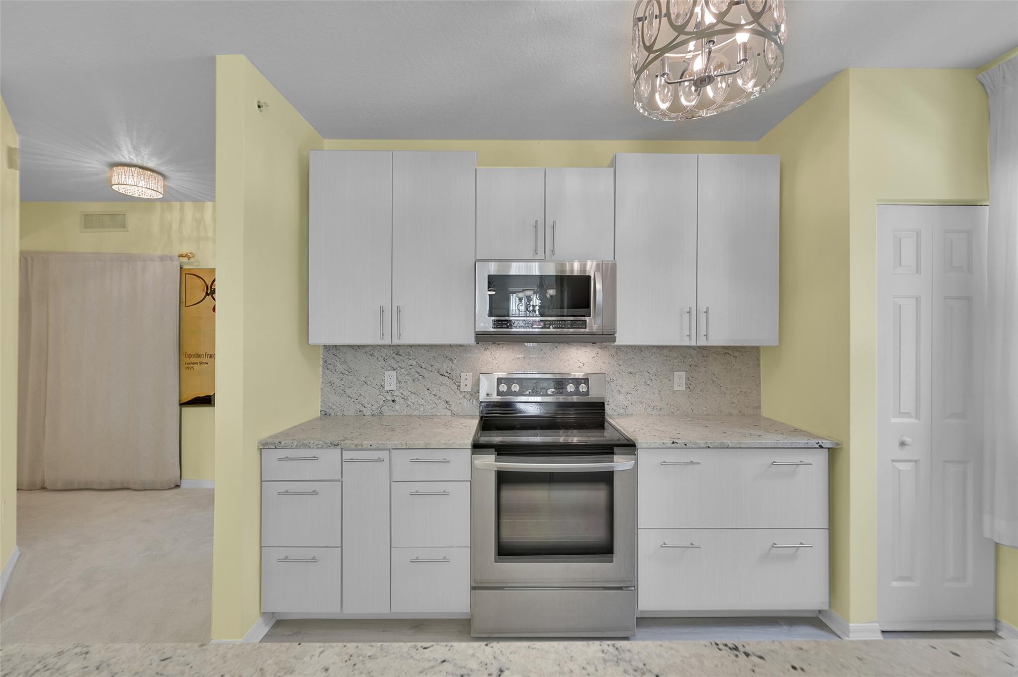 Discover this beautifully updated corner unit in the coveted Lauderdale One condo. The open-concept kitchen boasts new cabinets, SS appliances, granite counters. Spacious living and dining area opens to a private balcony. The split bedroom plan features a large primary suite with an En-suite bath & dual closets. Both bathrooms have been refreshed. High ceilings throughout add to the airy feel. Entrance foyer includes a full-sized washer and dryer. Secure parking with a gated garage spot, ample guest parking & an electric car charging station. Enjoy amenities like a pool, conference center, gym, and on-site manager. This ideally located condo offers modern comfort & convenience. With its thoughtful updates and desirable features, perfect blend of style and functionality in a prime location.