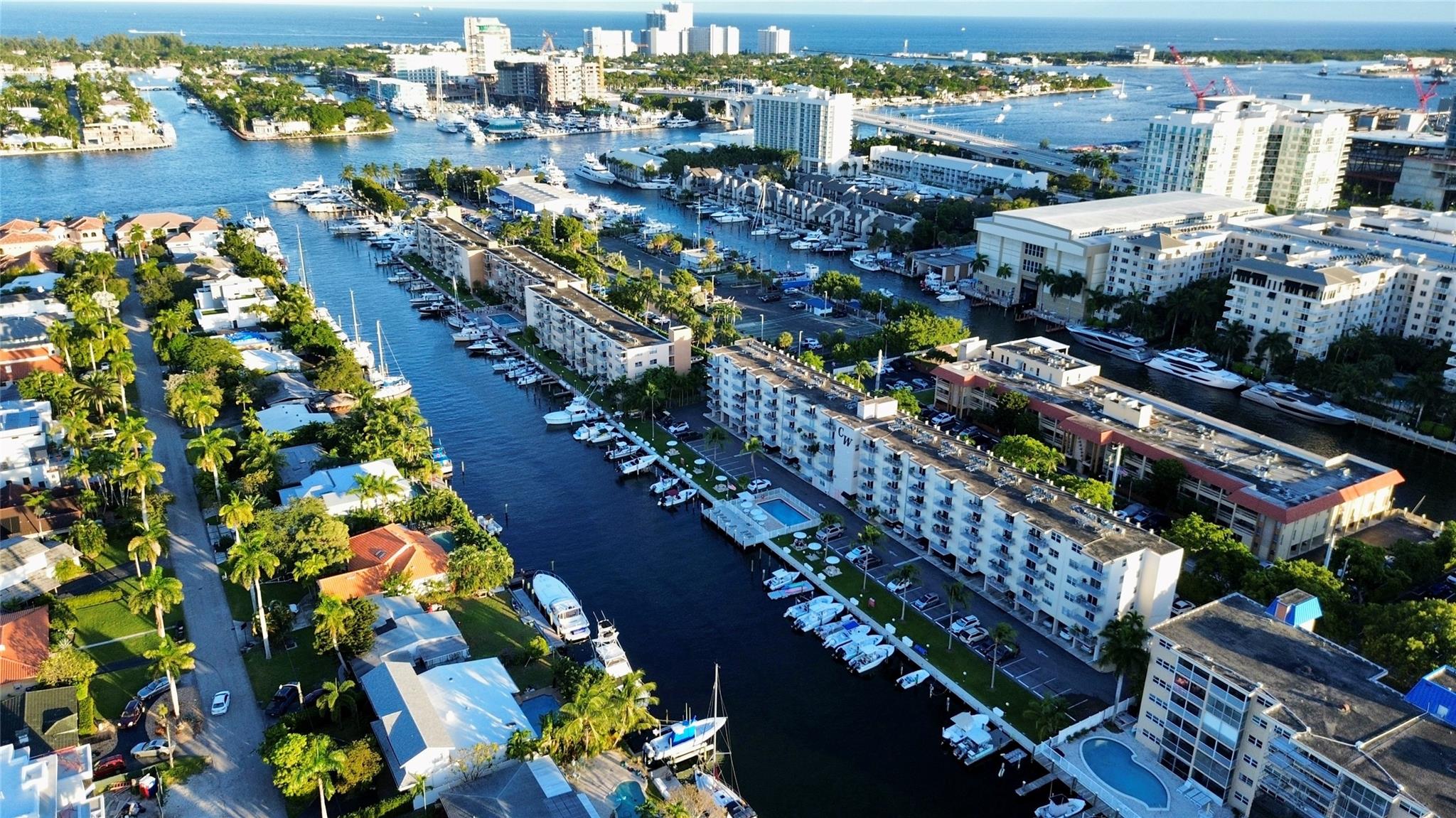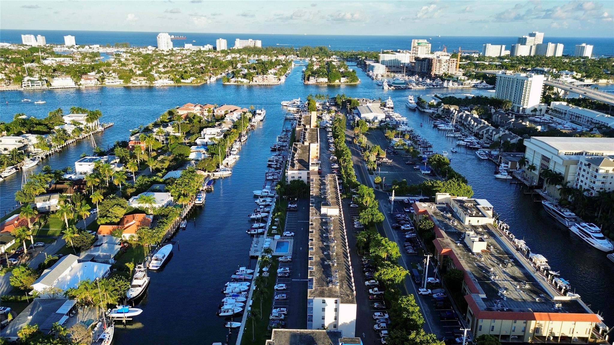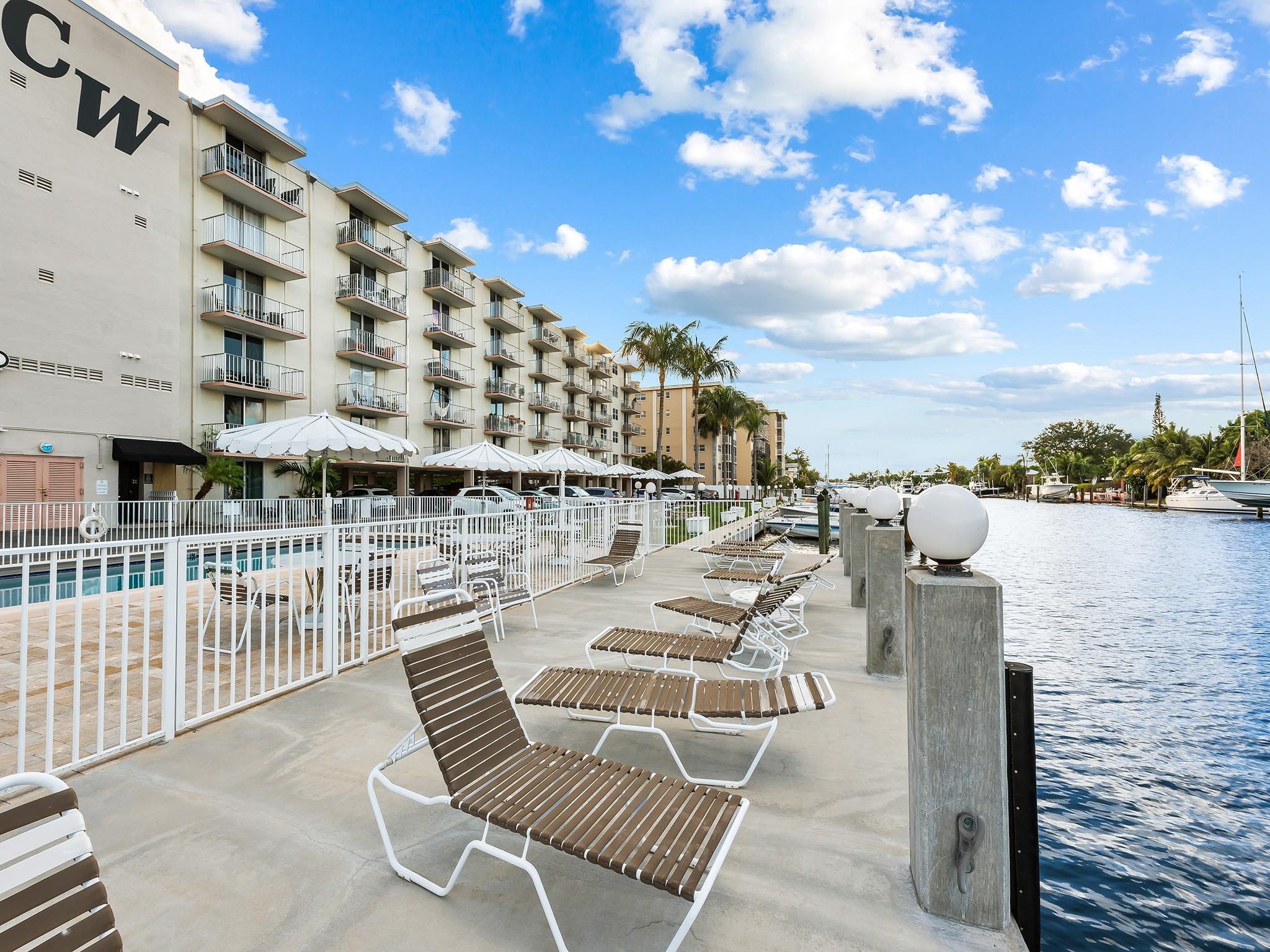 Boaters dream location with an assigned boat slip included. Featuring 2 bedrooms 2 full baths with marble floors though out, open and updated kitchen with granite and glass tiles, stainless appliances. Incredible views of the water and downtown Fort Lauderdale. Covered parking and a boat slip next to the pool make this a perfect boating lifestyle setup. End unit with extra windows keeping it light and bright. Walk to 15st fisheries. Boat ramp is across the street.