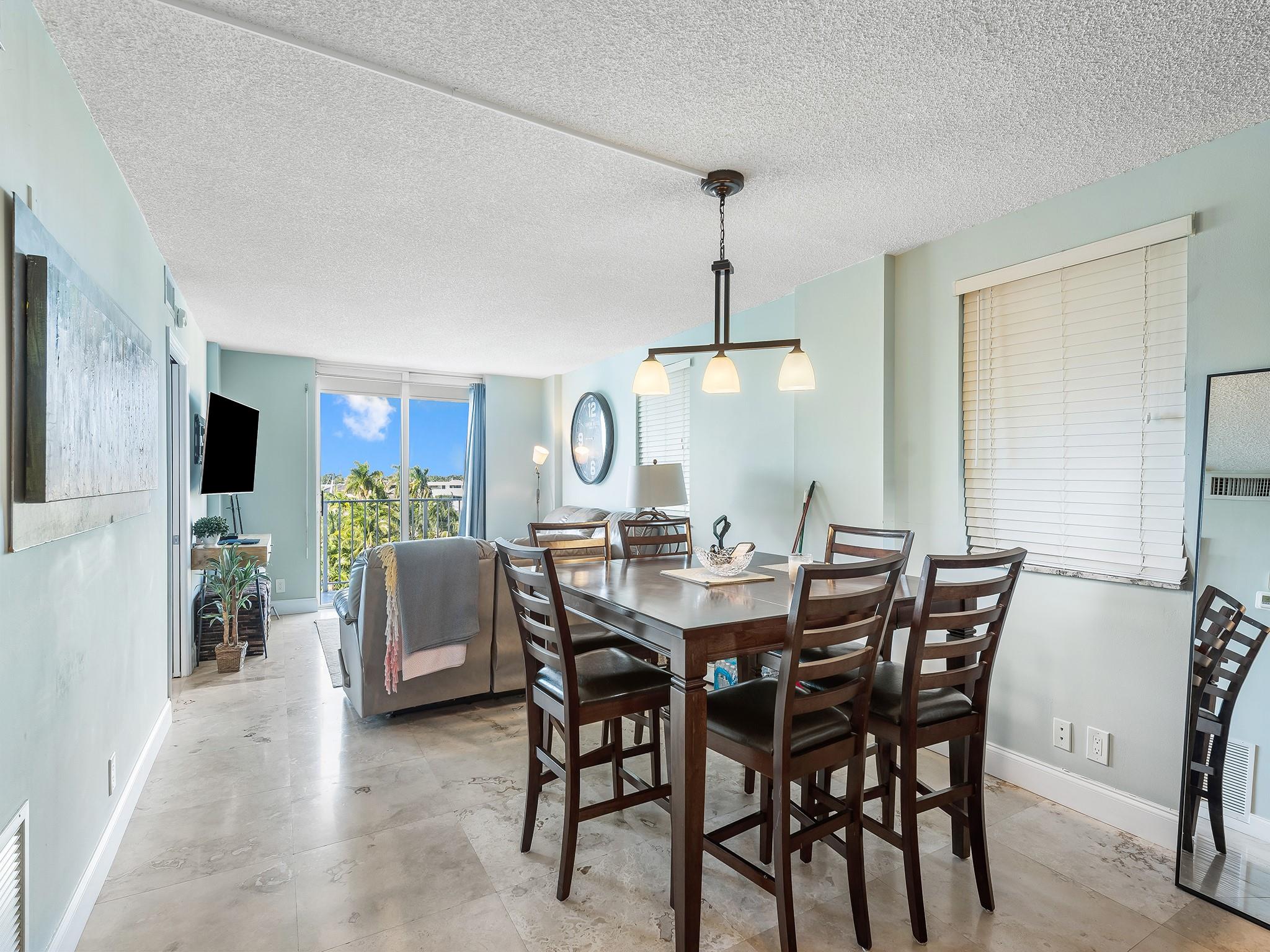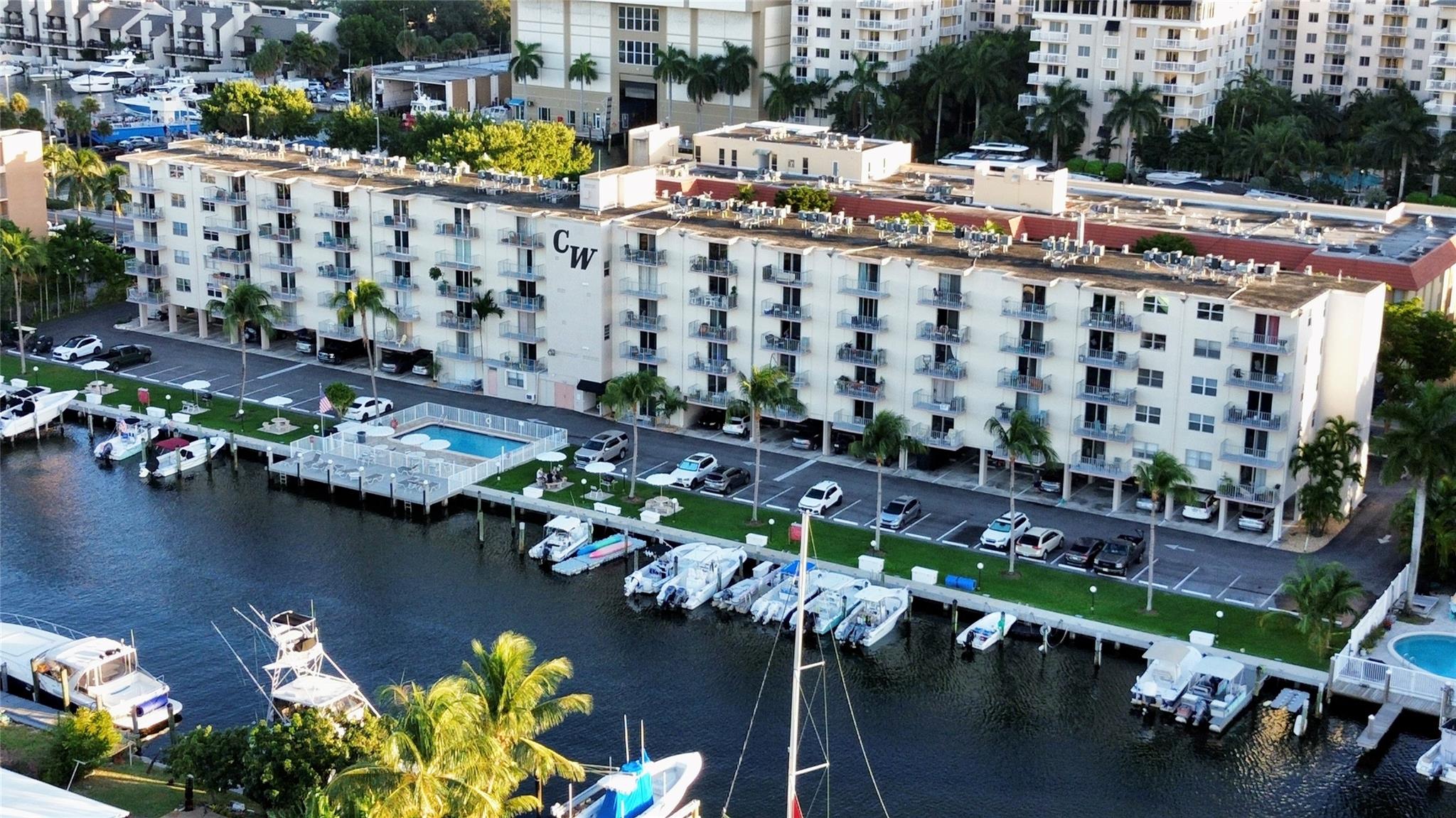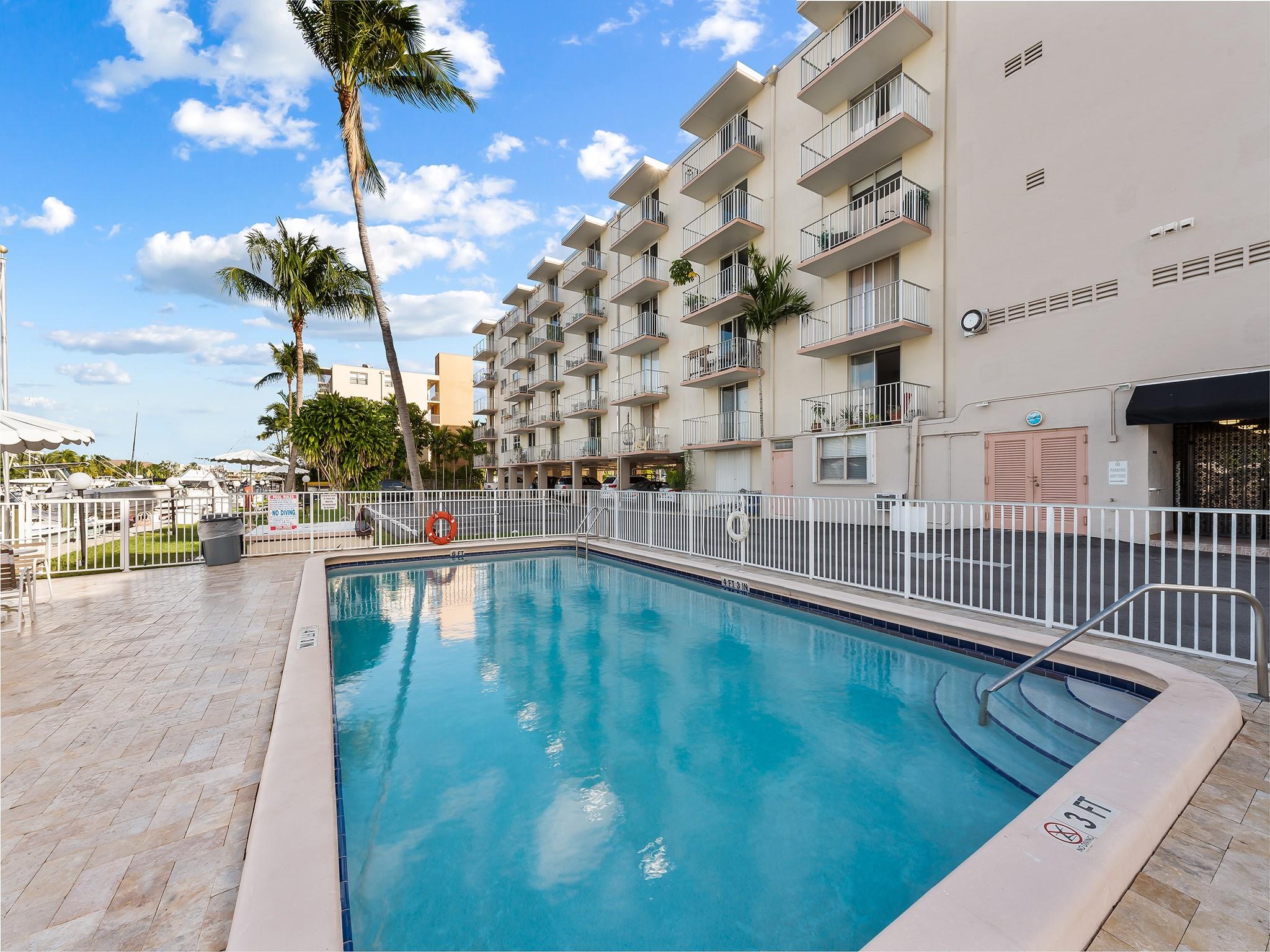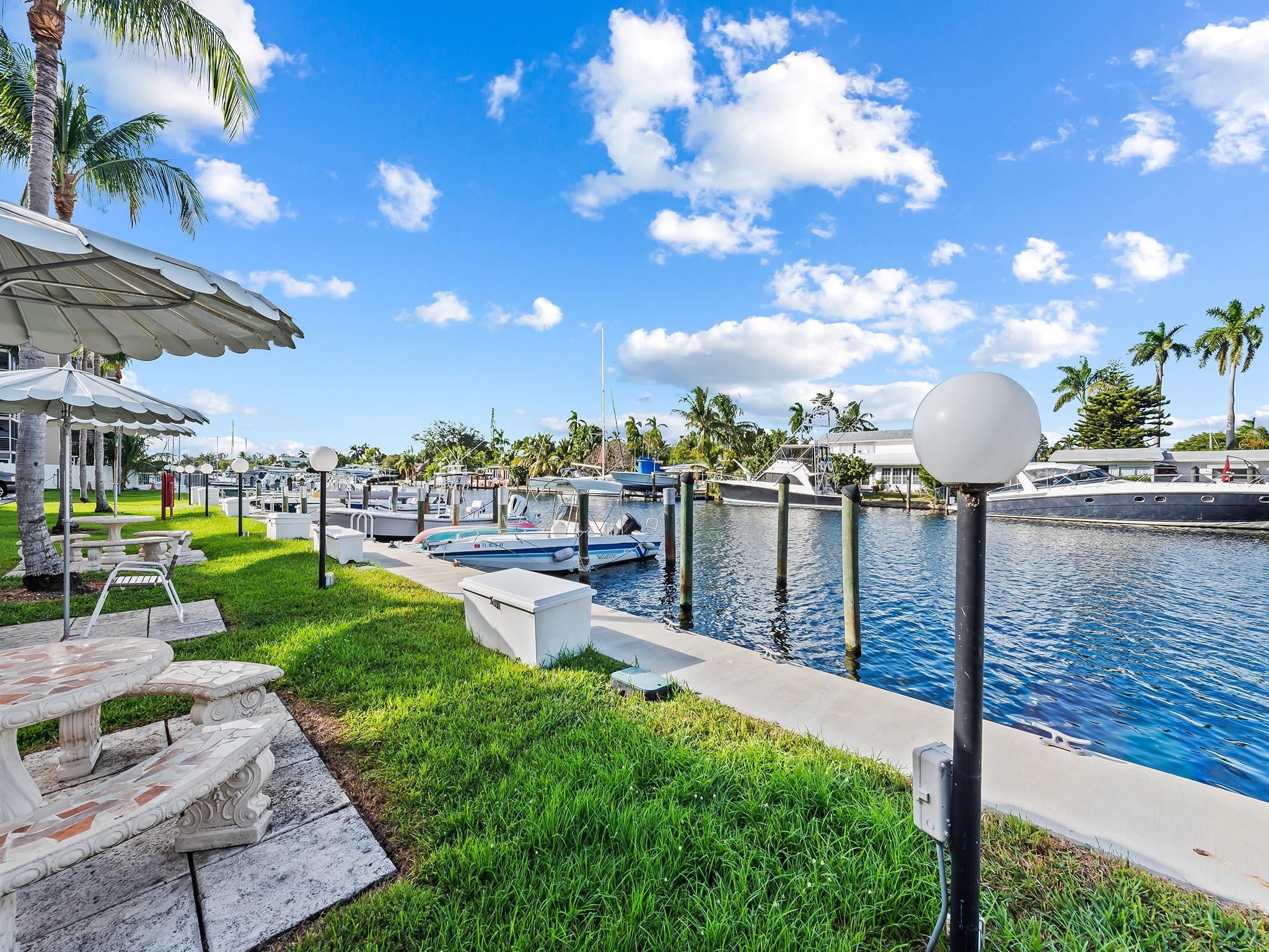 Boaters dream location with an assigned boat slip included. Featuring 2 bedrooms 2 full baths with marble floors though out, open and updated kitchen with granite and glass tiles, stainless appliances. Incredible views of the water and downtown Fort Lauderdale. Covered parking and a boat slip next to the pool make this a perfect boating lifestyle setup. End unit with extra windows keeping it light and bright. Walk to 15st fisheries. Boat ramp is across the street.