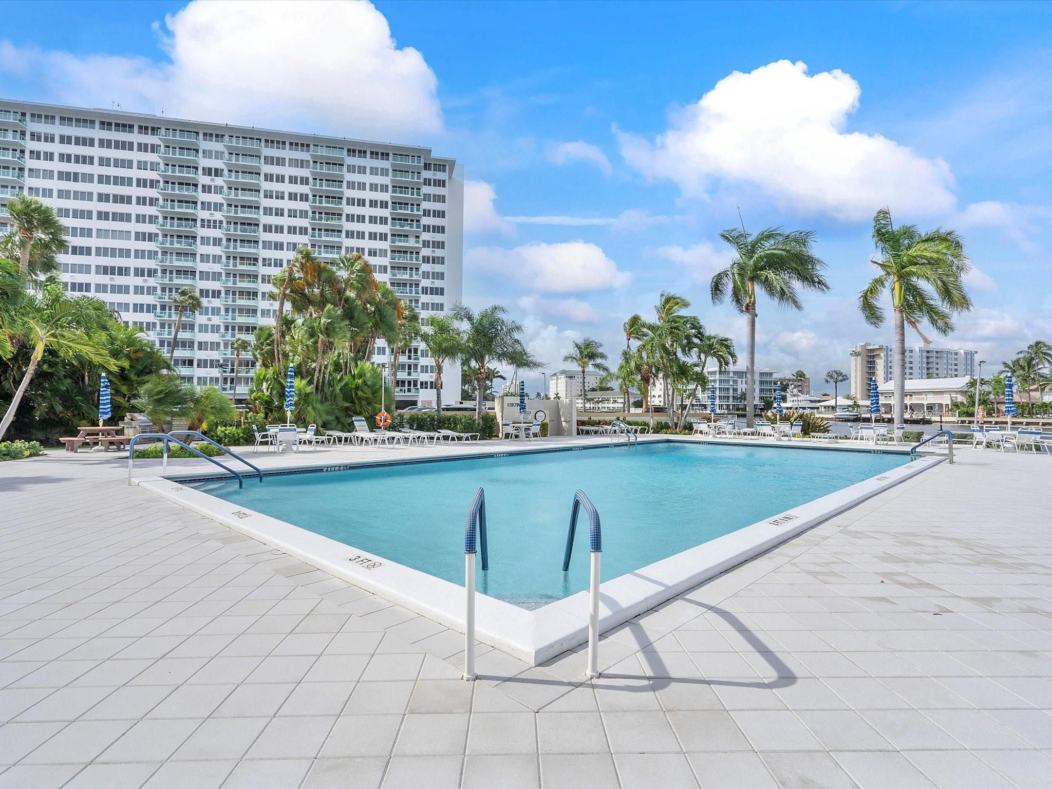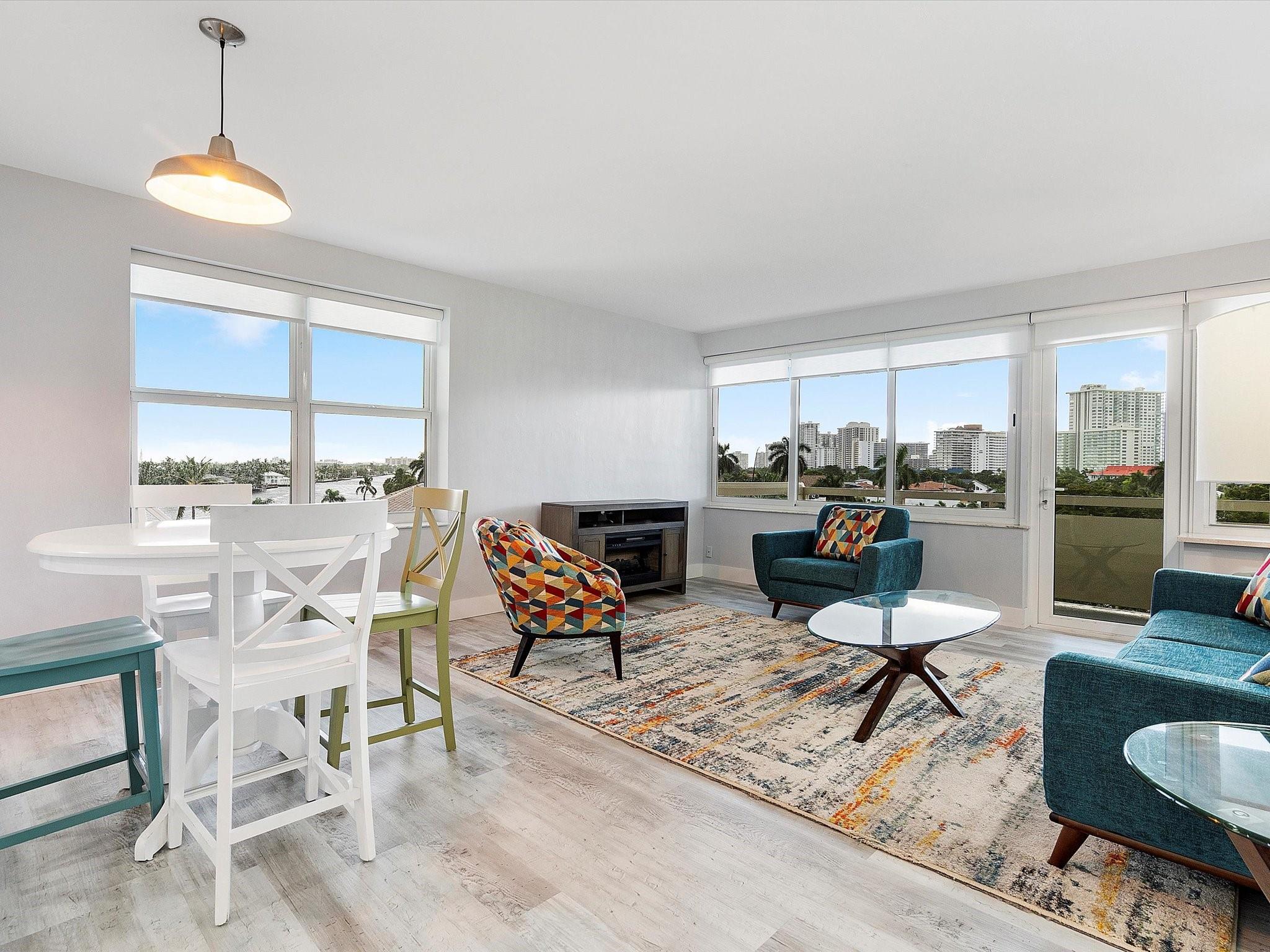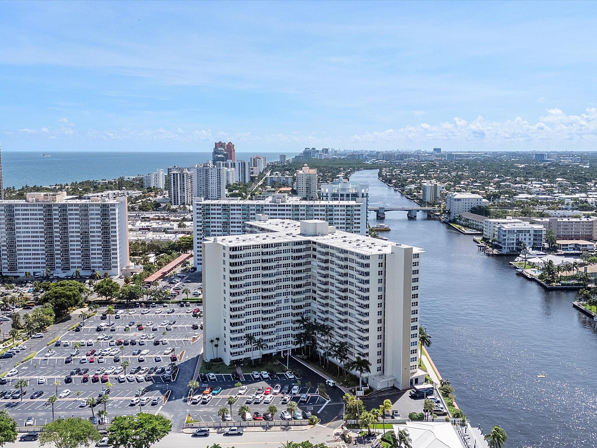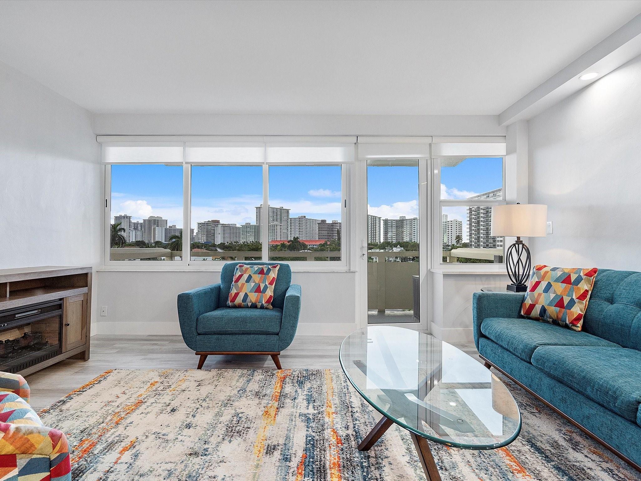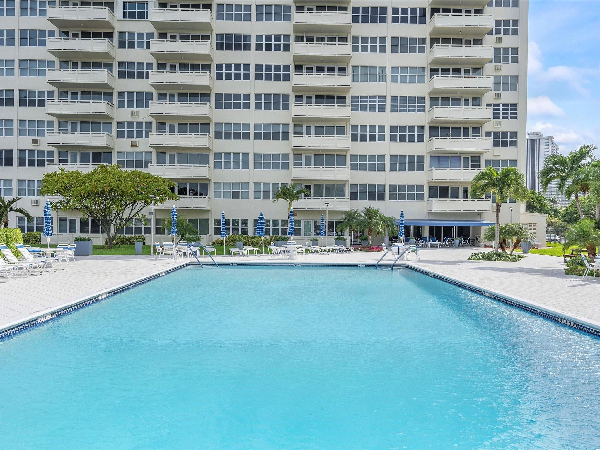 Introducing this spacious, modern 2-bed, 2-bath corner unit Co-Op in the sought-after Coral Ridge Towers North. This 1,120 sq. ft. gem boasts breathtaking water views and an open balcony overlooking the Intracoastal Waterway. Enjoy the convenience of impact windows, central AC, and stylish vinyl flooring throughout. The open kitchen features elegant Quartz countertops and classic white shaker cabinetry, perfect for culinary adventures. Both bedrooms offer custom closets for ample storage. Located just moments from the beach and vibrant Galt Ocean Dr, this residence is surrounded by shopping, dining, and entertainment options. Community amenities include a heated pool, library, community room, BBQ area, fitness center, and 24-hour security, ensuring a lifestyle of comfort and convenience.