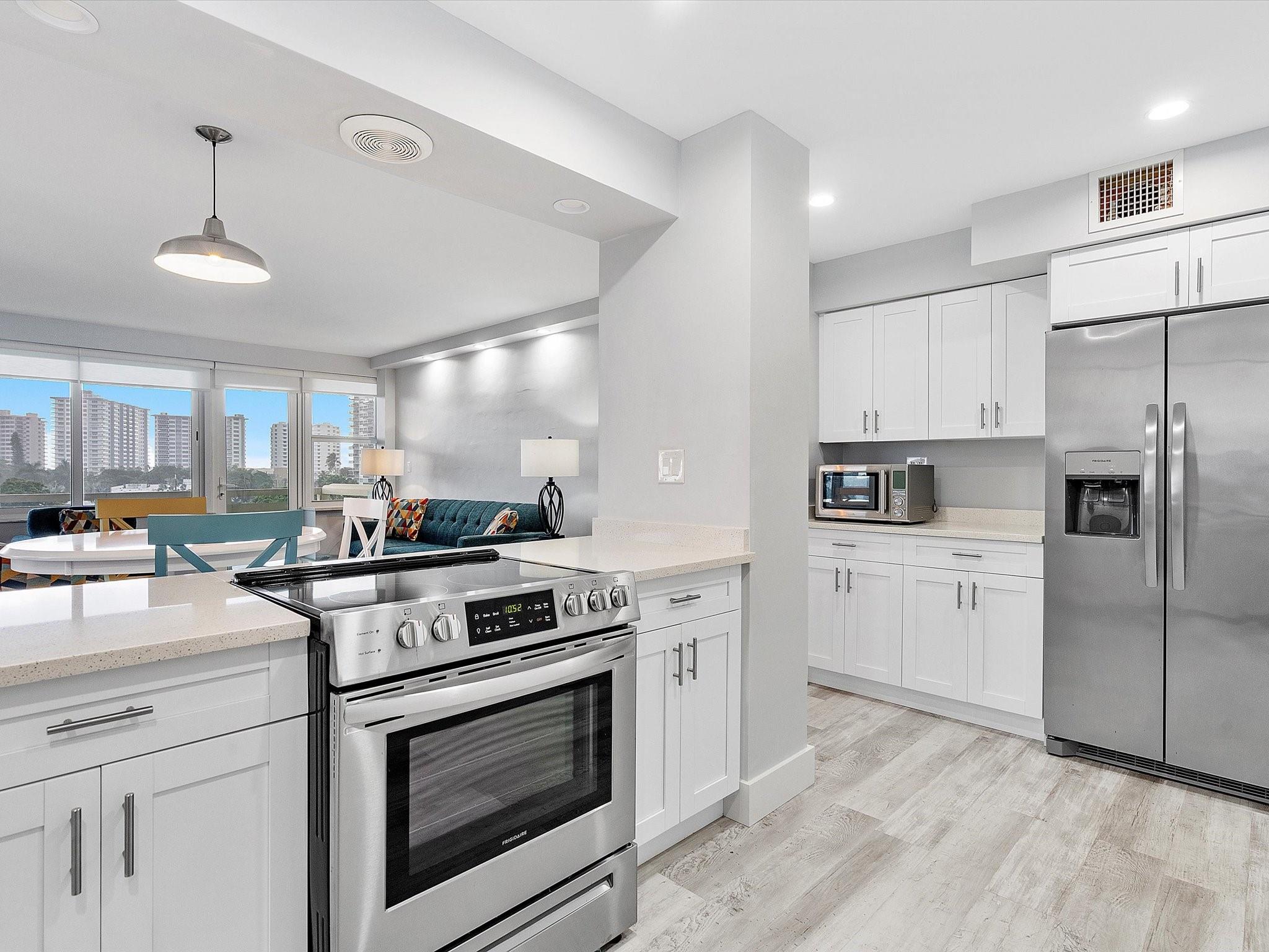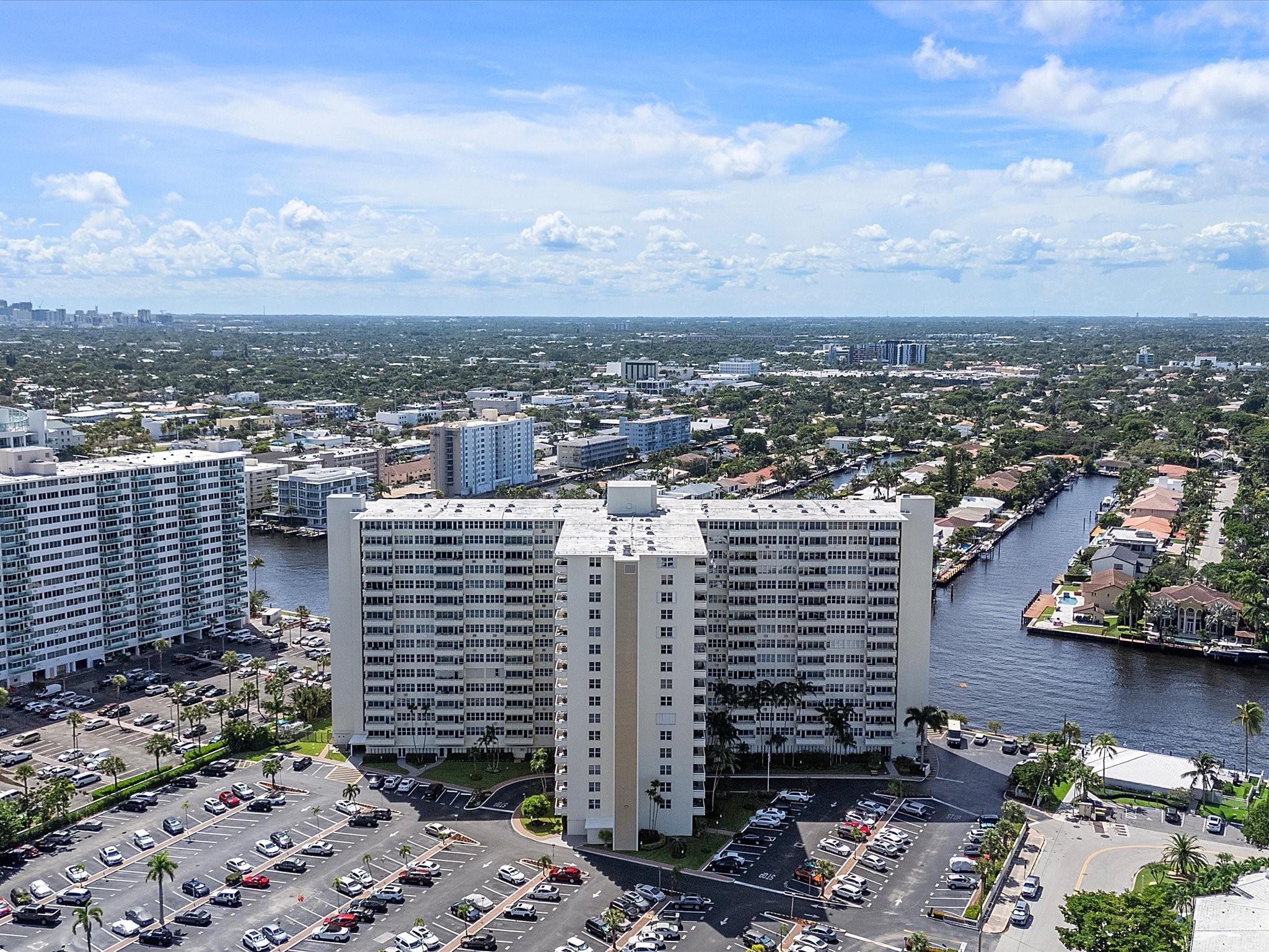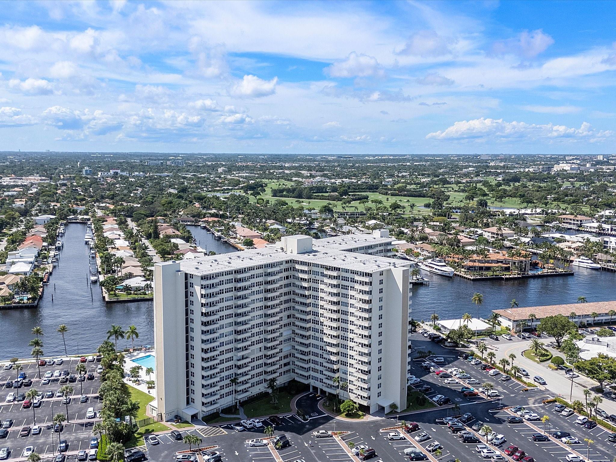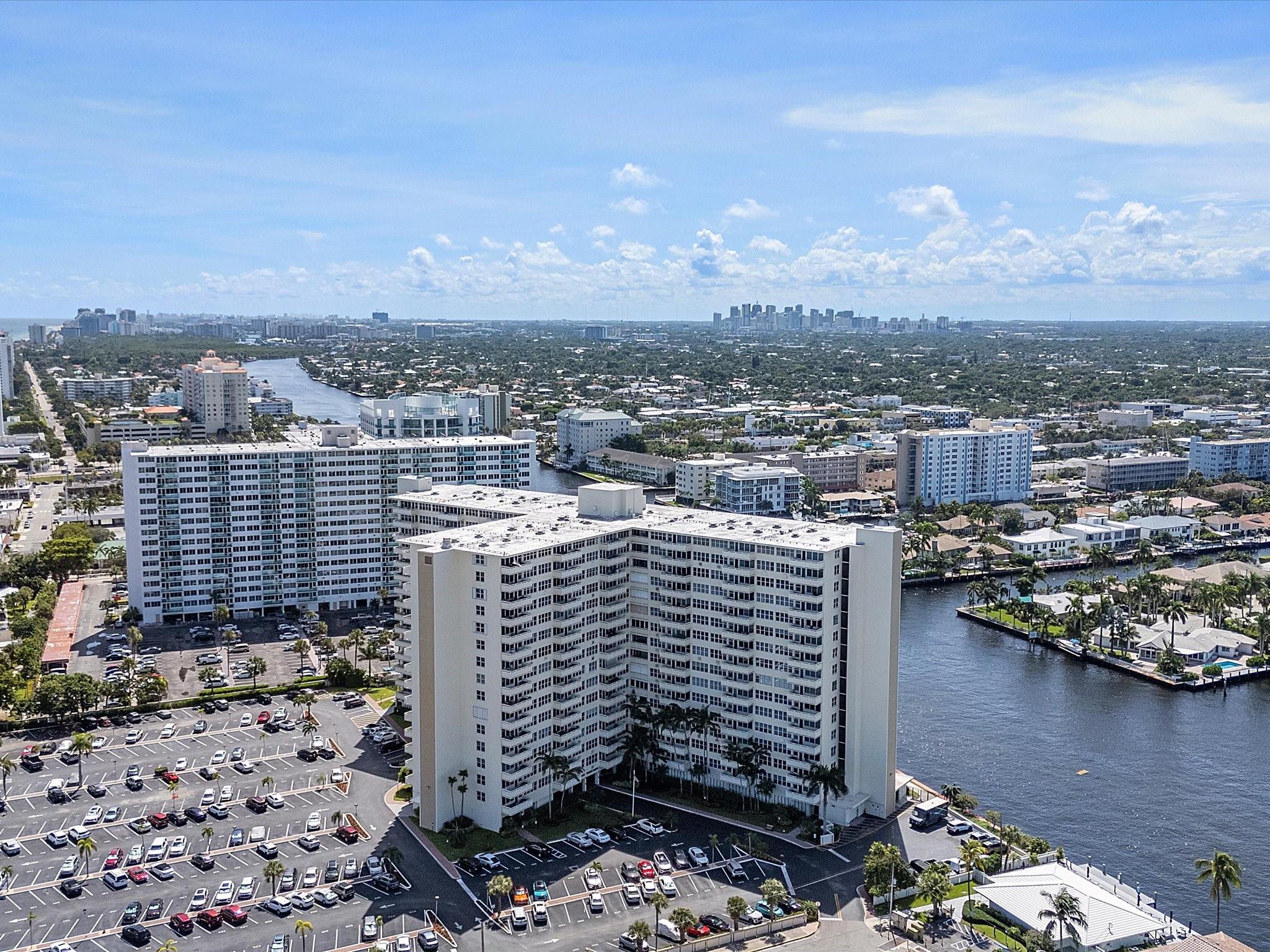 Introducing this spacious, modern 2-bed, 2-bath corner unit Co-Op in the sought-after Coral Ridge Towers North. This 1,120 sq. ft. gem boasts breathtaking water views and an open balcony overlooking the Intracoastal Waterway. Enjoy the convenience of impact windows, central AC, and stylish vinyl flooring throughout. The open kitchen features elegant Quartz countertops and classic white shaker cabinetry, perfect for culinary adventures. Both bedrooms offer custom closets for ample storage. Located just moments from the beach and vibrant Galt Ocean Dr, this residence is surrounded by shopping, dining, and entertainment options. Community amenities include a heated pool, library, community room, BBQ area, fitness center, and 24-hour security, ensuring a lifestyle of comfort and convenience.