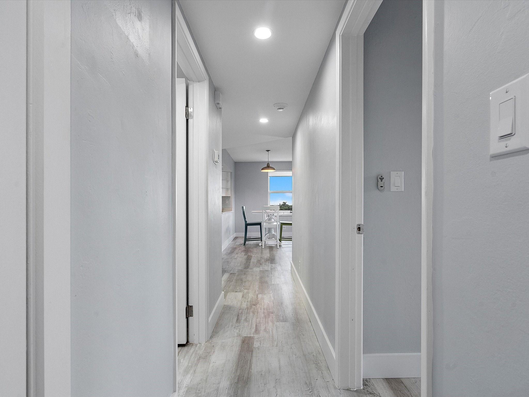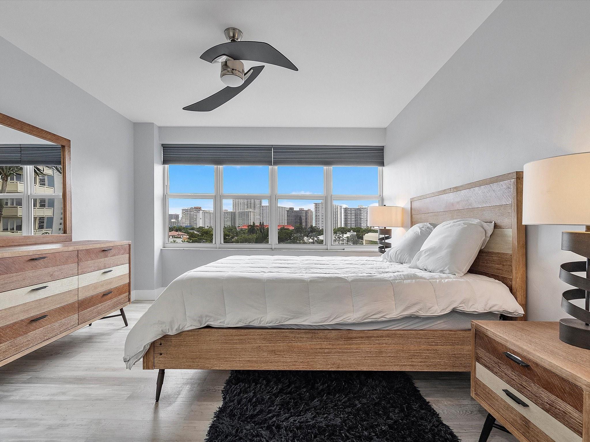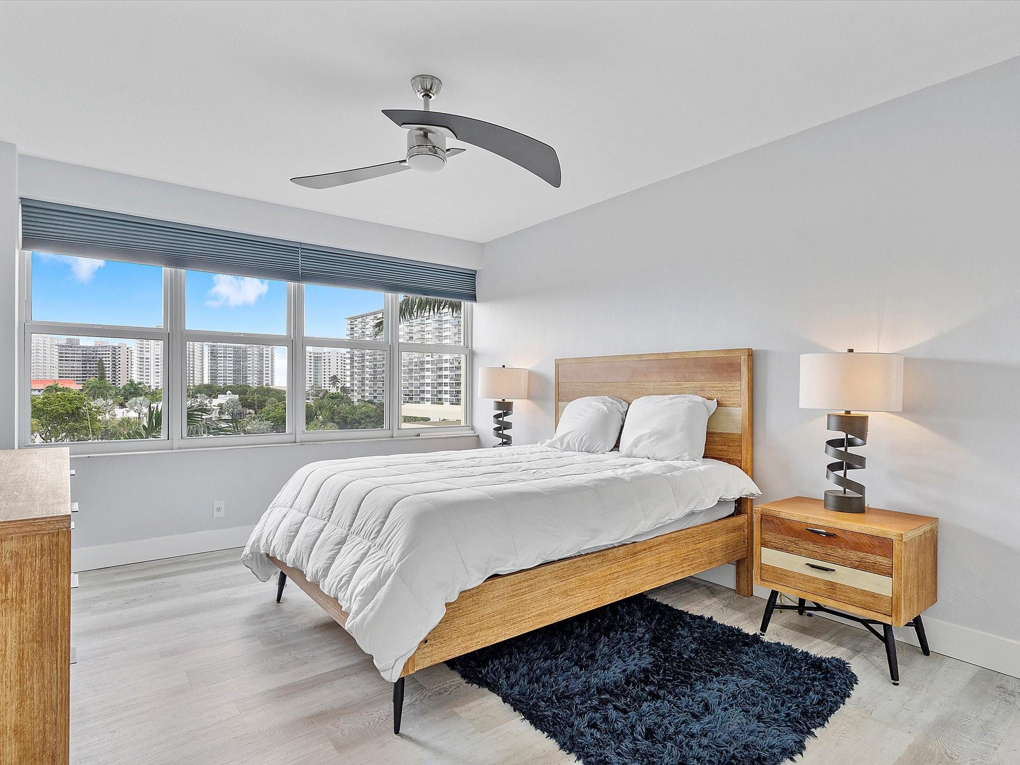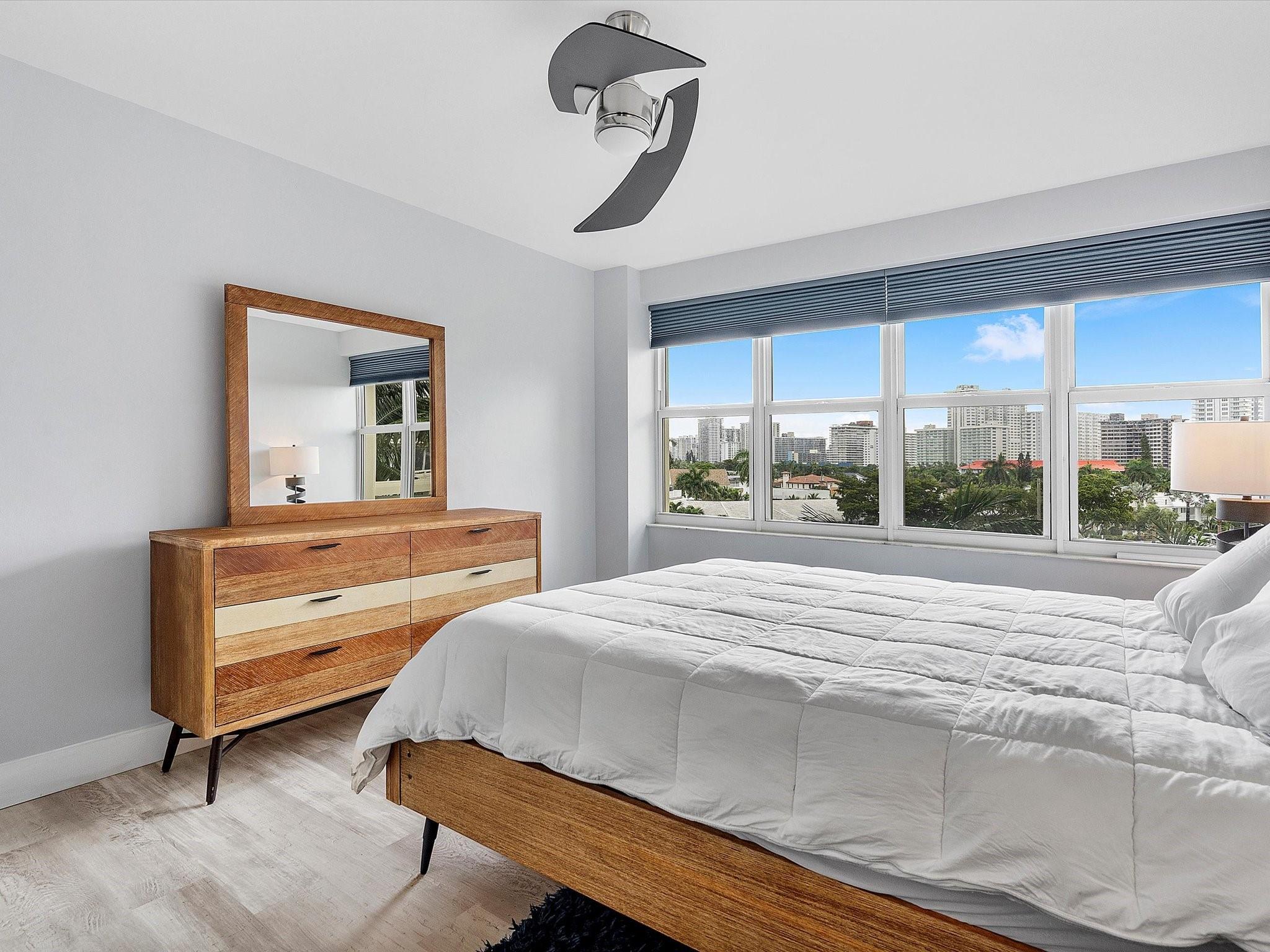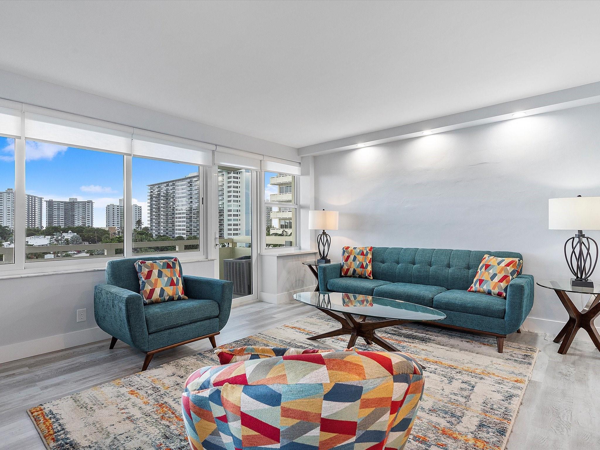 Introducing this spacious, modern 2-bed, 2-bath corner unit Co-Op in the sought-after Coral Ridge Towers North. This 1,120 sq. ft. gem boasts breathtaking water views and an open balcony overlooking the Intracoastal Waterway. Enjoy the convenience of impact windows, central AC, and stylish vinyl flooring throughout. The open kitchen features elegant Quartz countertops and classic white shaker cabinetry, perfect for culinary adventures. Both bedrooms offer custom closets for ample storage. Located just moments from the beach and vibrant Galt Ocean Dr, this residence is surrounded by shopping, dining, and entertainment options. Community amenities include a heated pool, library, community room, BBQ area, fitness center, and 24-hour security, ensuring a lifestyle of comfort and convenience.