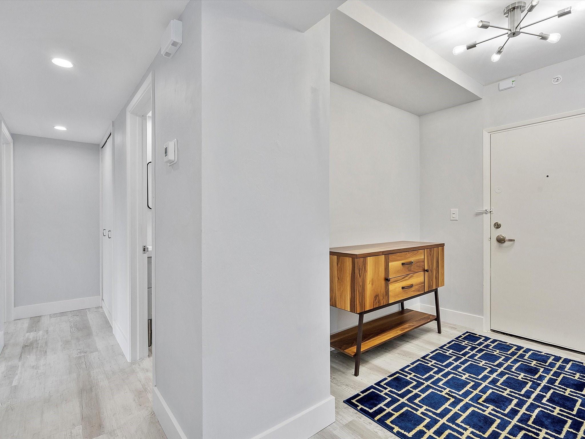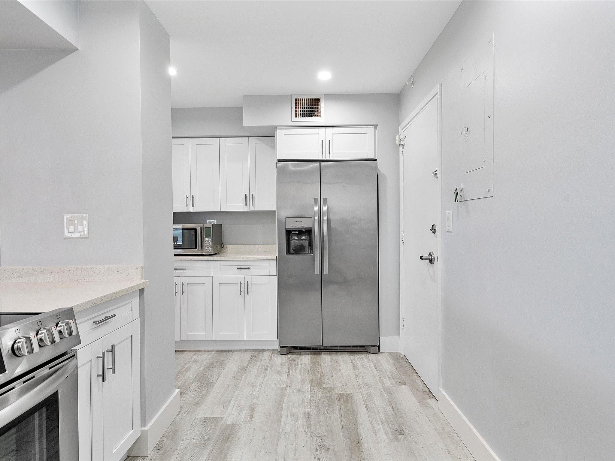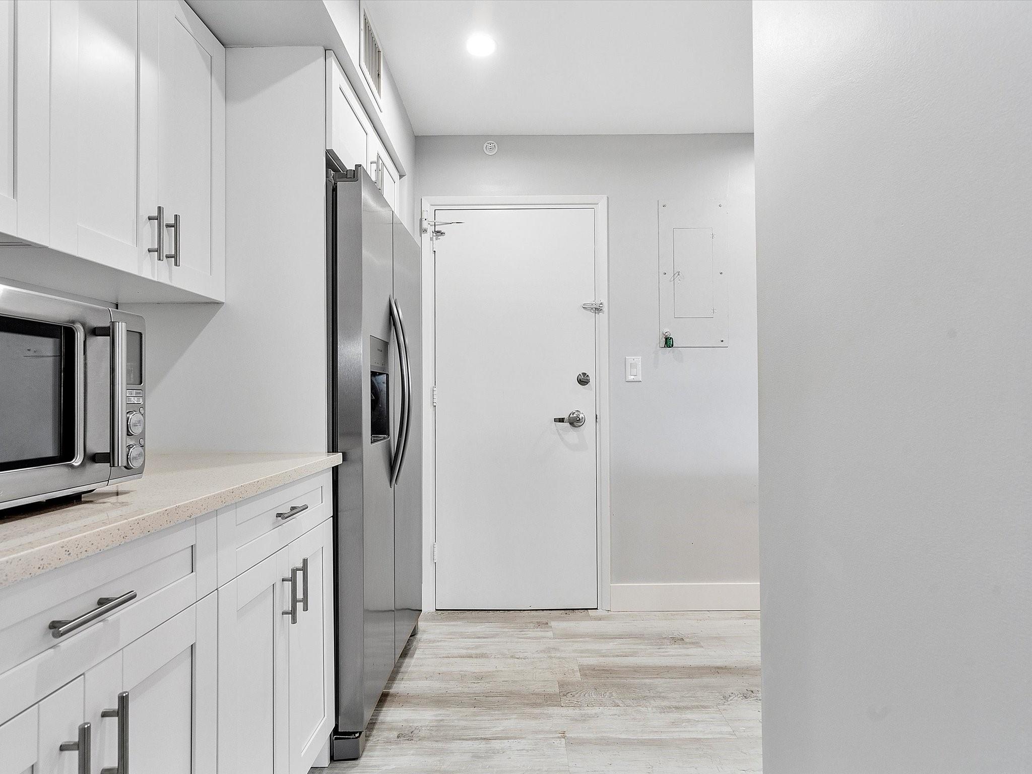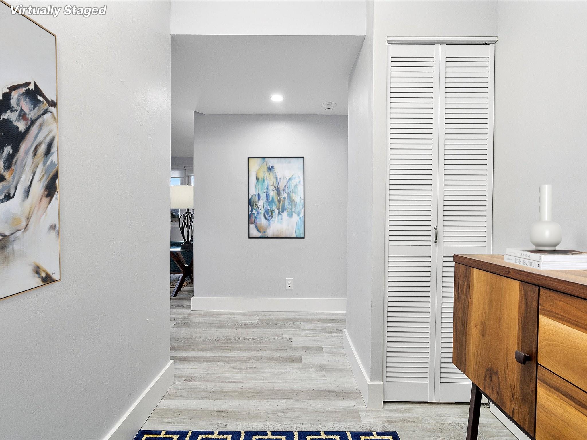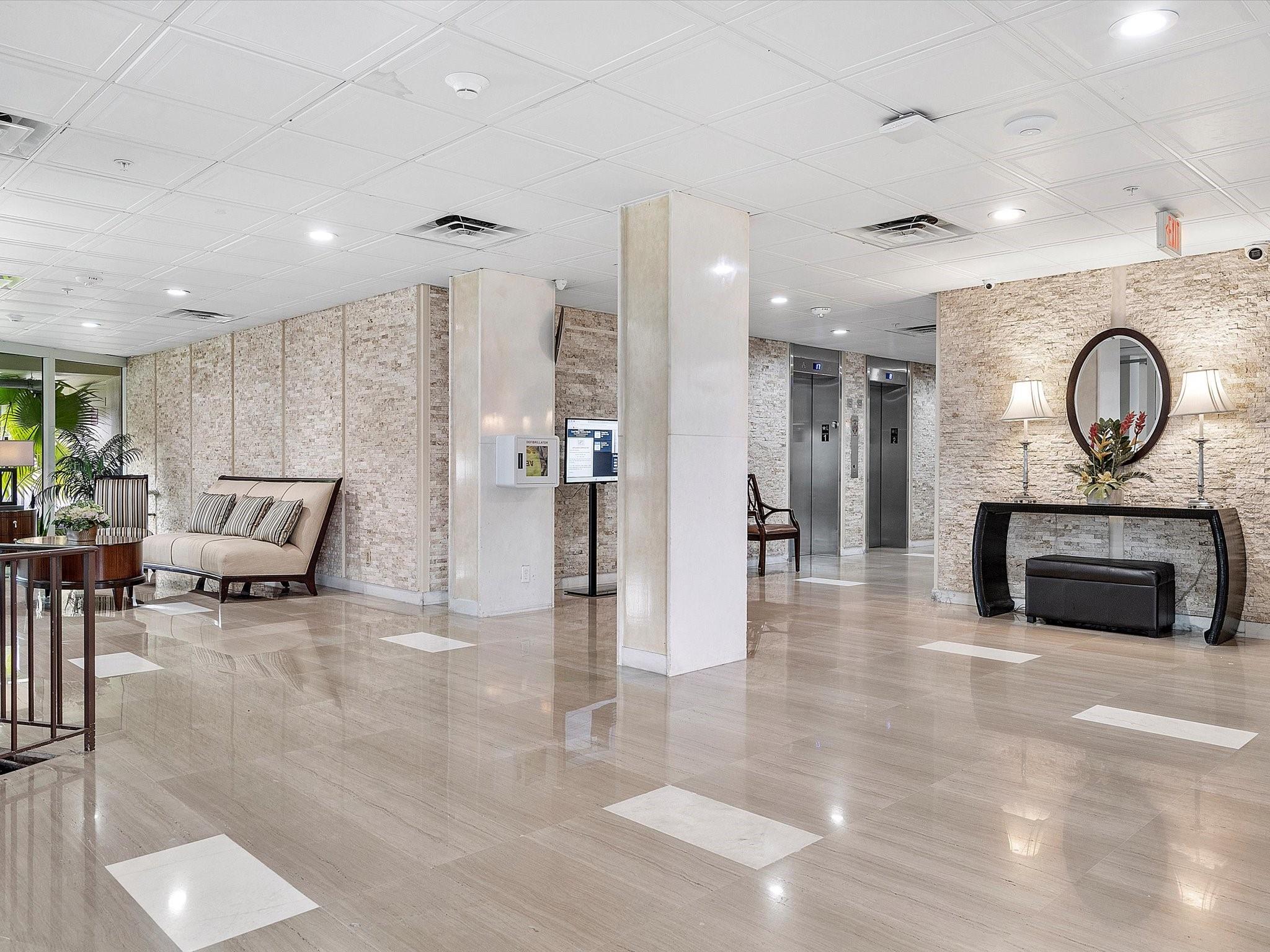 Introducing this spacious, modern 2-bed, 2-bath corner unit Co-Op in the sought-after Coral Ridge Towers North. This 1,120 sq. ft. gem boasts breathtaking water views and an open balcony overlooking the Intracoastal Waterway. Enjoy the convenience of impact windows, central AC, and stylish vinyl flooring throughout. The open kitchen features elegant Quartz countertops and classic white shaker cabinetry, perfect for culinary adventures. Both bedrooms offer custom closets for ample storage. Located just moments from the beach and vibrant Galt Ocean Dr, this residence is surrounded by shopping, dining, and entertainment options. Community amenities include a heated pool, library, community room, BBQ area, fitness center, and 24-hour security, ensuring a lifestyle of comfort and convenience.