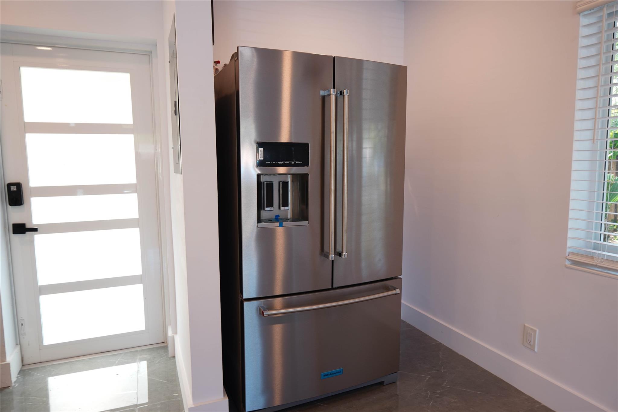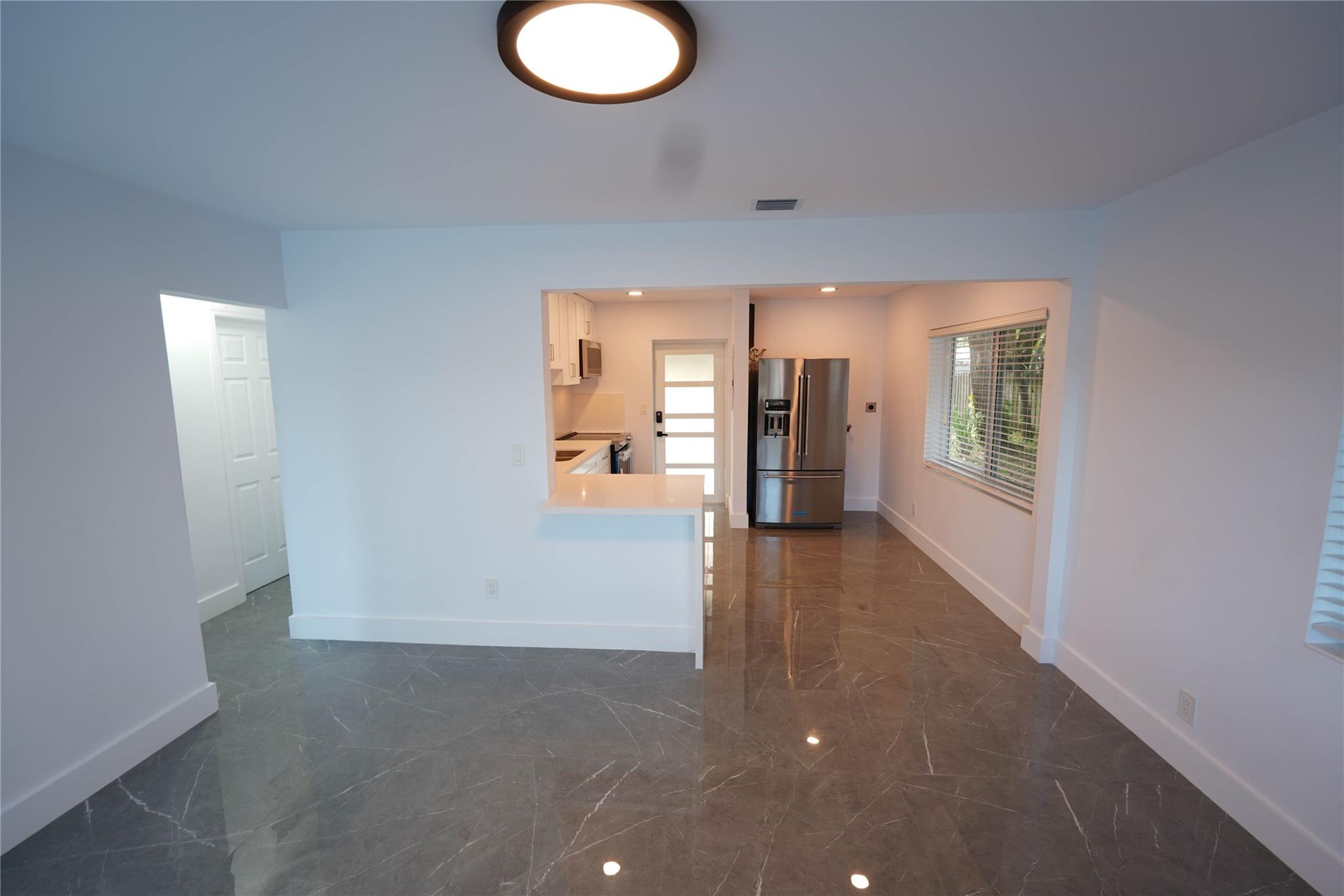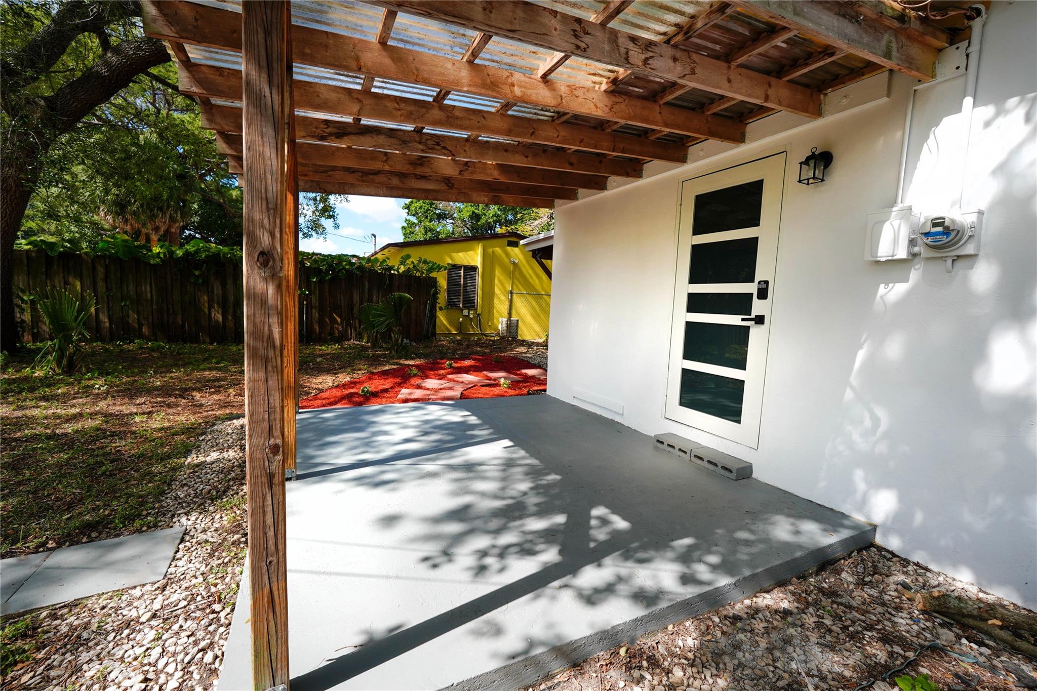 Nestled in a desirable neighborhood, this charming two-bedroom, one-bathroom home offers a tranquil ambiance. Located just 15 minutes away from Las Olas and Fort Lauderdale Airport. Freshly tiled floors flow through the inviting living spaces, complemented by all-new appliances including refrigerator, oven, and microwave. The bathroom has been completely redone, adding a touch of modern elegance. Home is complete with new electrical, a new roof, new A/C, top of the line Rheem tankless water heater, new fence, and new impact windows and doors. Owner will install washer and dryer prior to closing. Step outside to discover the large backyard, promising endless relaxation and entertainment possibilities.