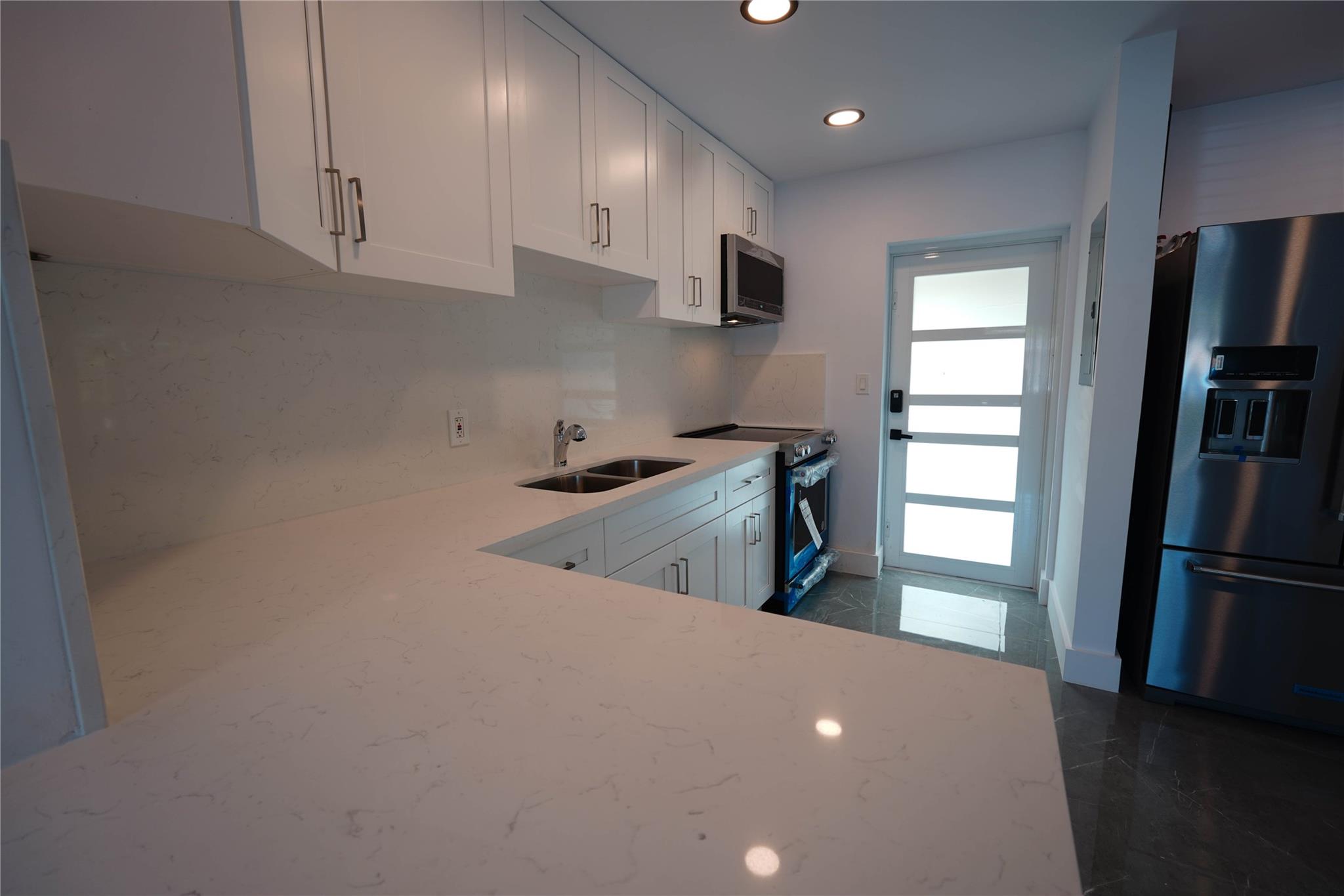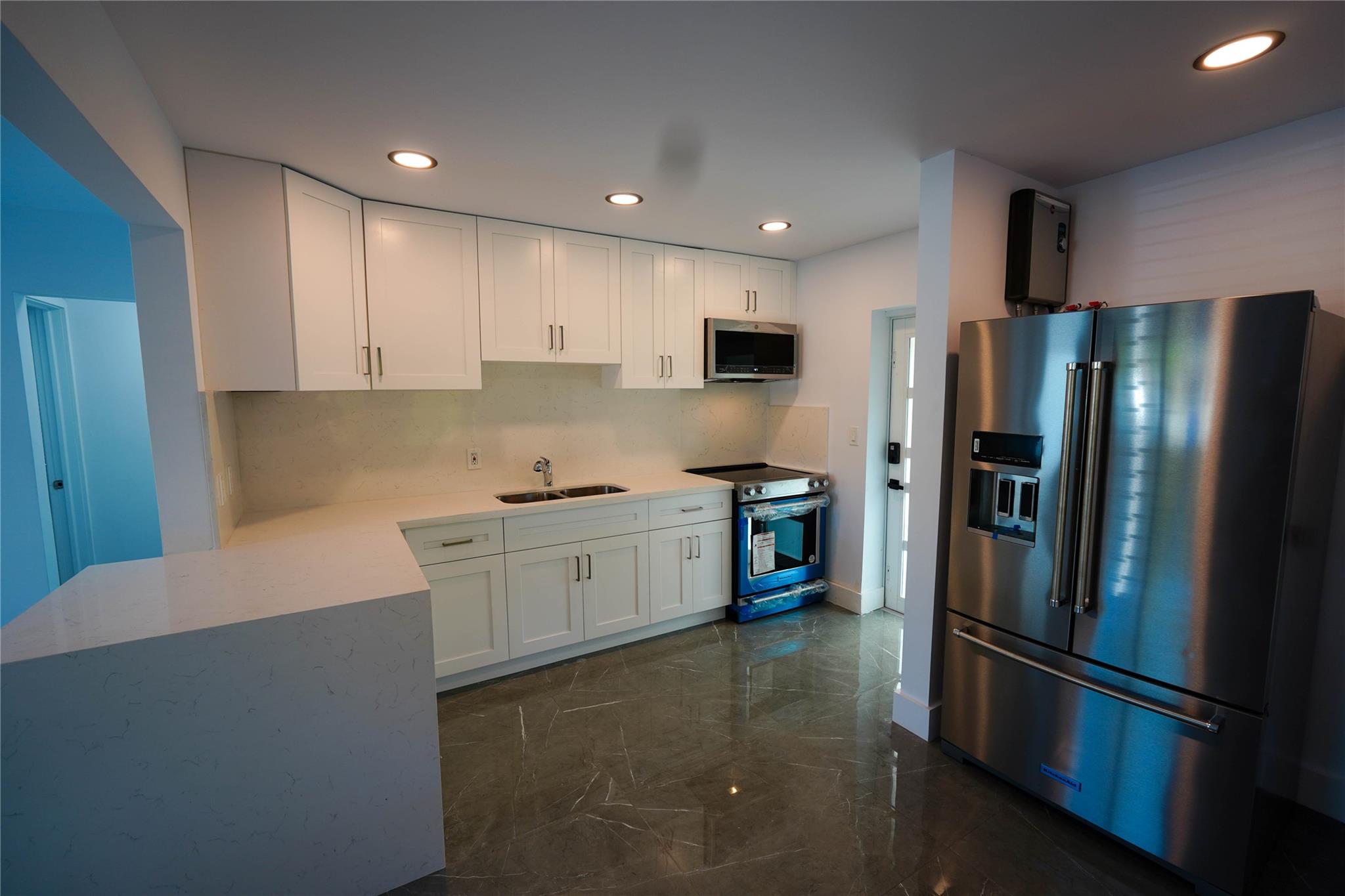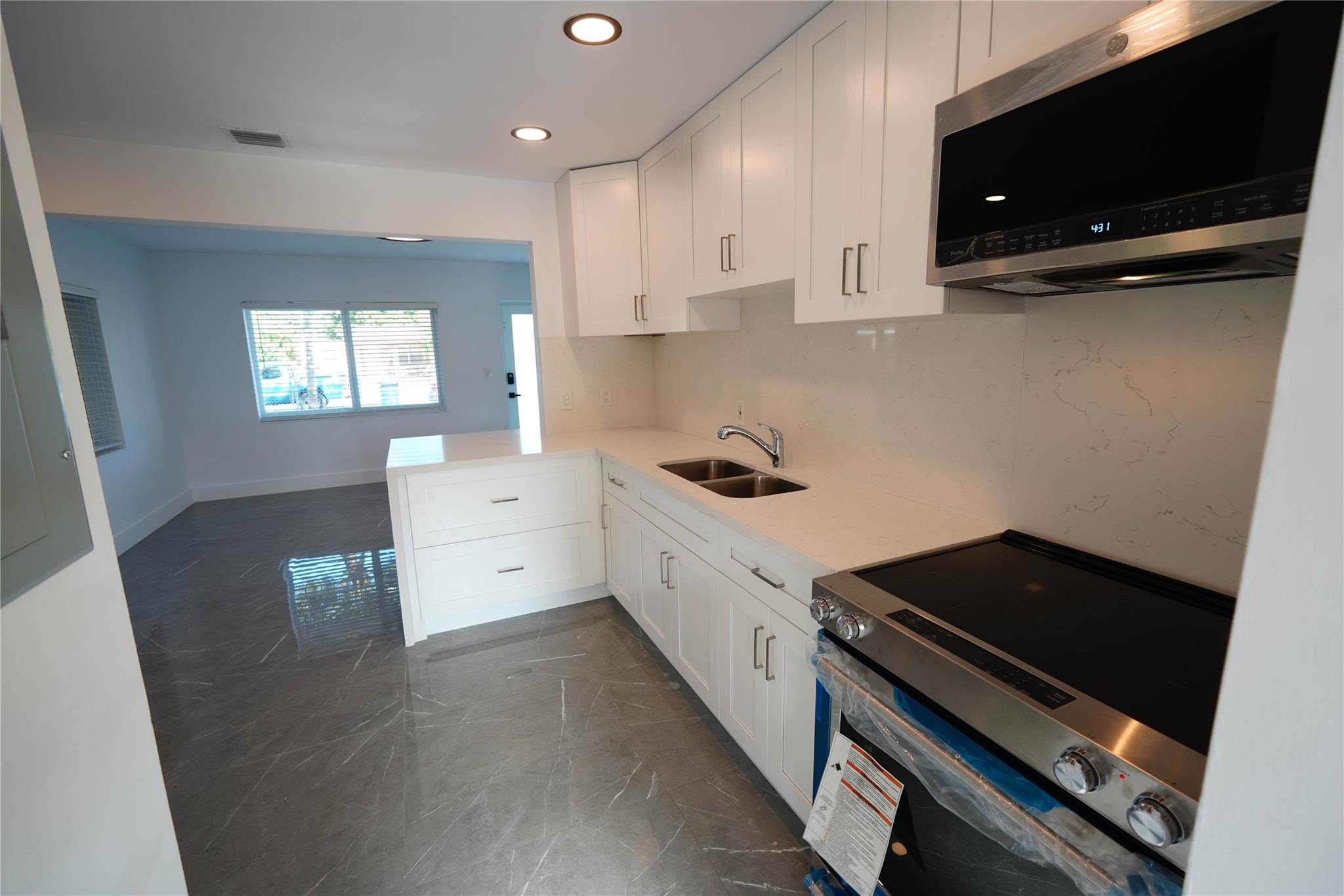 Nestled in a desirable neighborhood, this charming two-bedroom, one-bathroom home offers a tranquil ambiance. Located just 15 minutes away from Las Olas and Fort Lauderdale Airport. Freshly tiled floors flow through the inviting living spaces, complemented by all-new appliances including refrigerator, oven, and microwave. The bathroom has been completely redone, adding a touch of modern elegance. Home is complete with new electrical, a new roof, new A/C, top of the line Rheem tankless water heater, new fence, and new impact windows and doors. Owner will install washer and dryer prior to closing. Step outside to discover the large backyard, promising endless relaxation and entertainment possibilities.