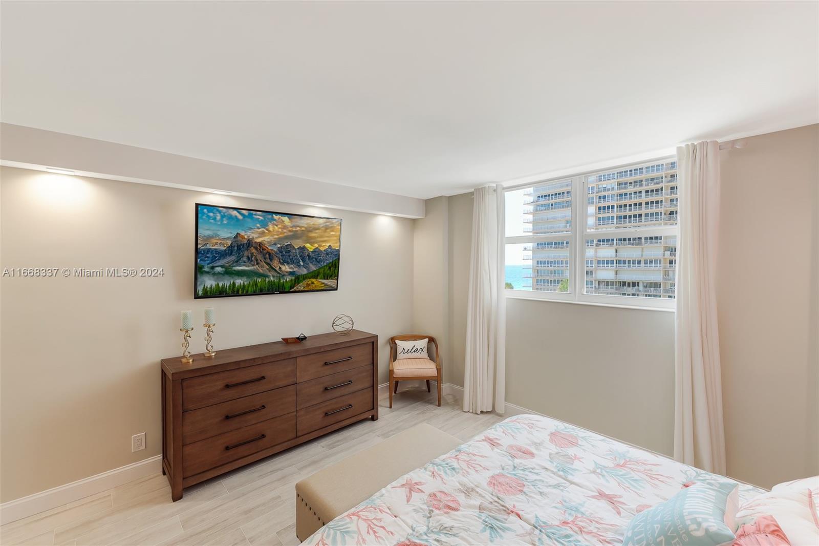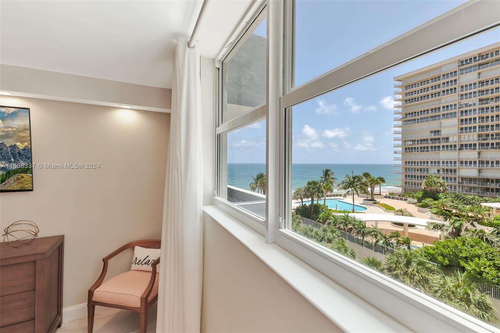 Fully remodeled condo features high-end finishes throughout, including wood-look porcelain tiles, marble countertops, glass tile backsplash, custom wood cabinetry, & premium stainless steel appliances, including a wine cooler. The attention to detail is evident with LED lighting, glass shower enclosure, and elegant marble and glass tiles in the bath. Every aspect of the renovation was meticulously planned and permitted. This oversized one-bedroom, one-bath condo boasts breathtaking southeast ocean views that are truly a must-see. Located in a luxury oceanfront building with a 24-hour doorman and extensive amenities, it's perfect for enjoying a carefree lifestyle. Walking distance to local restaurants and shopping, this move-in-ready residence offers everything you need to live in paradise!