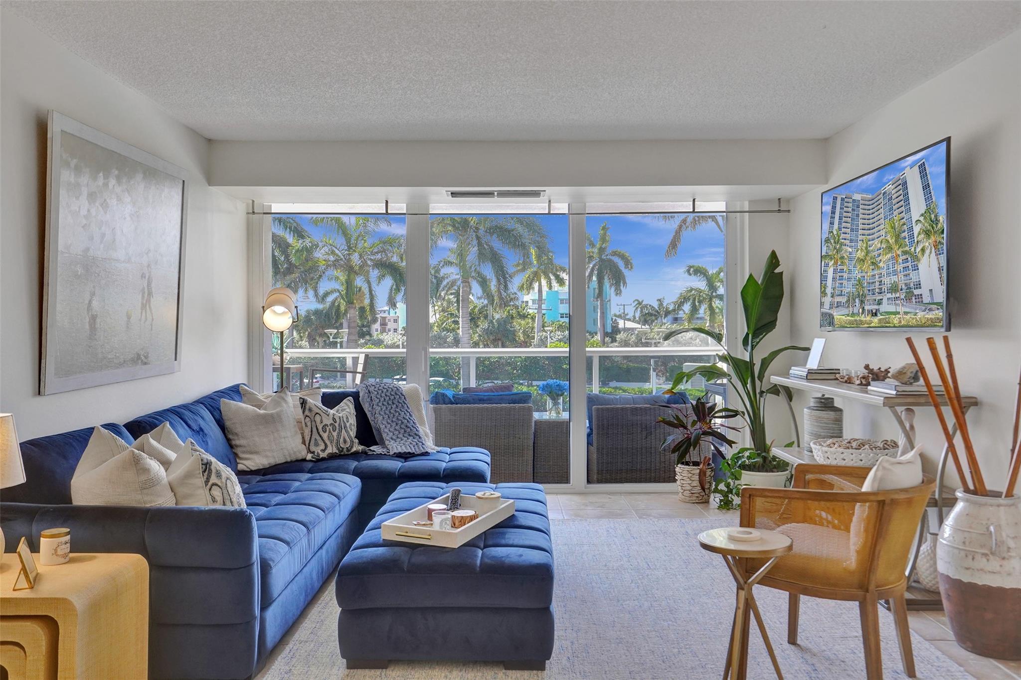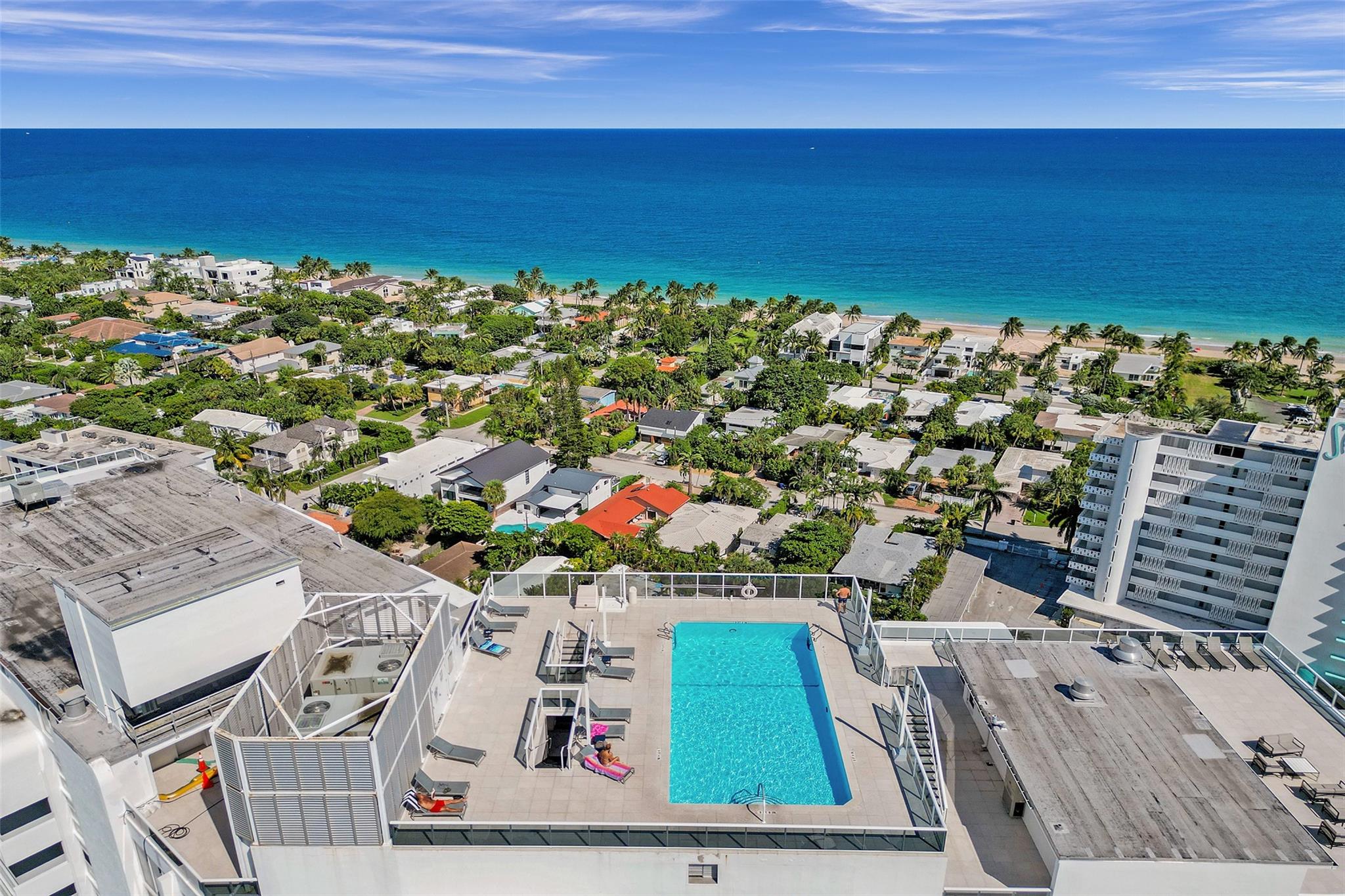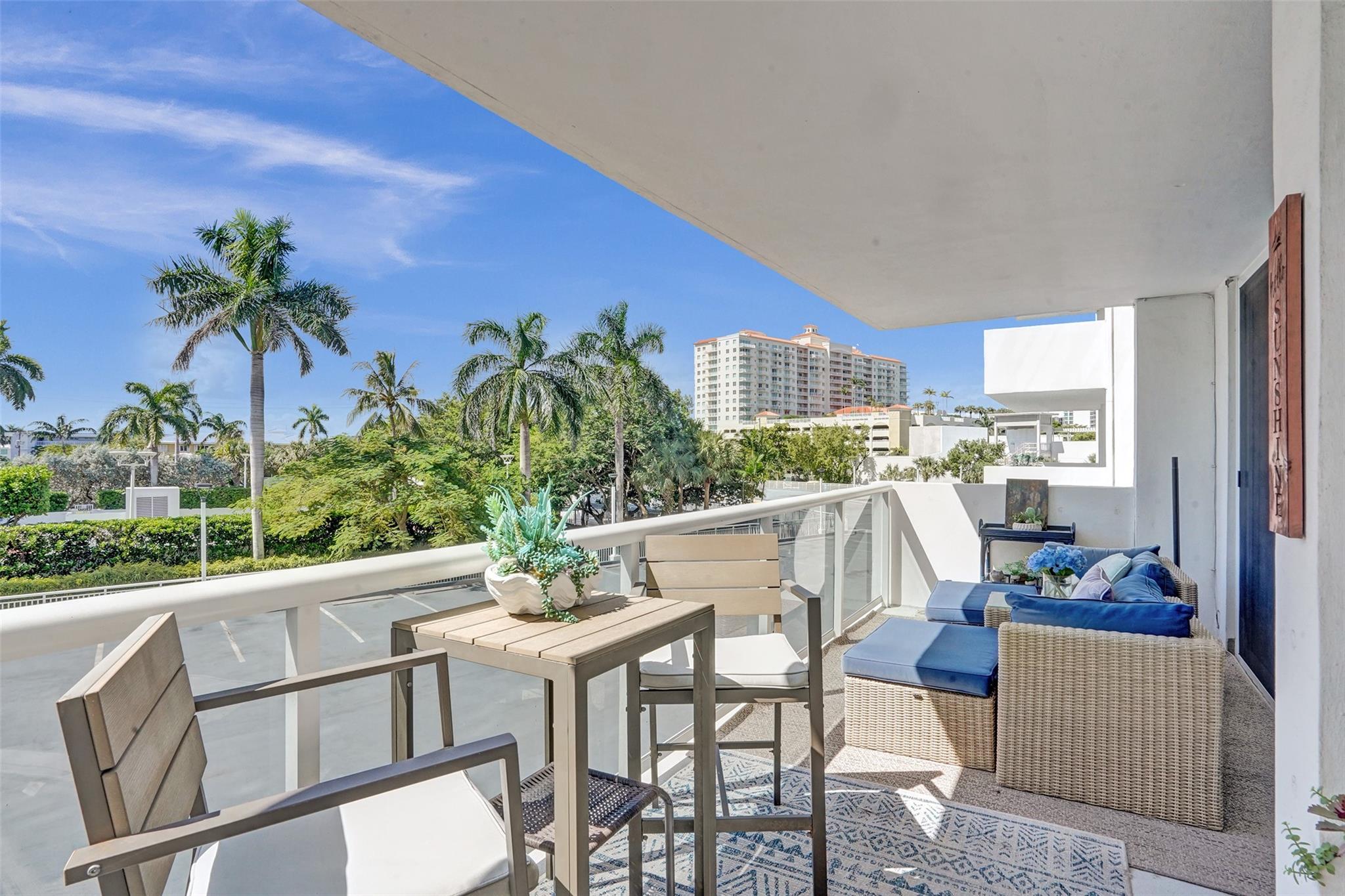 The lowest price unit in the entire building! Welcome to your 2-bedroom, 2-bathroom beachside retreat. Inside, you'll find a split floor plan with beautiful tile floors throughout, generously sized bedrooms, updated bathrooms, hurricane impact sliding doors and windows, and an in-unit washer/dryer. Enjoy the tranquility of your balcony while fully embracing the South Florida lifestyle. The building features a rooftop pool with unobstructed panoramic views of the ocean, intracoastal, and downtown Fort Lauderdale skyline. Additional amenities include fitness center, sauna, community room, 24-hour security, covered parking, storage room, and plenty of guest parking. Stroll to the beach, restaurants, bars, and shops.