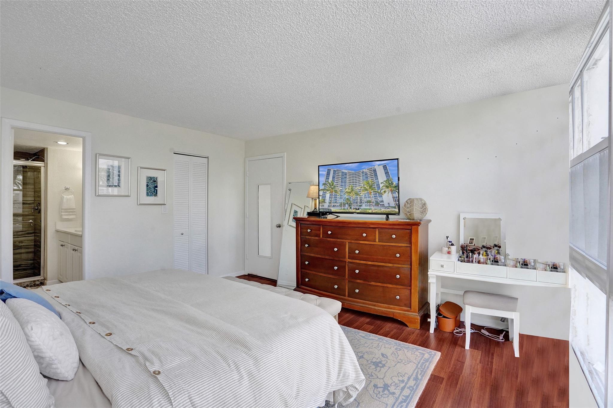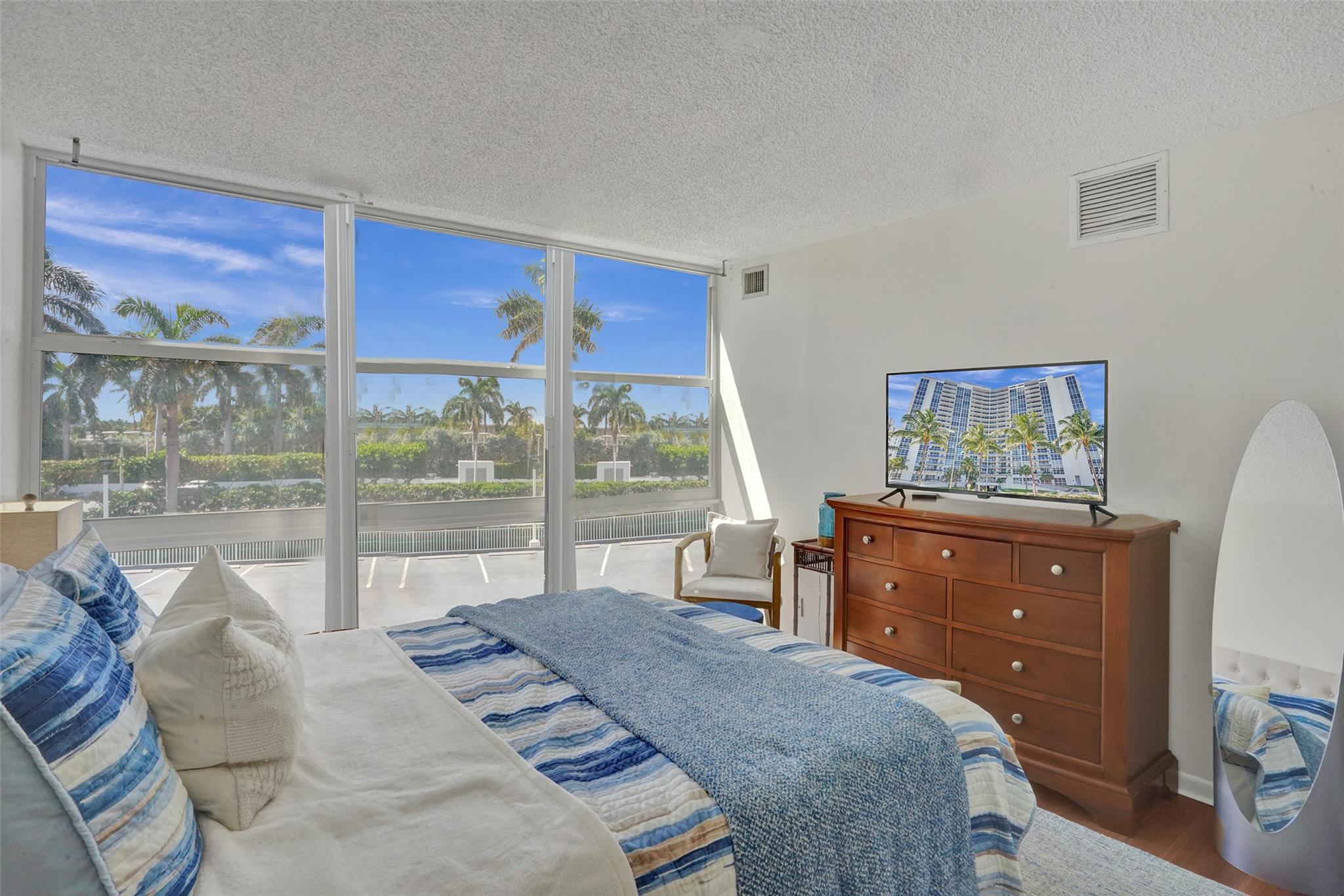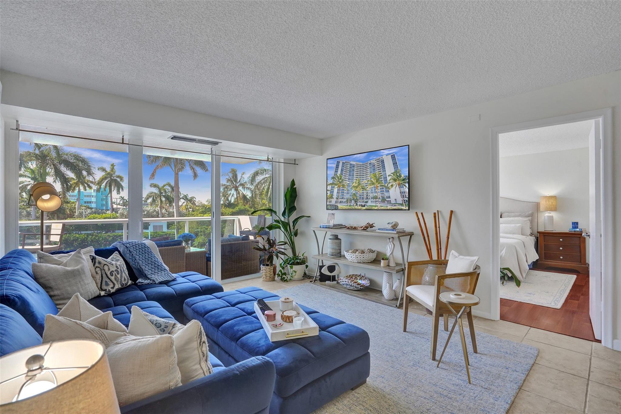 The lowest price unit in the entire building! Welcome to your 2-bedroom, 2-bathroom beachside retreat. Inside, you'll find a split floor plan with beautiful tile floors throughout, generously sized bedrooms, updated bathrooms, hurricane impact sliding doors and windows, and an in-unit washer/dryer. Enjoy the tranquility of your balcony while fully embracing the South Florida lifestyle. The building features a rooftop pool with unobstructed panoramic views of the ocean, intracoastal, and downtown Fort Lauderdale skyline. Additional amenities include fitness center, sauna, community room, 24-hour security, covered parking, storage room, and plenty of guest parking. Stroll to the beach, restaurants, bars, and shops.