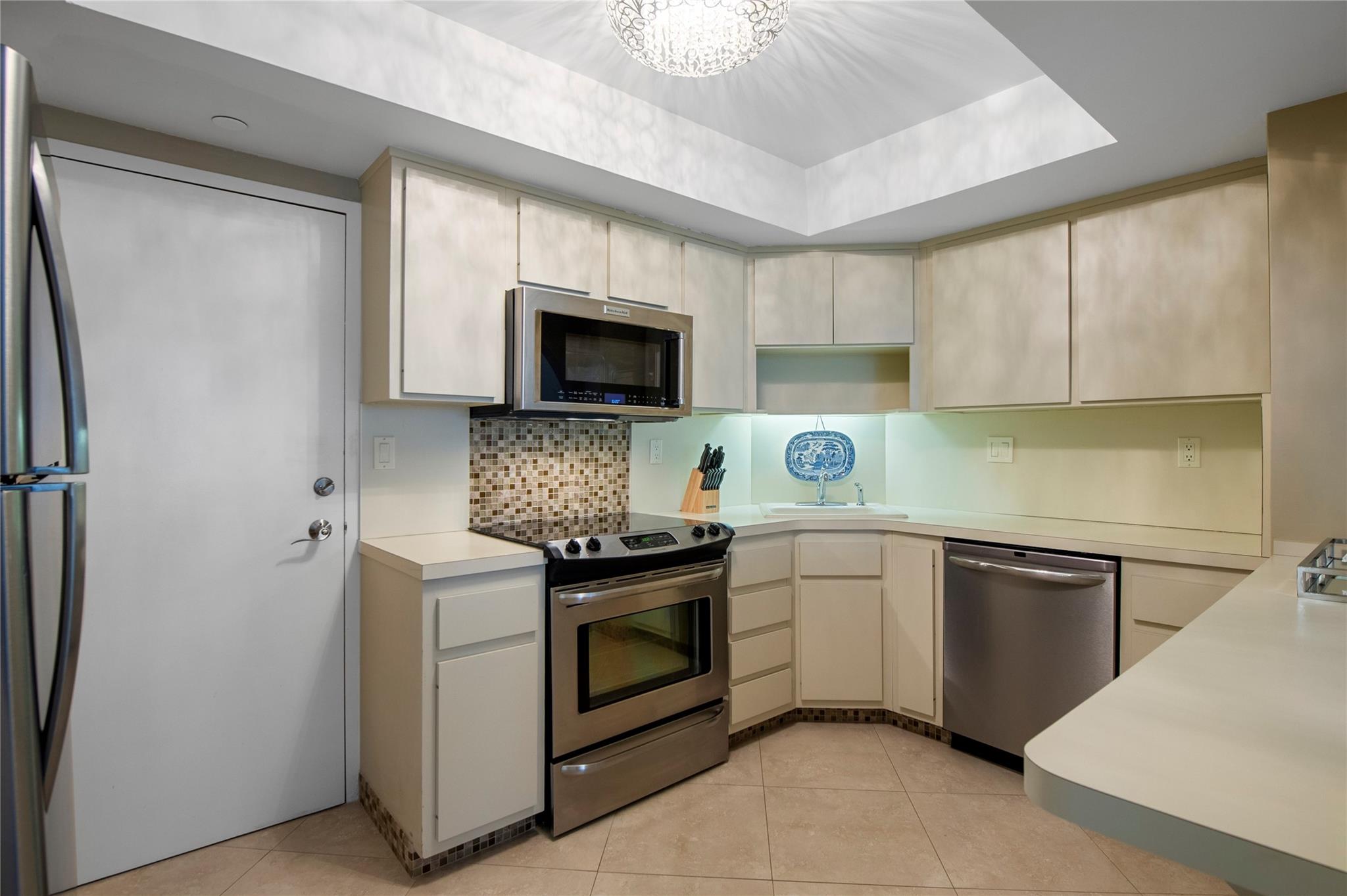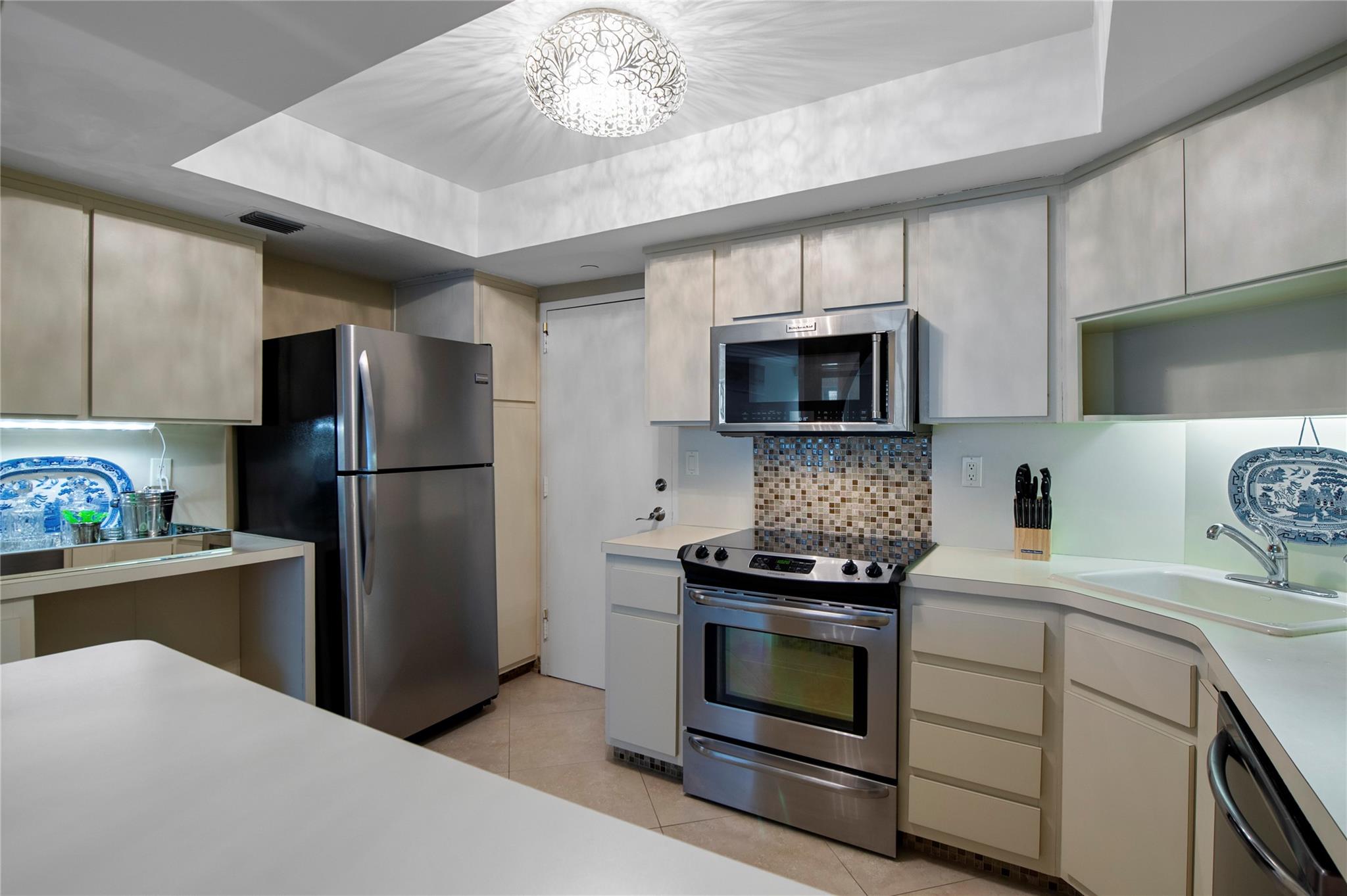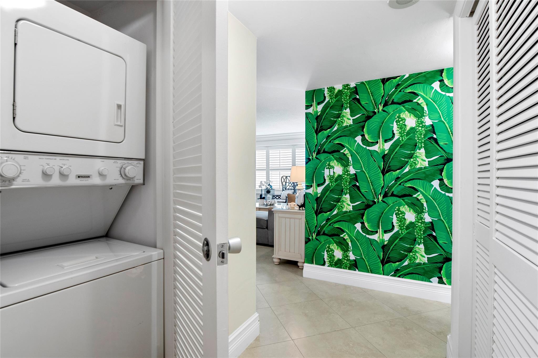 This charming 1-bedroom, 1-bathroom condo is just steps from the beach, offering the perfect coastal retreat. Enjoy the Florida sunshine and sea breeze from your private balcony. The unit is immaculately maintained with a modern, updated kitchen featuring stainless steel appliances, sleek cabinets and countertops. The bathroom boasts a navy blue vanity, white tiled walk-in shower, and chic wallpaper. Throughout the unit, matching tiles add a polished look. Washer and dryer in the unit, and hurricane impact windows and doors throughout for peace of mind. The building offers fantastic amenities, including a large pool, clubhouse, fitness center, & conference room. Walk to stores, groceries, places of worship, and more. Building is also set to renovate hallways, elevators, and lobby area.