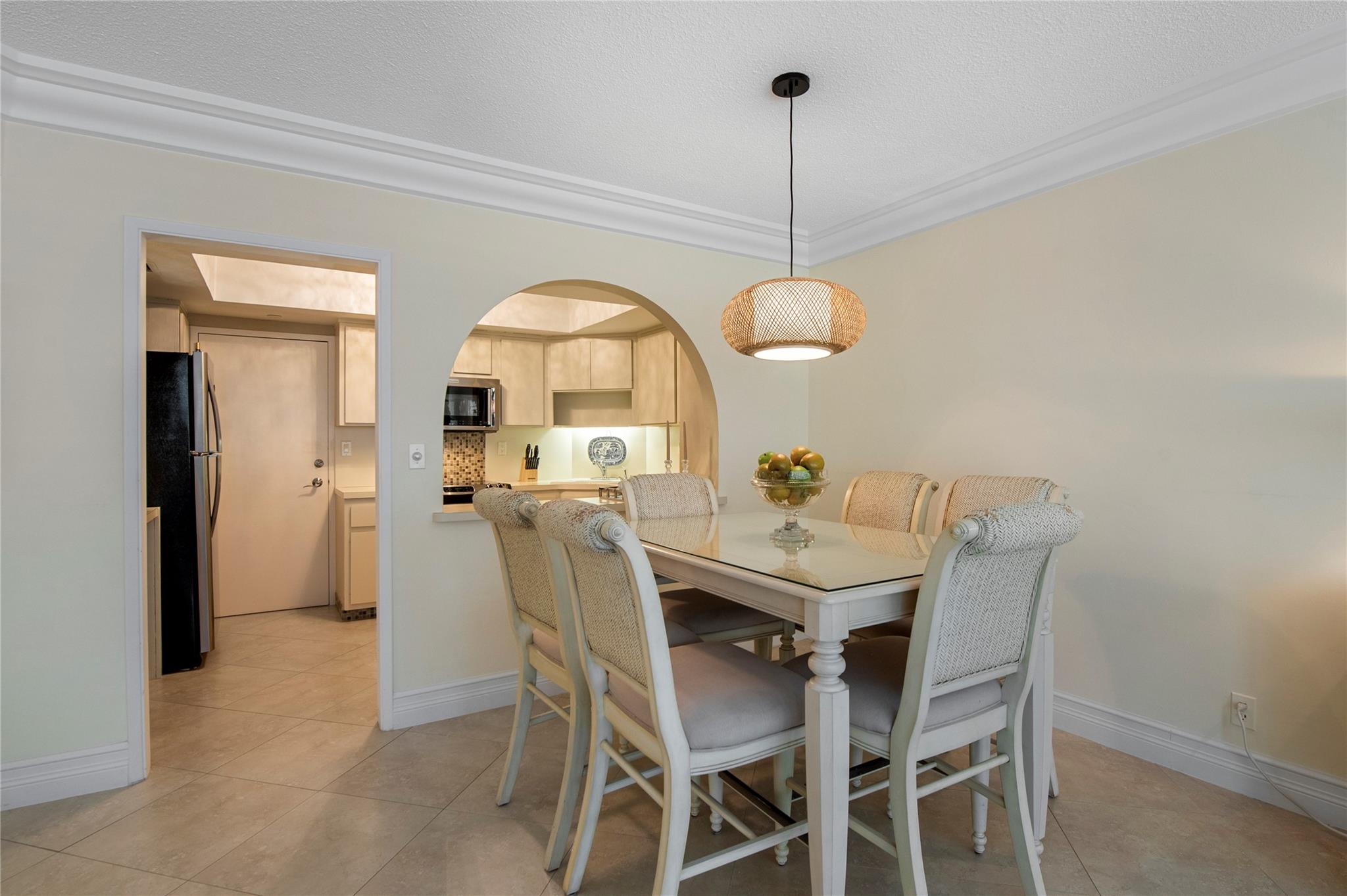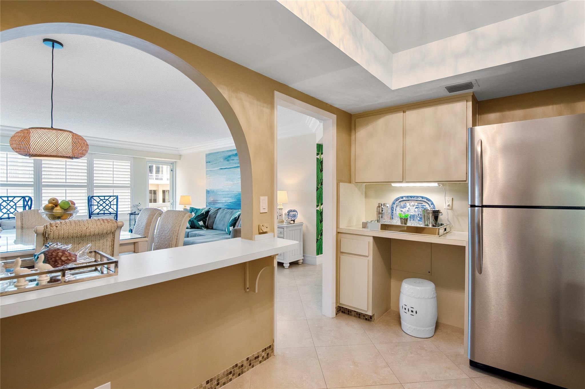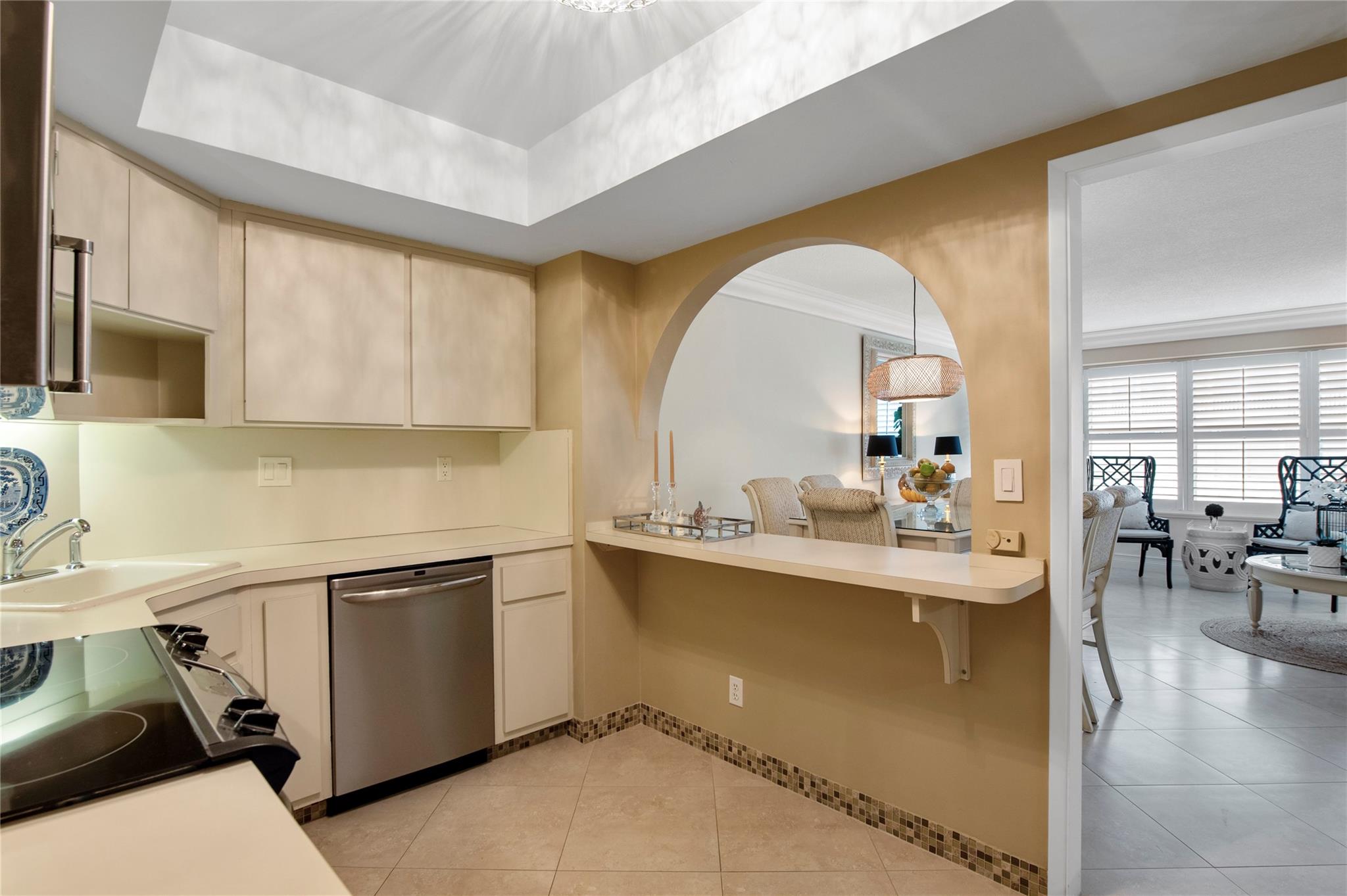 This charming 1-bedroom, 1-bathroom condo is just steps from the beach, offering the perfect coastal retreat. Enjoy the Florida sunshine and sea breeze from your private balcony. The unit is immaculately maintained with a modern, updated kitchen featuring stainless steel appliances, sleek cabinets and countertops. The bathroom boasts a navy blue vanity, white tiled walk-in shower, and chic wallpaper. Throughout the unit, matching tiles add a polished look. Washer and dryer in the unit, and hurricane impact windows and doors throughout for peace of mind. The building offers fantastic amenities, including a large pool, clubhouse, fitness center, & conference room. Walk to stores, groceries, places of worship, and more. Building is also set to renovate hallways, elevators, and lobby area.